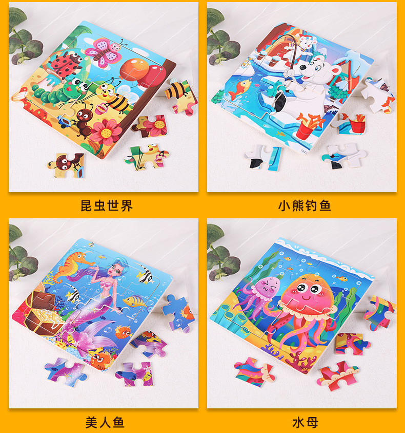 16 평면 만화 장난감 아기 직소 퍼즐 조기 교육 퍼즐 개발 소년과 소녀 평면 직소 퍼즐 장난감 도매스토어 가기