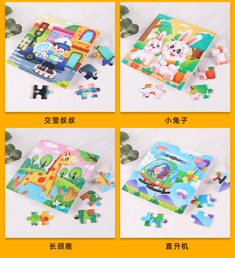 16 평면 만화 장난감 아기 직소 퍼즐 조기 교육 퍼즐 개발 소년과 소녀 평면 직소 퍼즐 장난감 도매