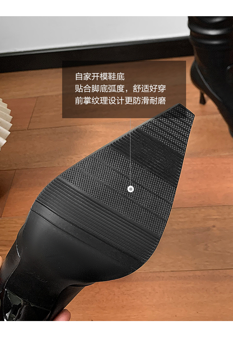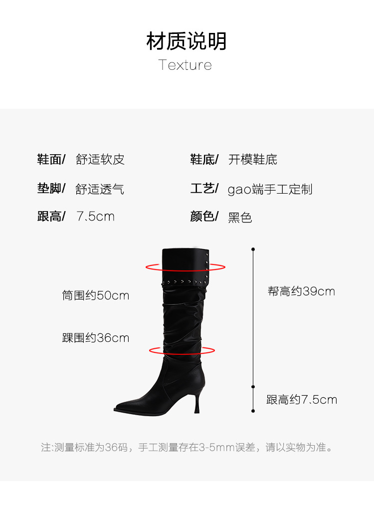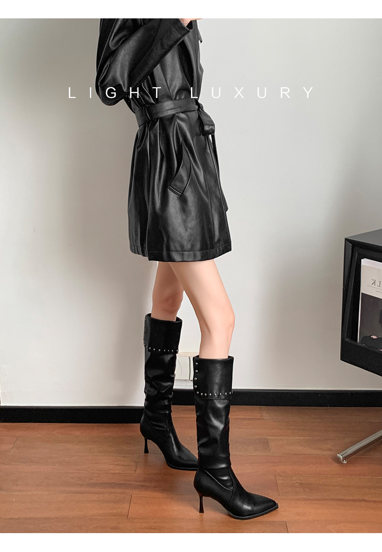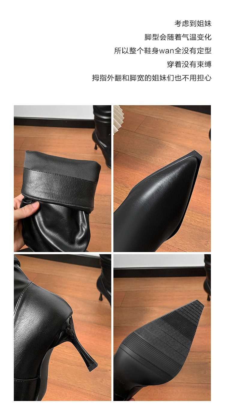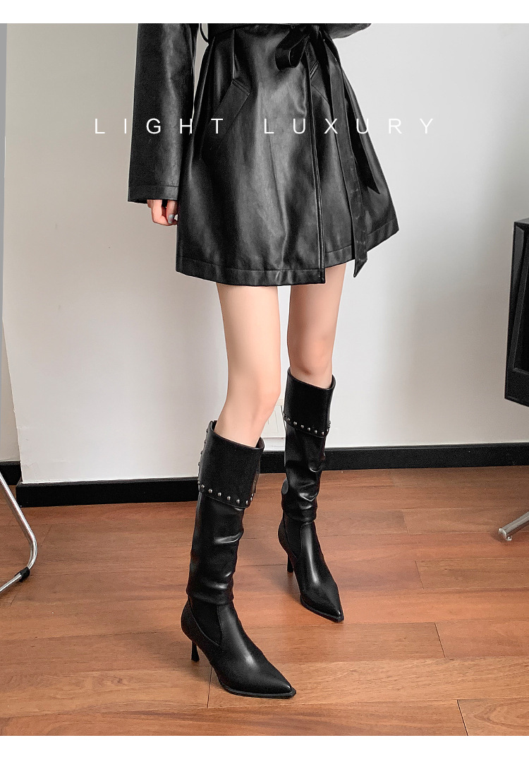 무릎 높이 주름 부츠 높은 배럴 레트로 부츠 여름과 가을 스택 부츠 뾰족한 스티치 힐 부츠 여성 2024 새로운스토어 가기