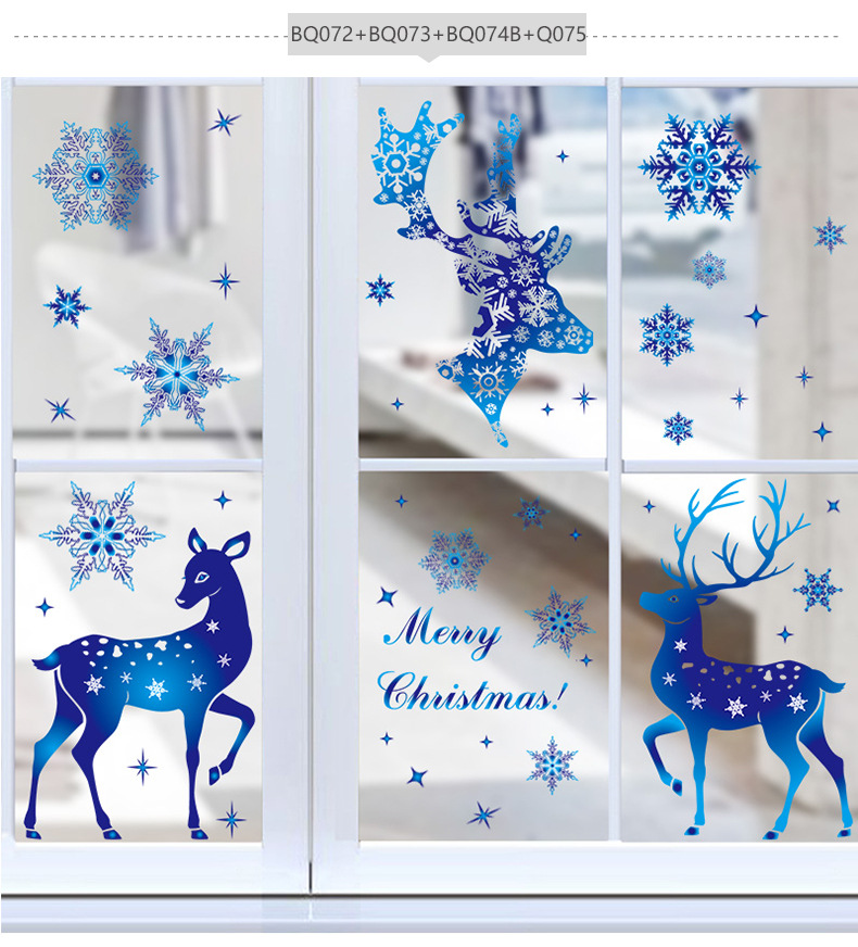 크리스마스 장식 눈송이 스티커 유리 창 스티커 새해 그라디언트 블루 눈송이 엘크 정전기 스티커 순록 창 스티커스토어 가기
