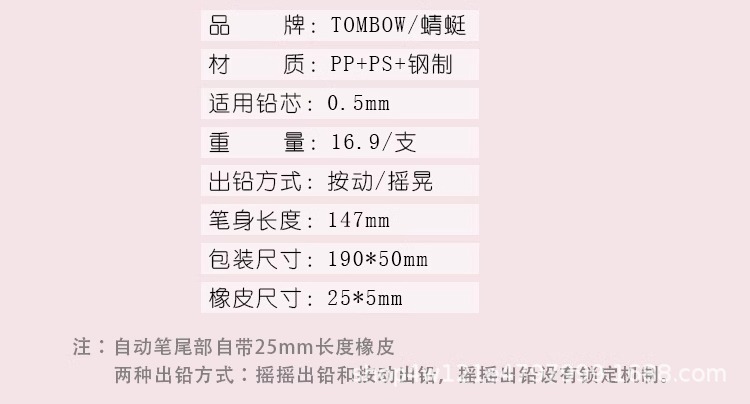 일본 Tombow Dragonfly, 리드 모노 기계 연필 마카롱 컬러 학생 제한 0.5