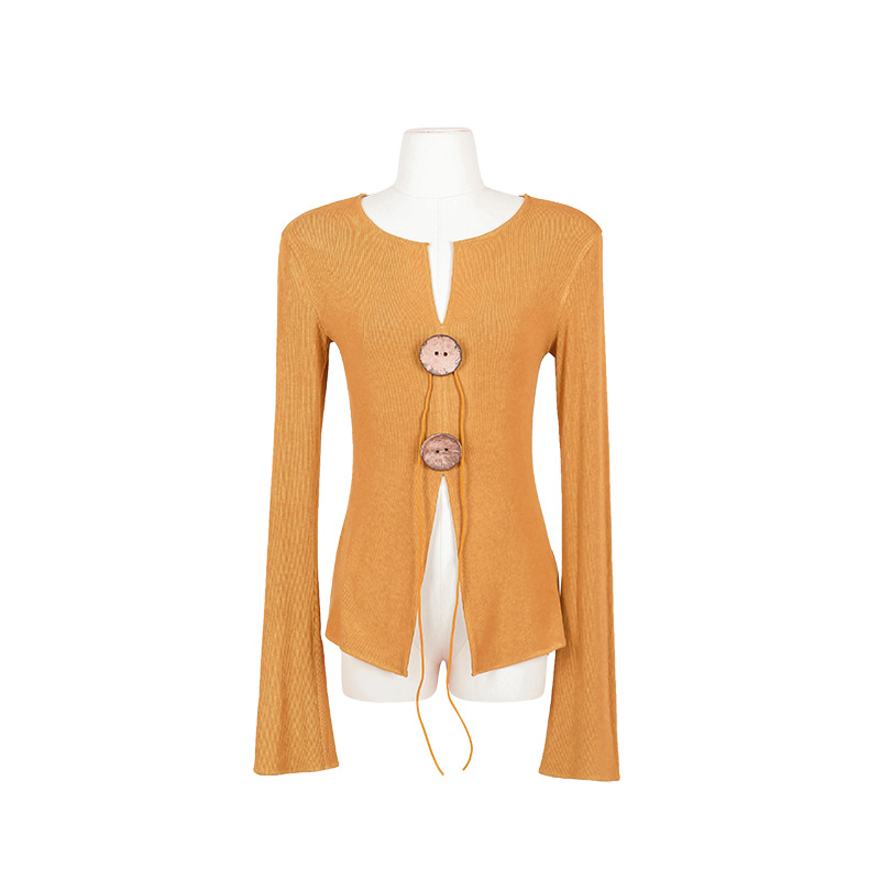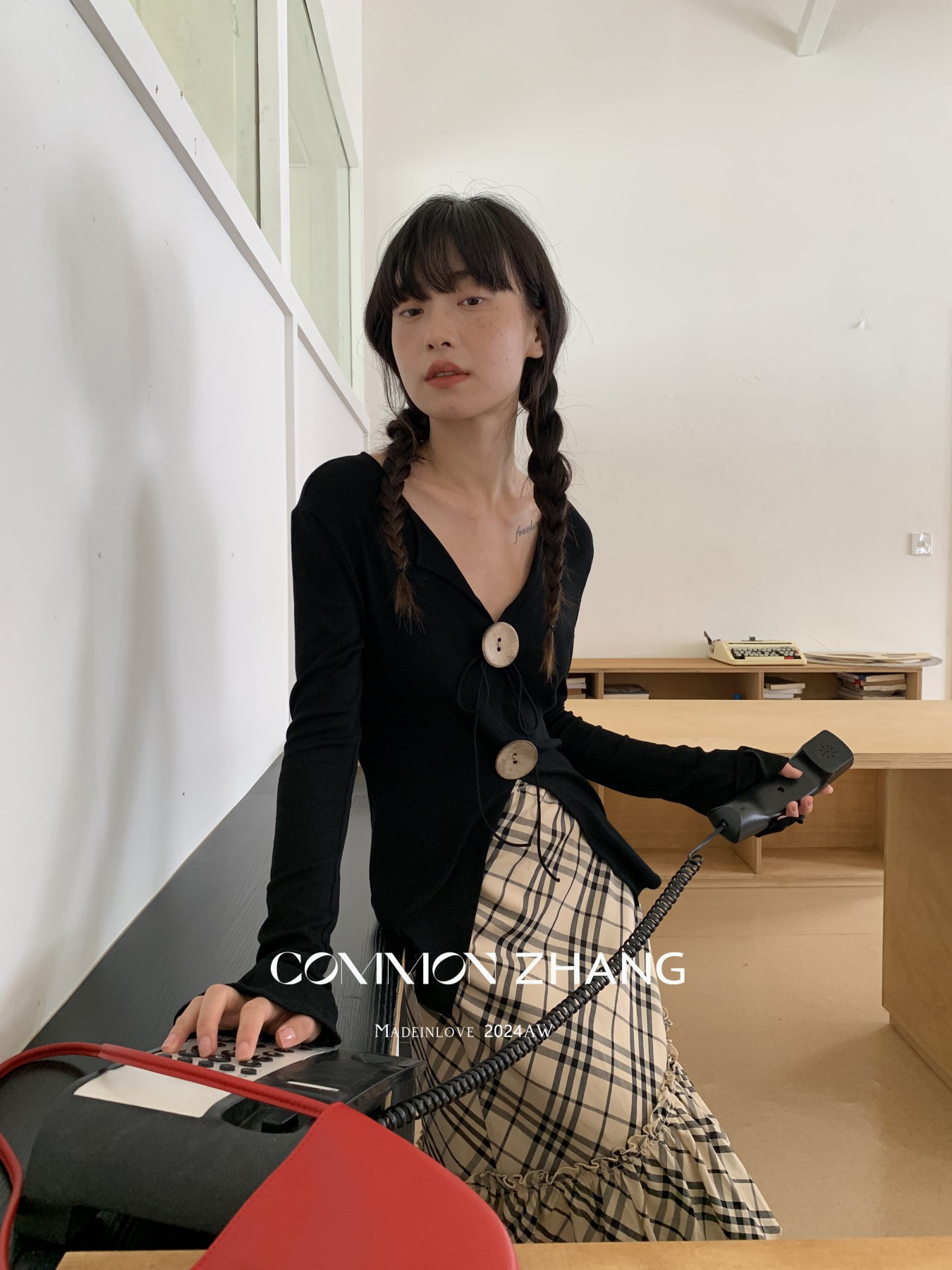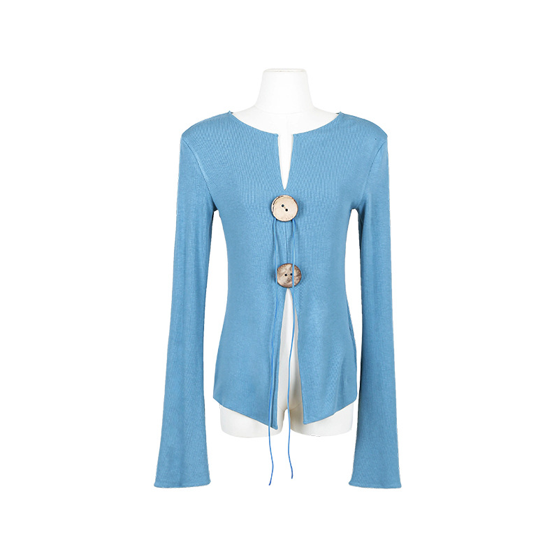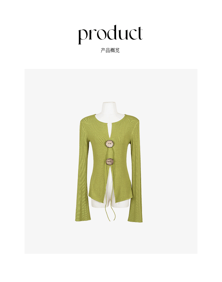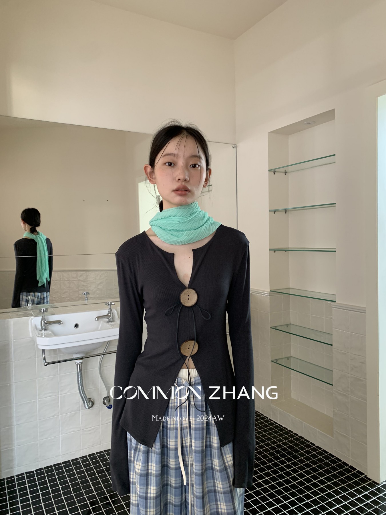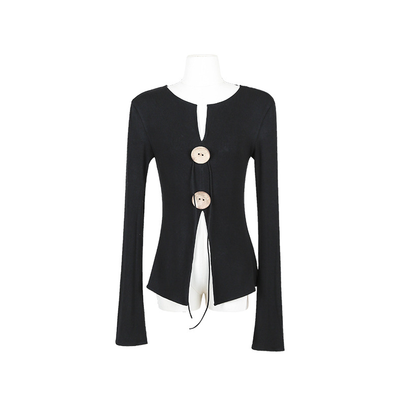 CZ ZHANG 가을 니치 섹시 프렌치 스타일 레이스업 레진 버튼 브이넥 섹시 니트 여성용 A33310