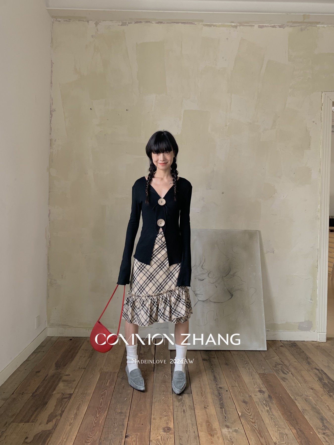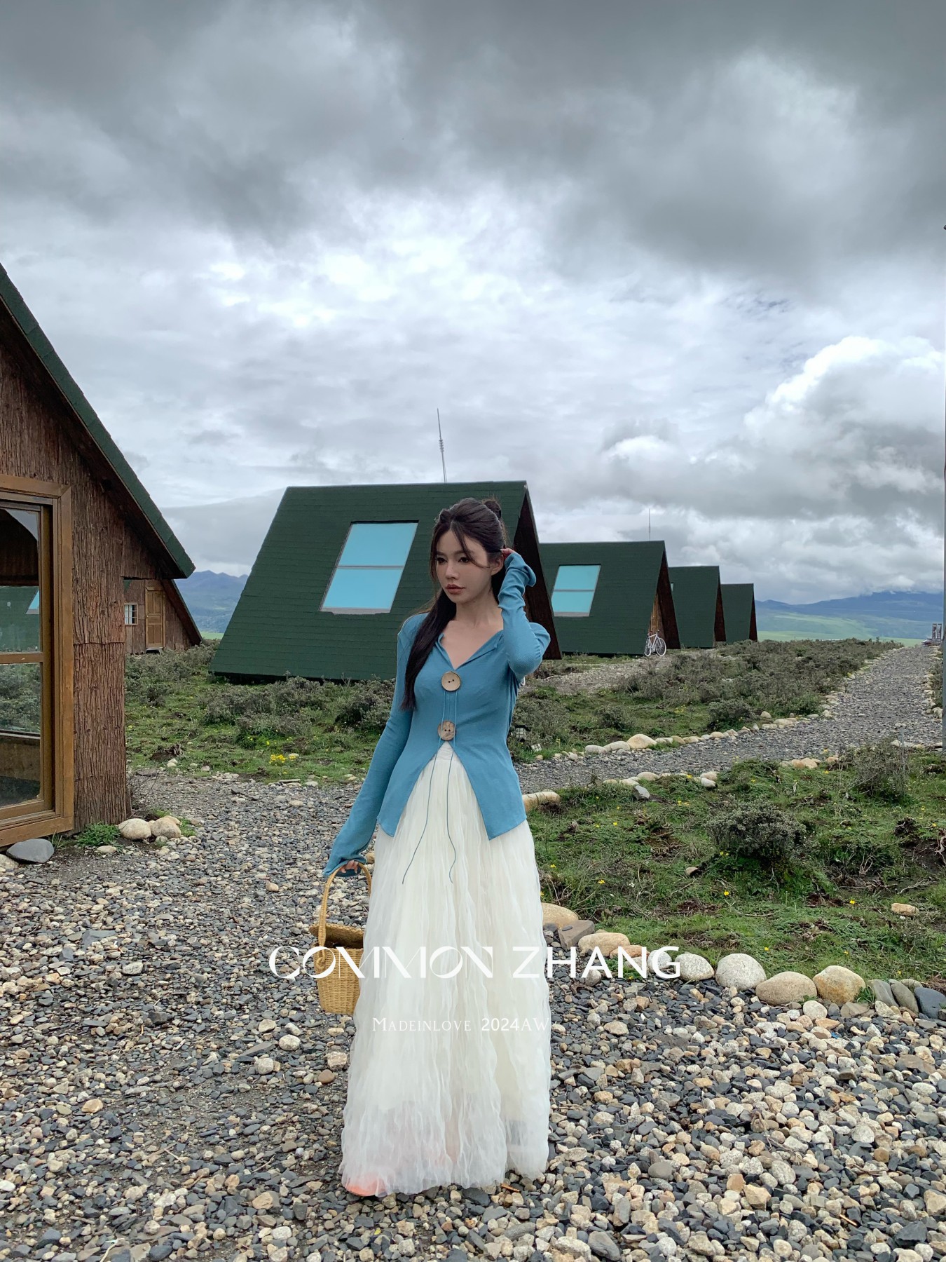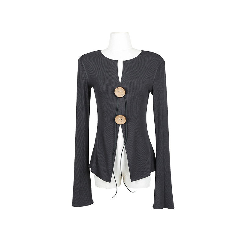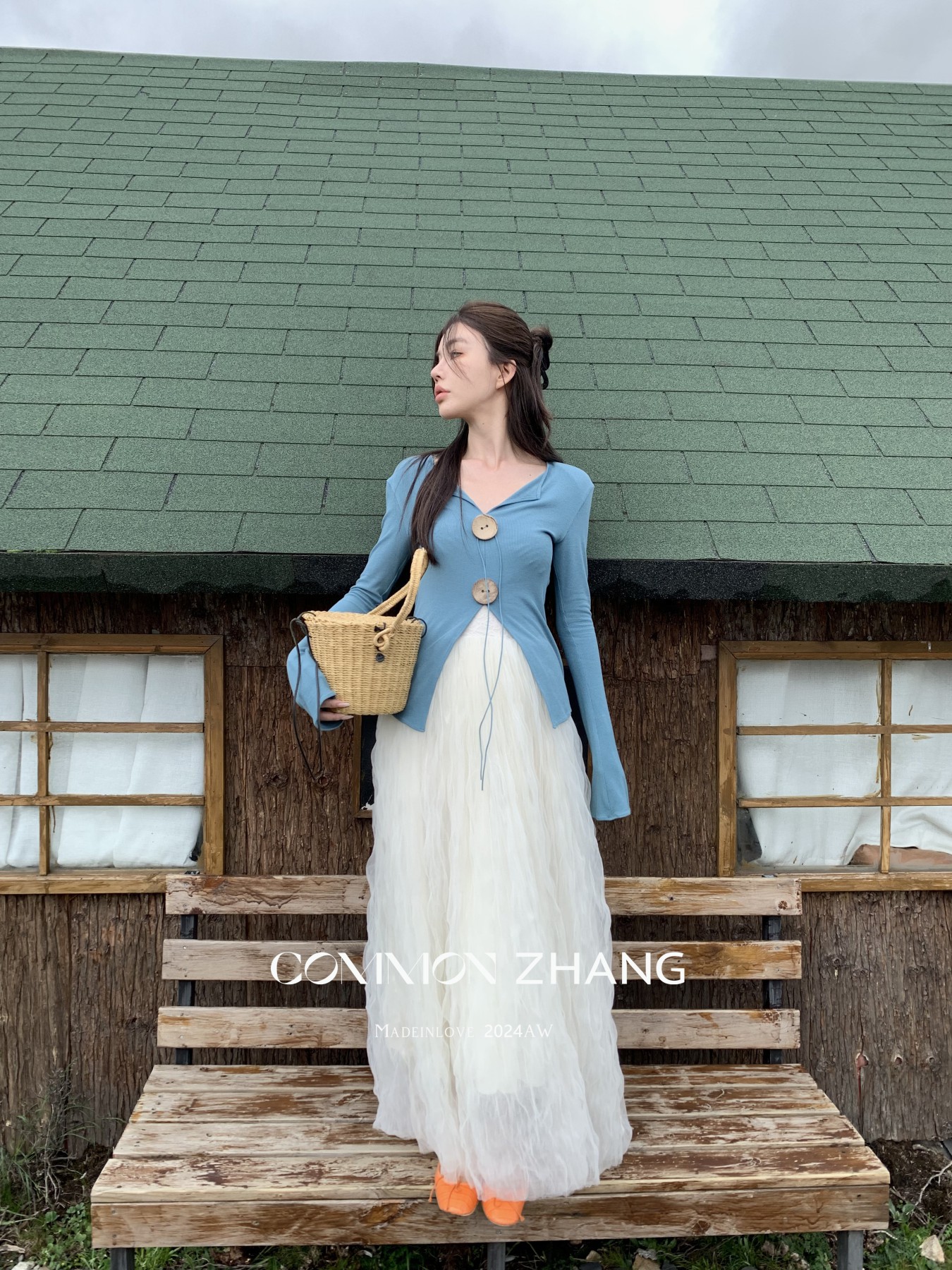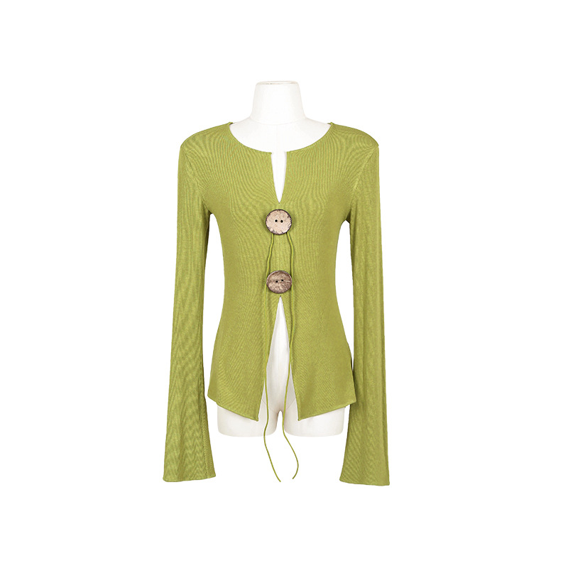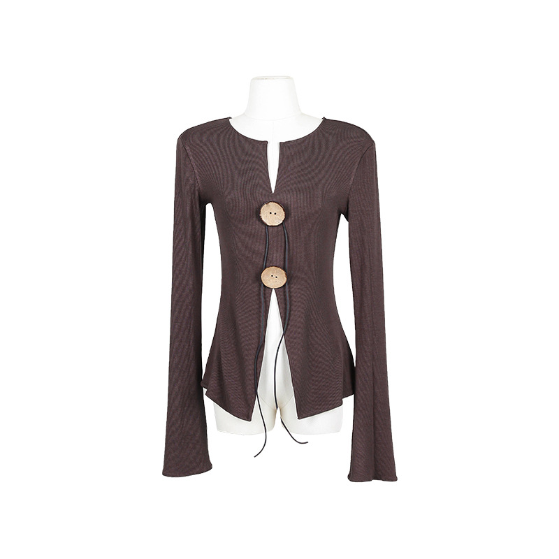 CZ ZHANG 가을 니치 섹시 프렌치 스타일 레이스업 레진 버튼 브이넥 섹시 니트 여성용 A33310
