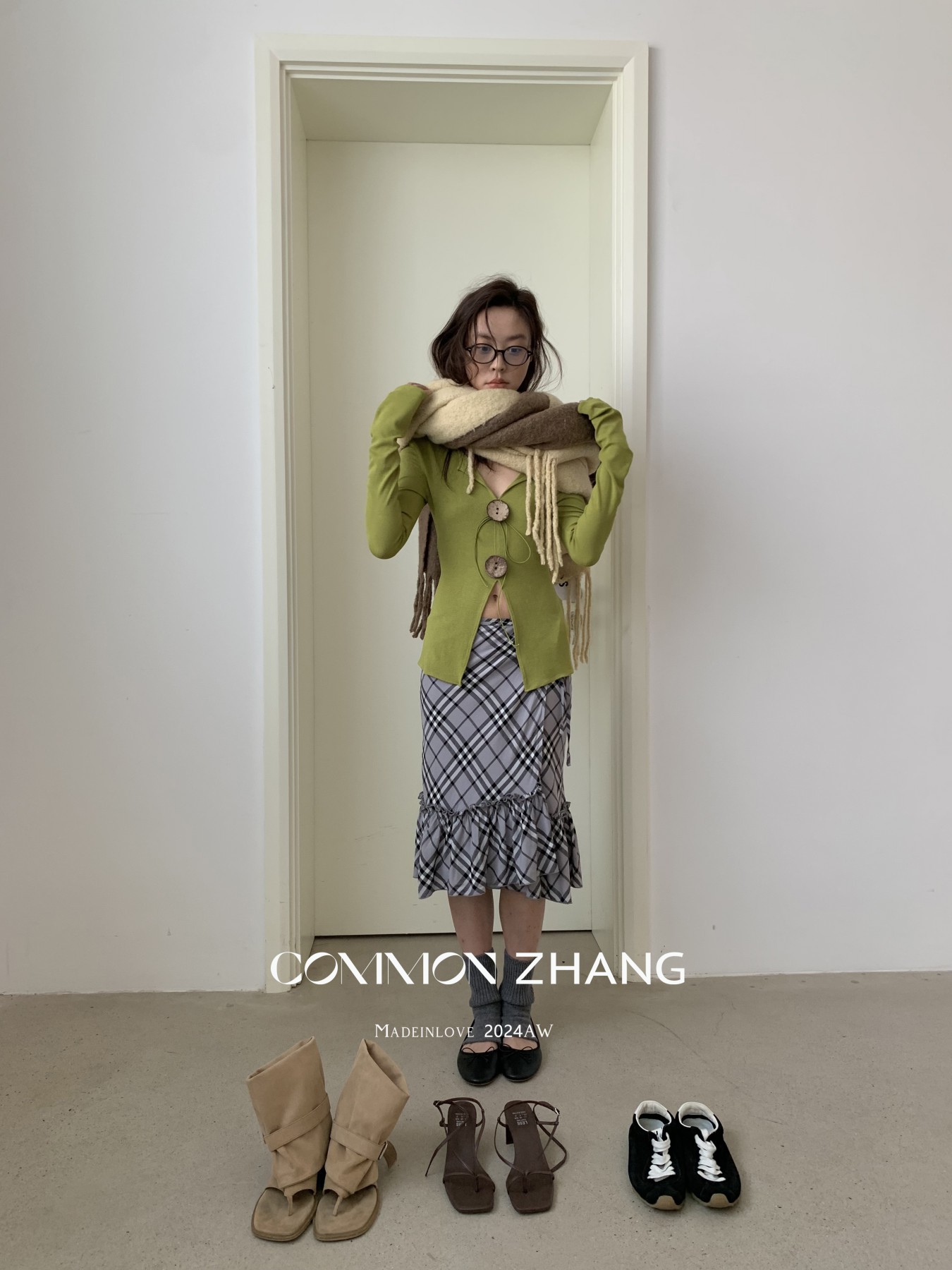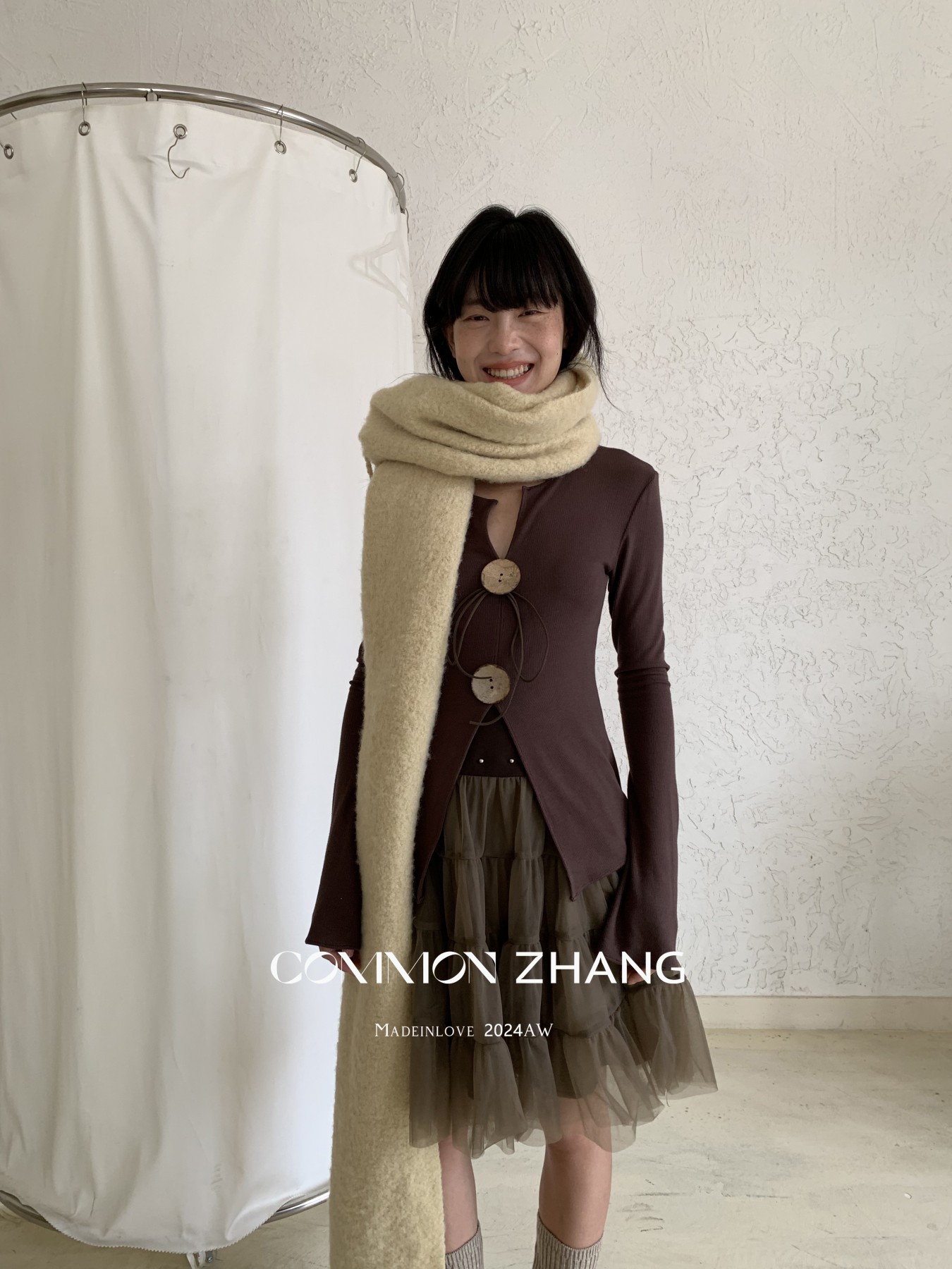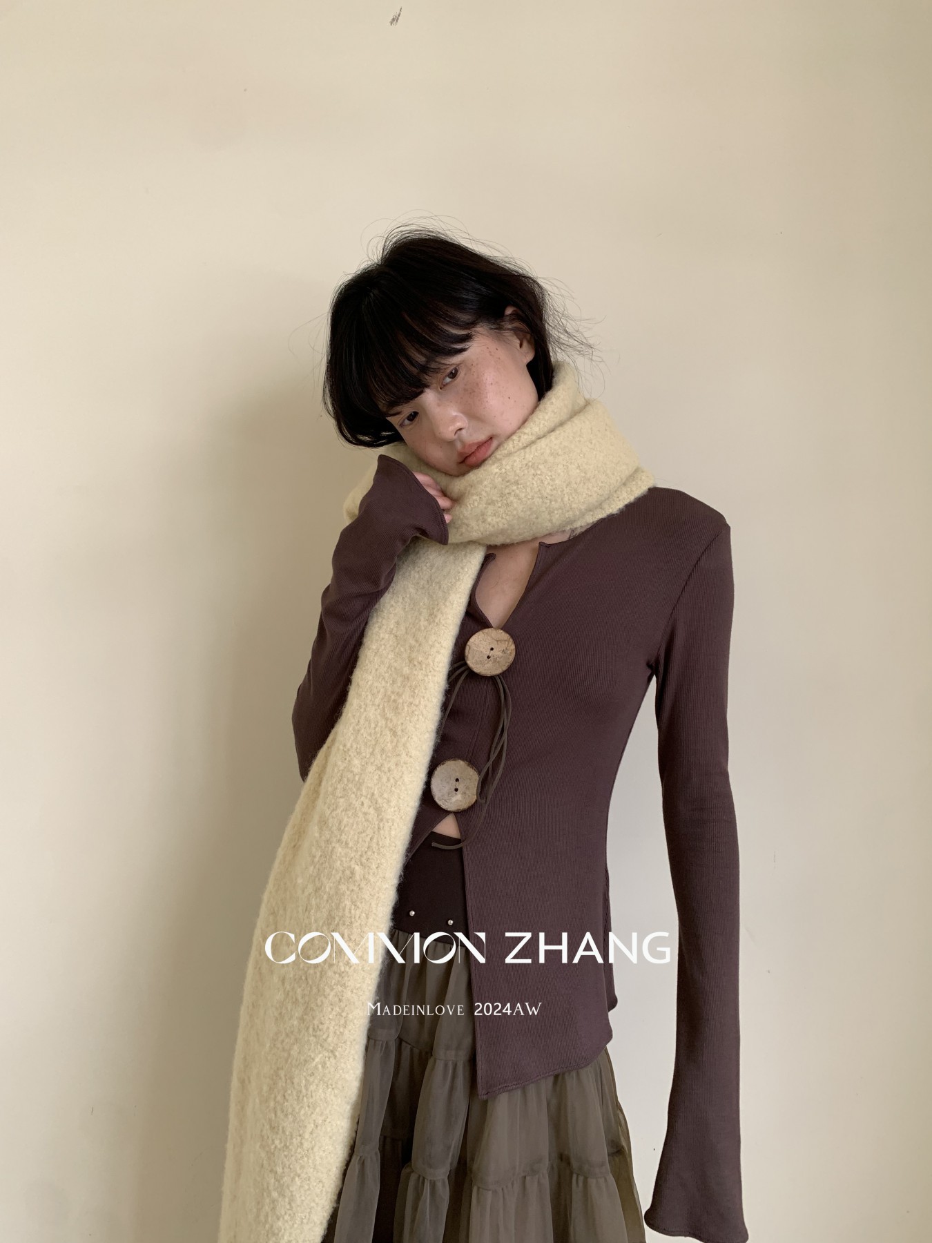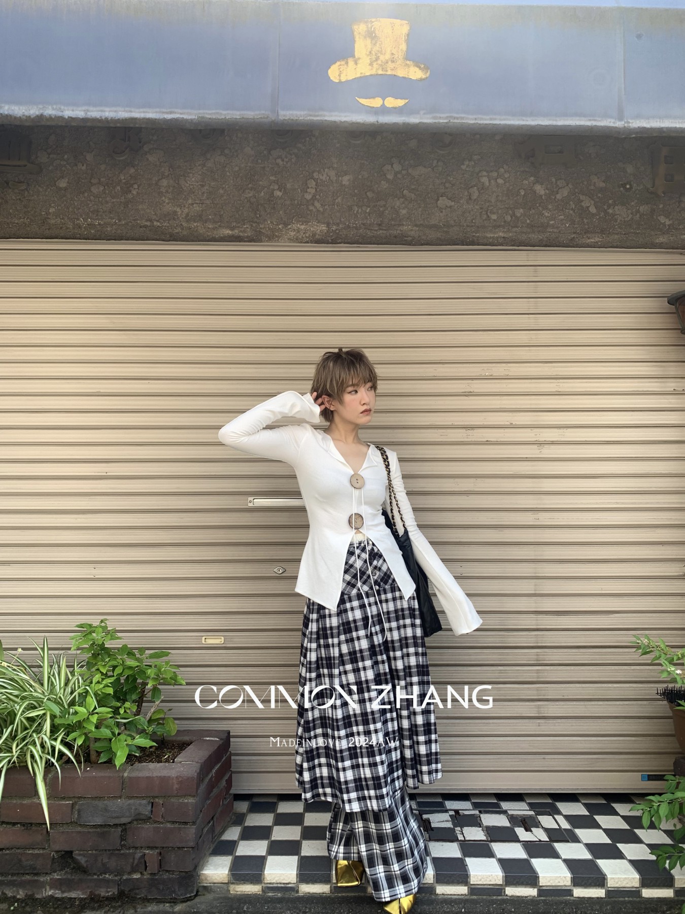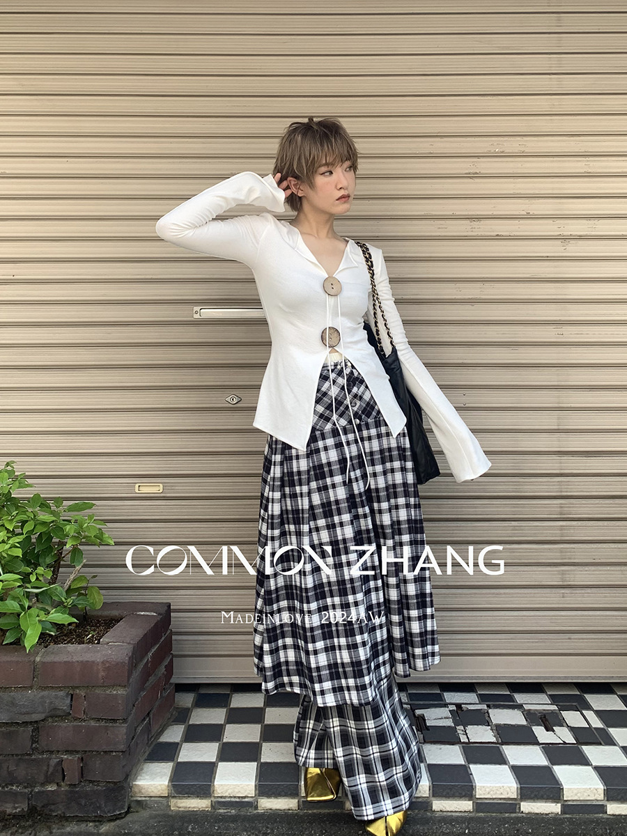 CZ ZHANG 가을 니치 섹시 프렌치 스타일 레이스업 레진 버튼 브이넥 섹시 니트 여성용 A33310