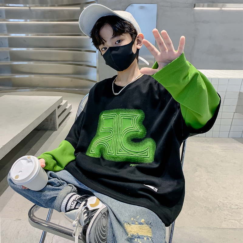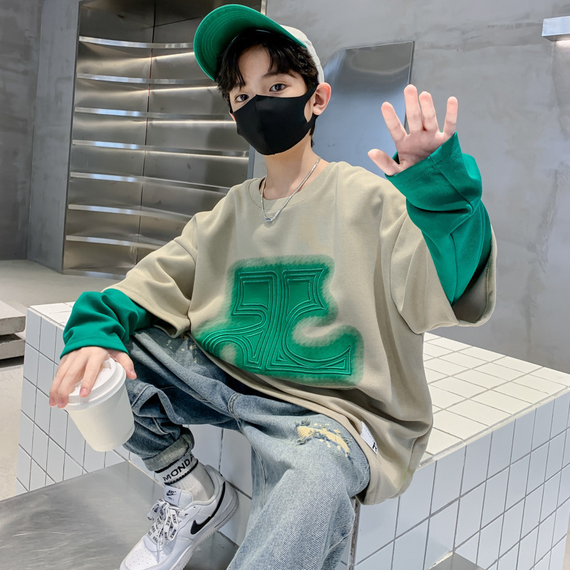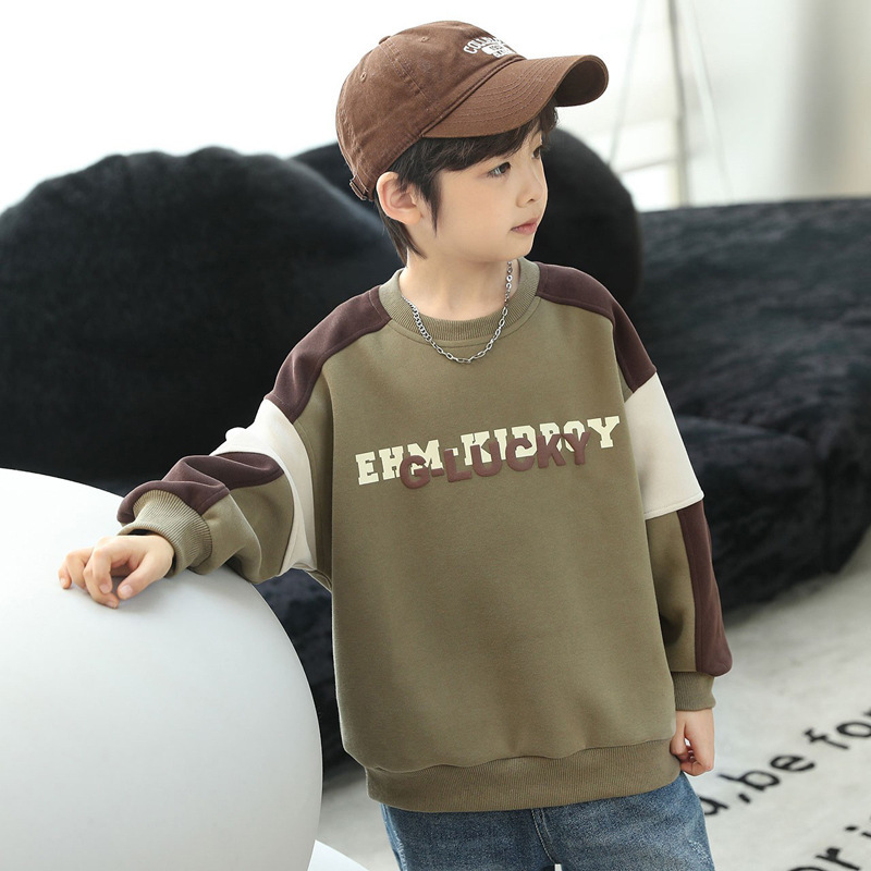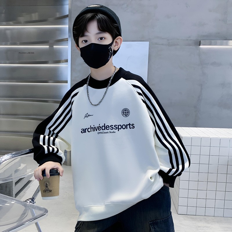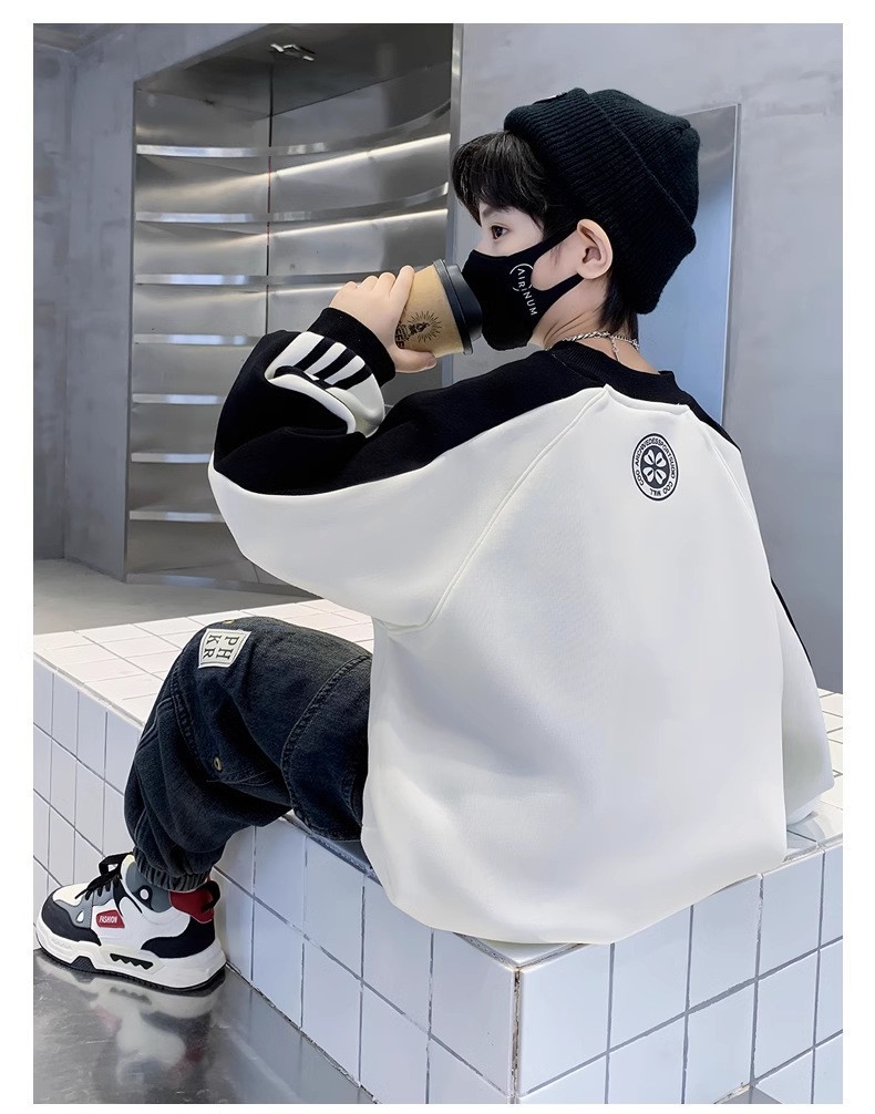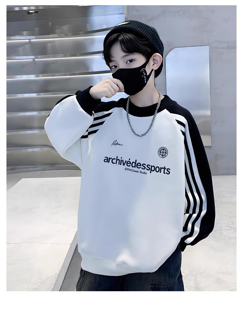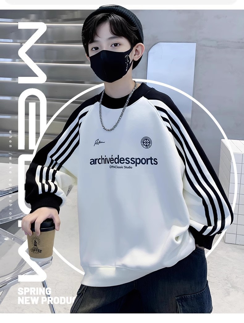 2024秋季儿童时尚字母印花宽松休闲卫衣男童时尚帅气条杠长袖上衣