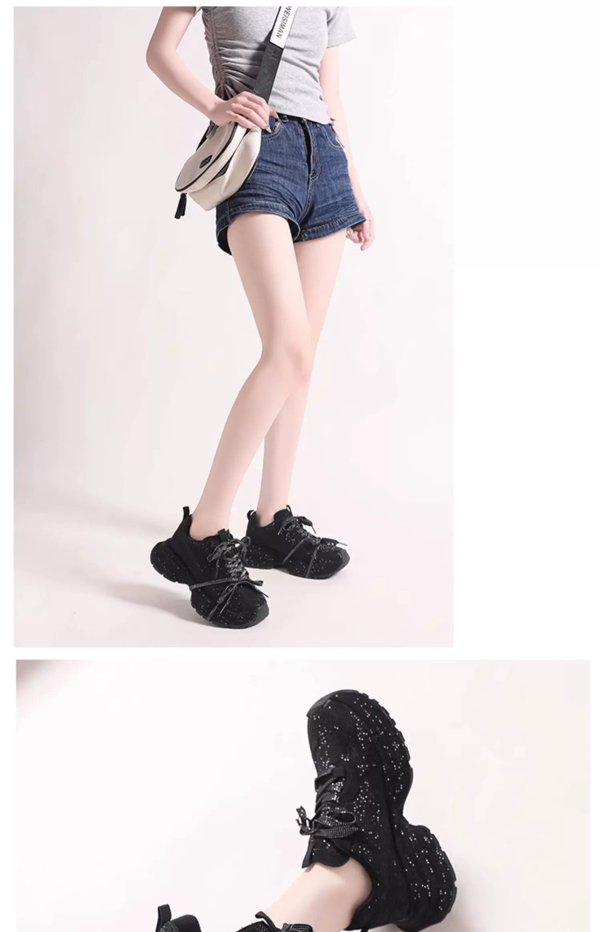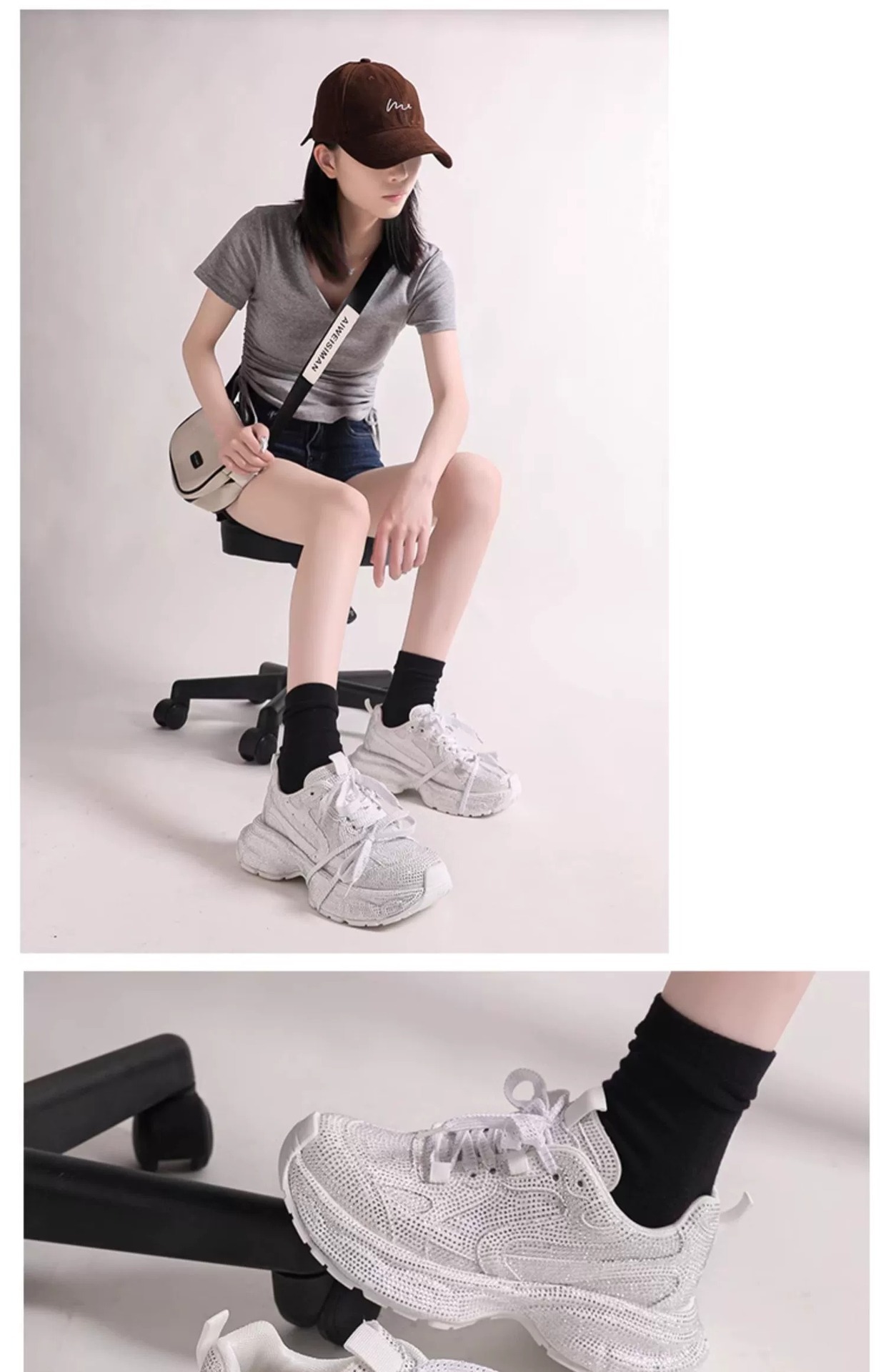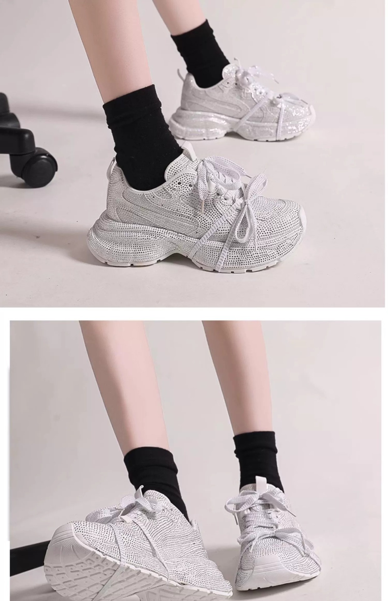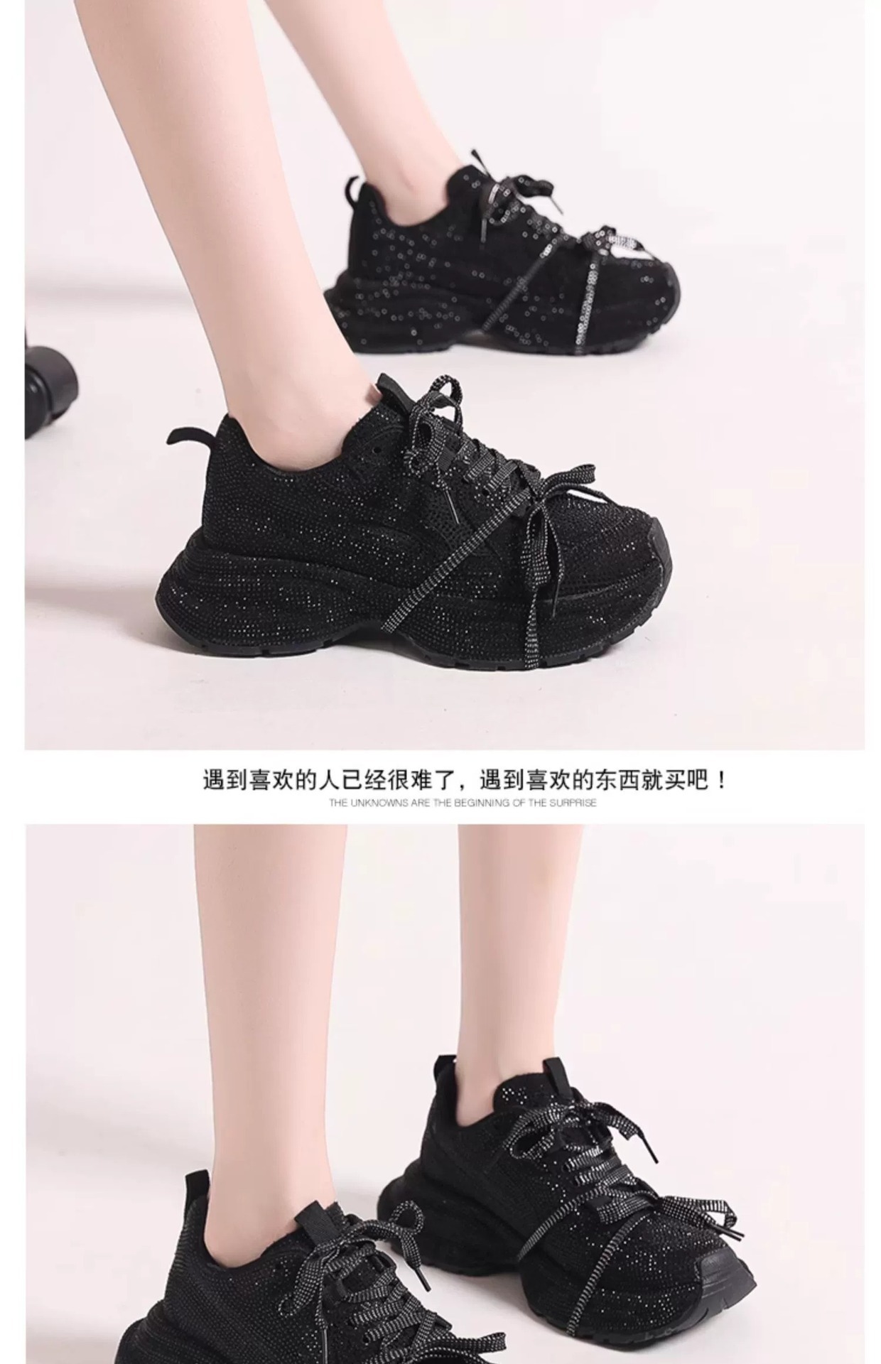 유럽 역 여성 신발 라인스톤 두꺼운 유일한 토레 신발 여성의 2024 새로운 스포츠 캐주얼 신발 풀 다이아몬드 플랫폼 신발 Ins 트렌디