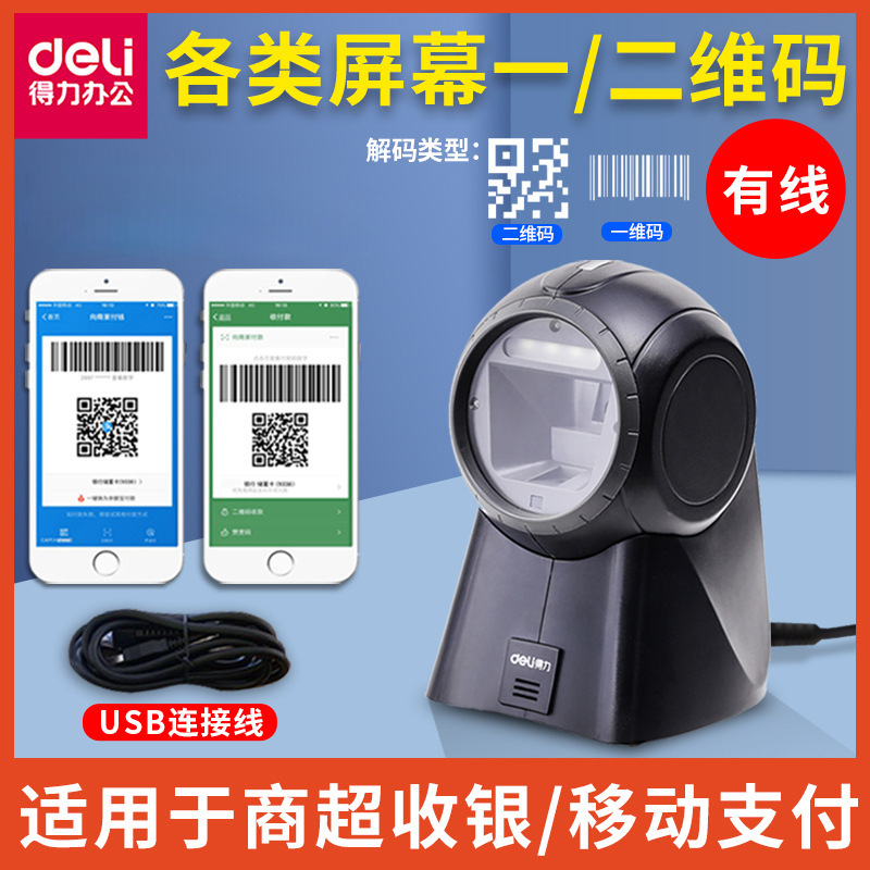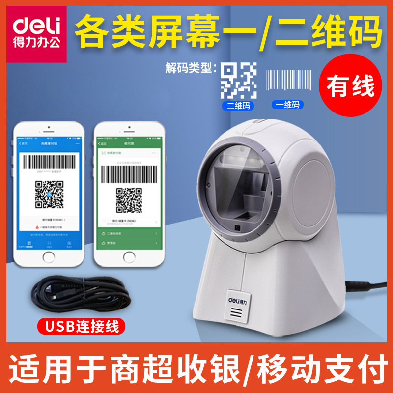 [Postage] 델리 유선 무선 스캔 건 Shang Chao 출납원 창고 재고 익스프레스 2 차원 코드 스캐너