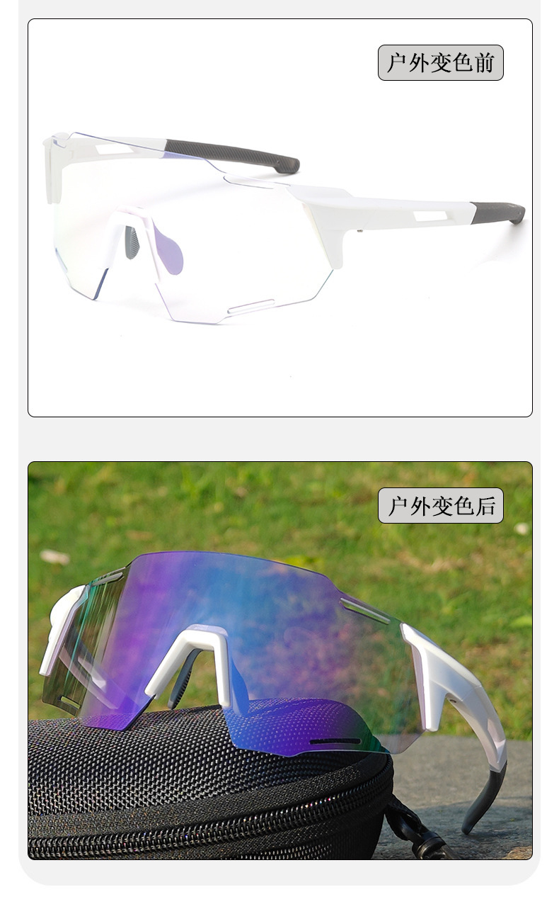 2024 새로운 사이클링 안경 화이트 프레임 투명 대형 프레임 야외 색상 변경 선글라스 러닝 안티 바람 모래 UV스토어 가기