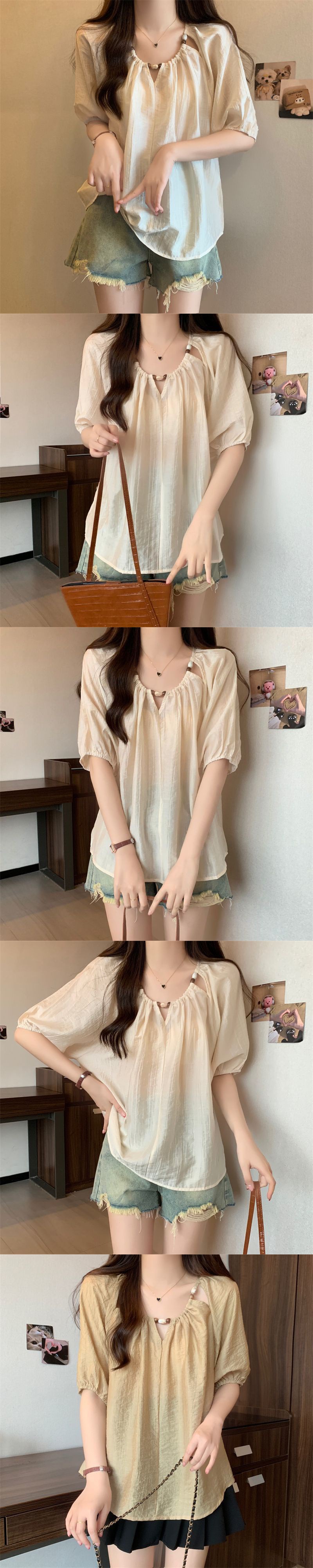 플러스 사이즈 여성 프랑스 반팔 셔츠 새 여름 통통녀 느슨한 슬림 셔츠 캐주얼 시폰 연령 감소 탑스토어 가기