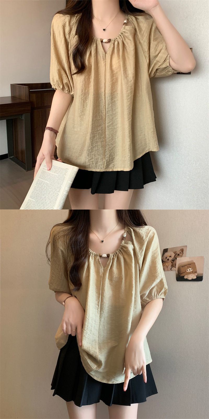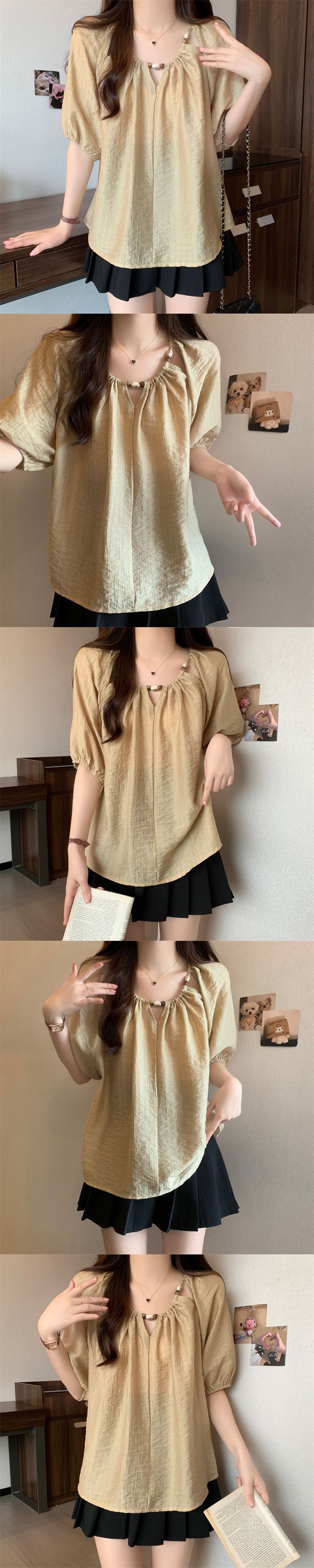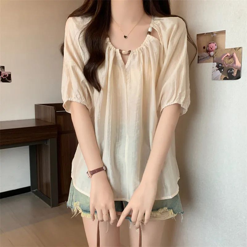 플러스 사이즈 여성 프랑스 반팔 셔츠 새 여름 통통녀 느슨한 슬림 셔츠 캐주얼 시폰 연령 감소 탑