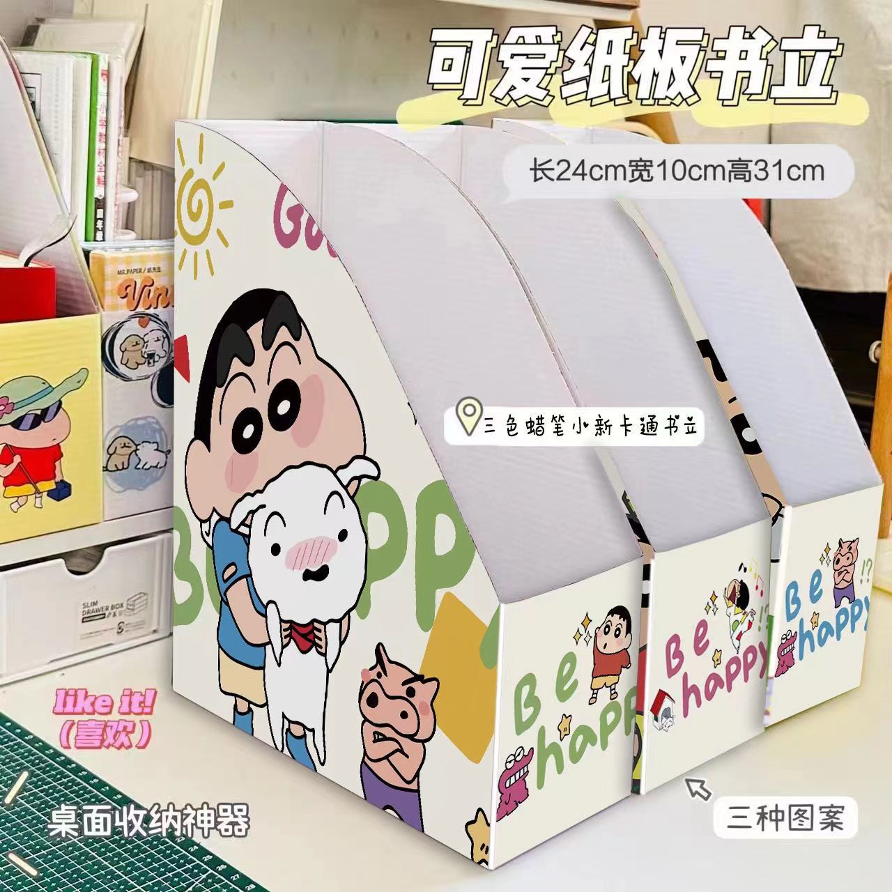 귀여운 3 색 크레용 작은 새로운 손으로 그린 스타일 책 스탠드 저장 상자 데스크탑 책장 종이 폴더 만화 책 스탠드스토어 가기
