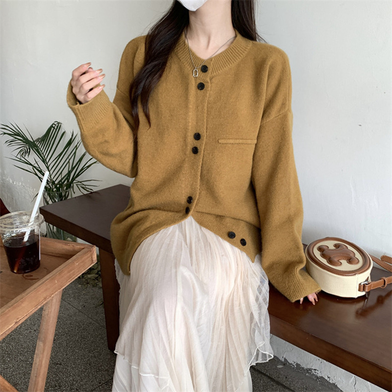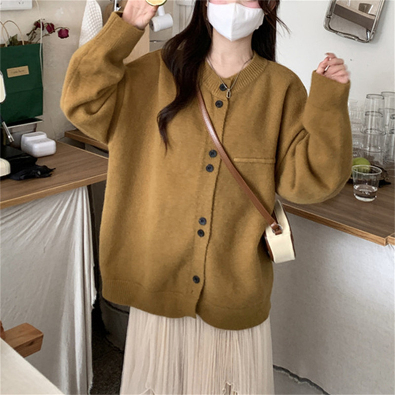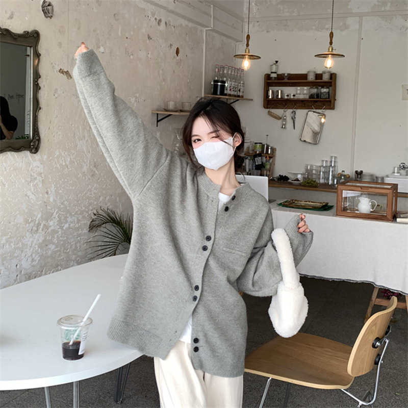 2024 년 초 가을 새 회색 니트 카디건 여성 느슨한 대학 스타일 캐주얼 게으른 작은 스웨터 코트스토어 가기