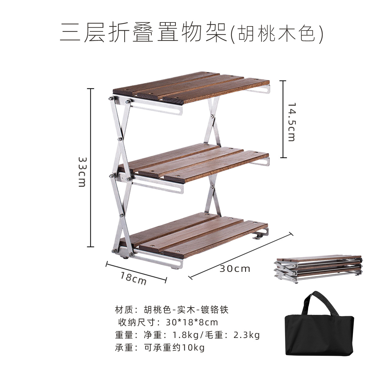 • 수납가방이 포함된 3단 접이식 수납선반 - 월넛색상 + 무료 브랜드 스티커