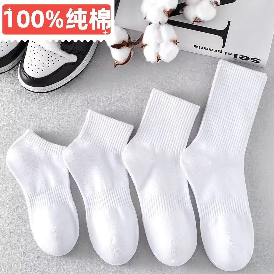 남성과 여성을위한 목화 양말 화이트 봄과 가을 중간 길이 양말 스포츠 단색 여름 짧은 양말 Zhuji 양말 커플 스타킹