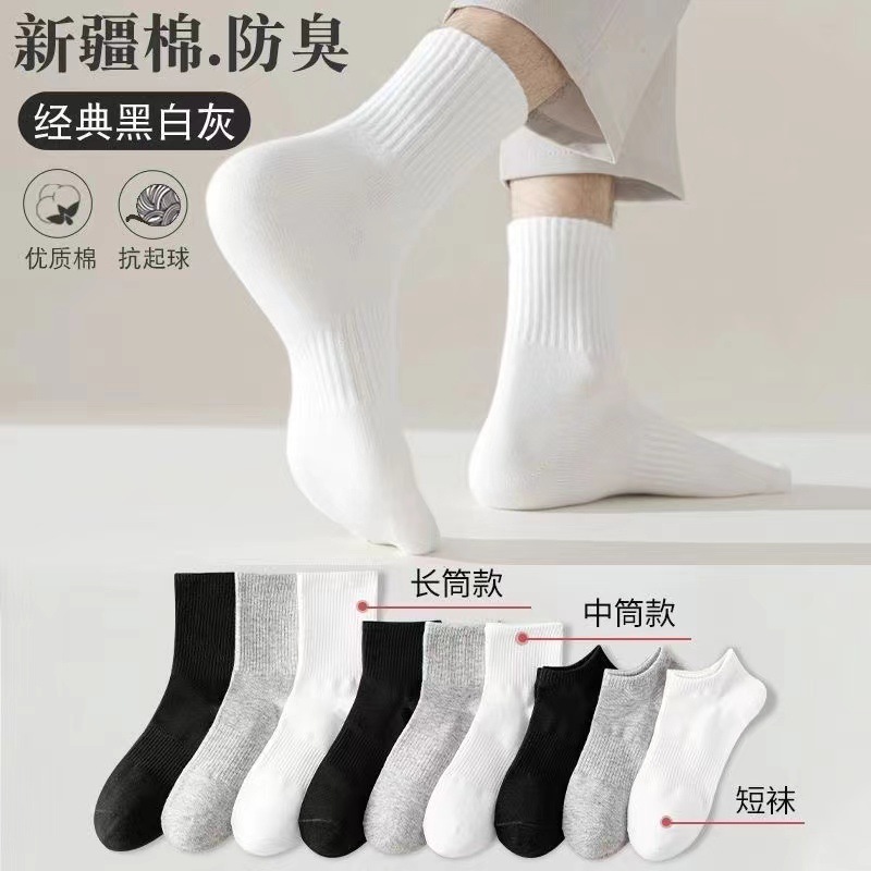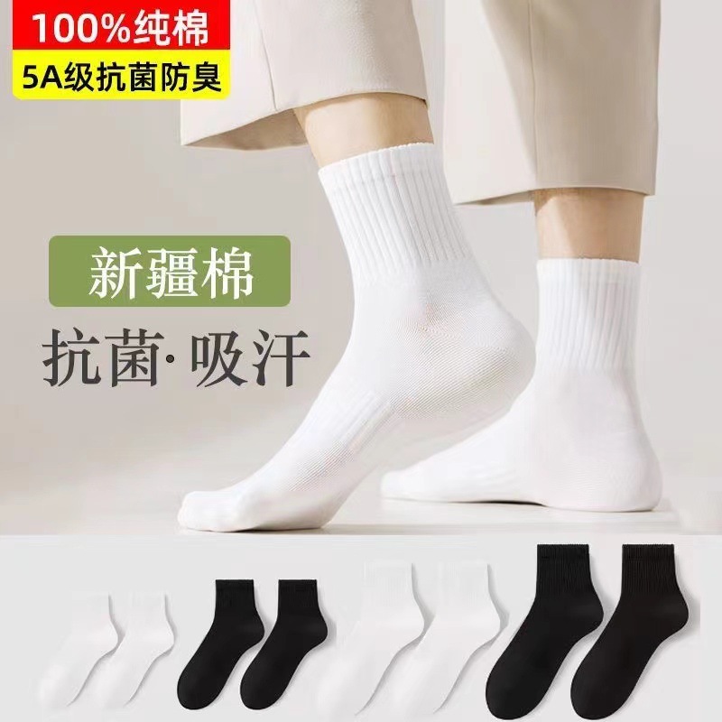 남성과 여성을위한 목화 양말 화이트 봄과 가을 중간 길이 양말 스포츠 단색 여름 짧은 양말 Zhuji 양말 커플 스타킹스토어 가기