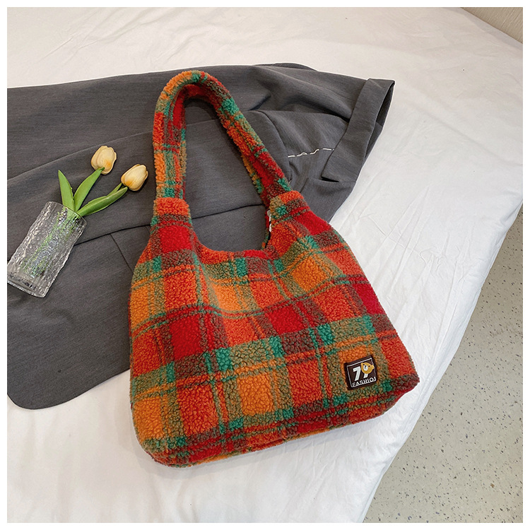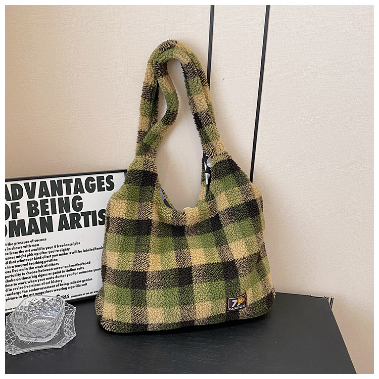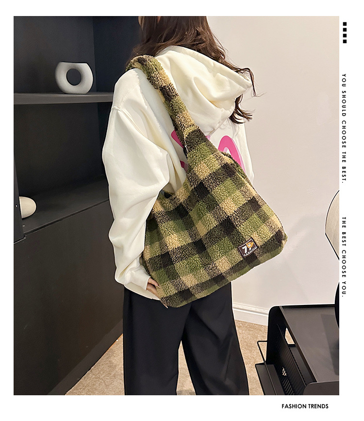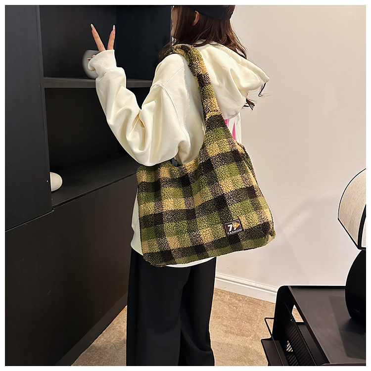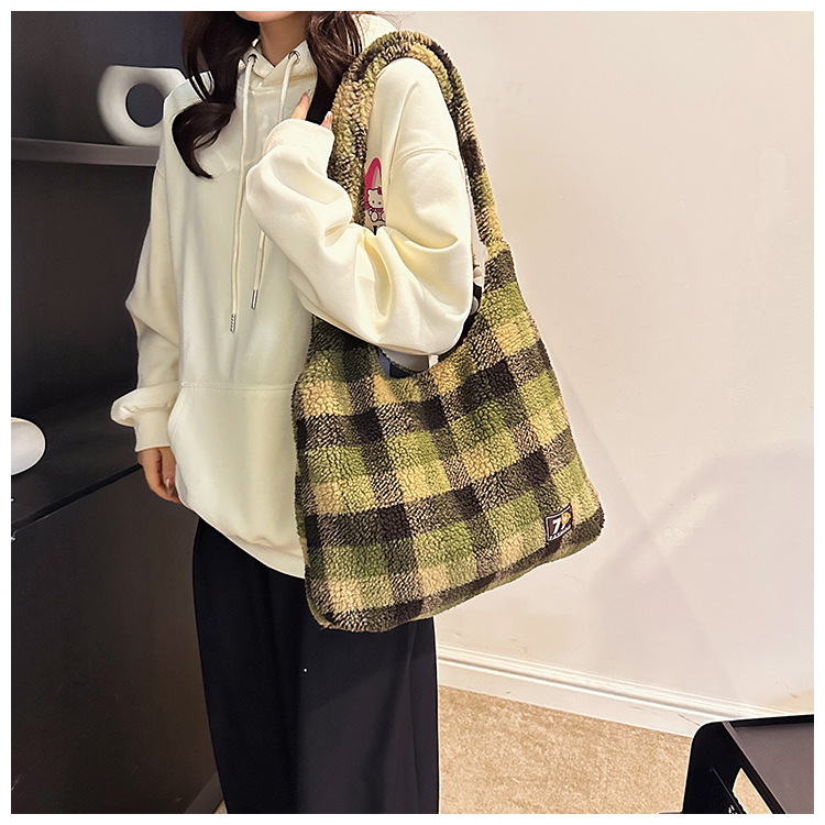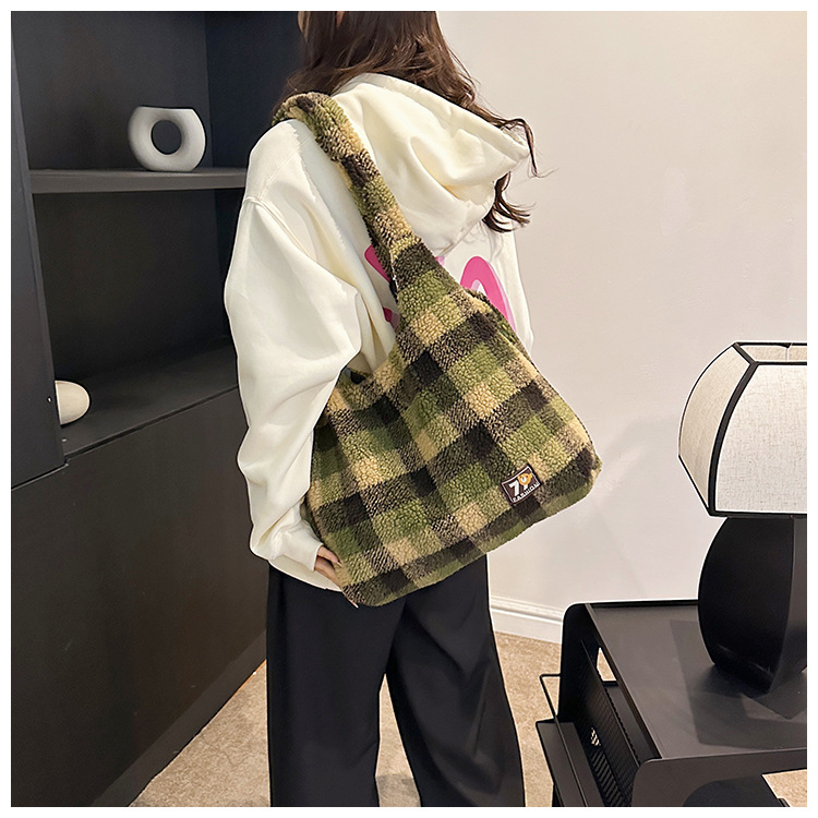일본과 한국의 새로운 스타일 다용도 가을 겨울 체크무늬 숄더백 여성용 2025 한국 스타일 대용량 겨드랑이 토트백스토어 가기