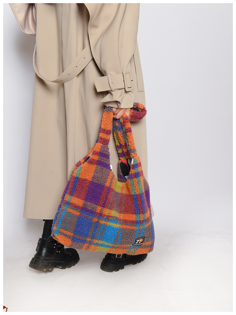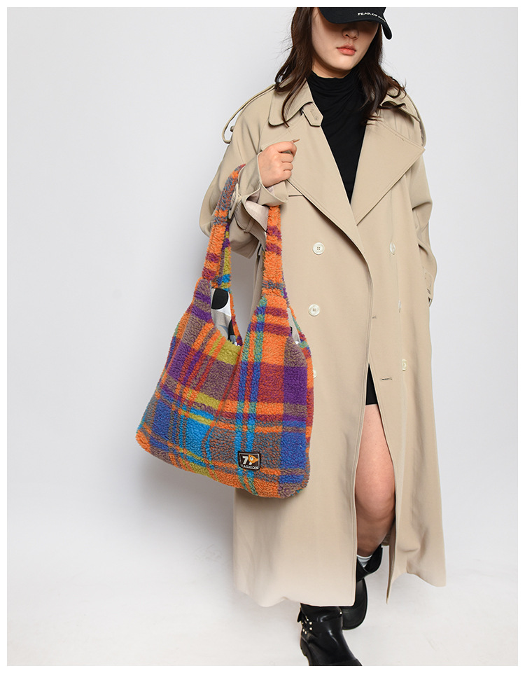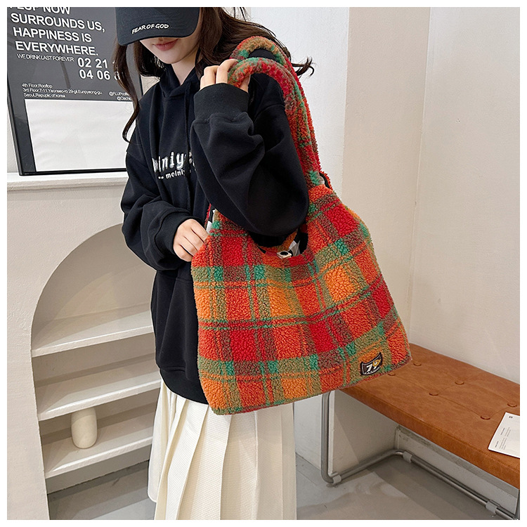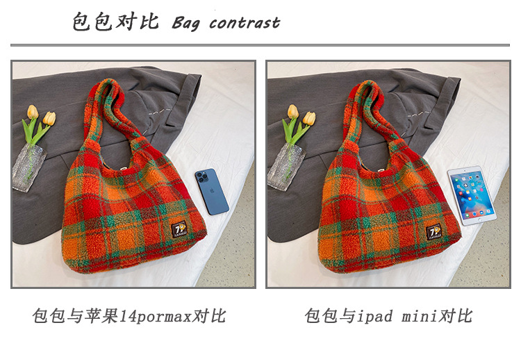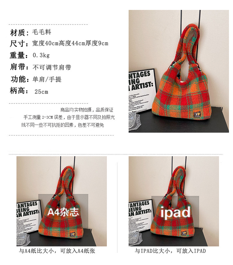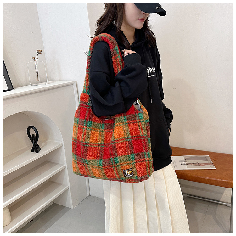 일본과 한국의 새로운 스타일 다용도 가을 겨울 체크무늬 숄더백 여성용 2025 한국 스타일 대용량 겨드랑이 토트백스토어 가기