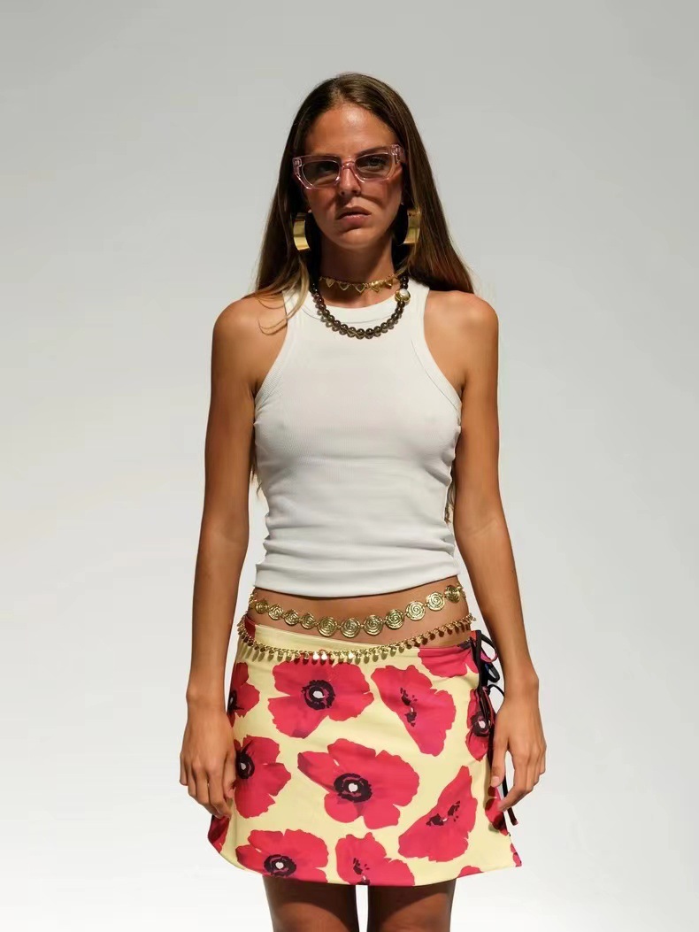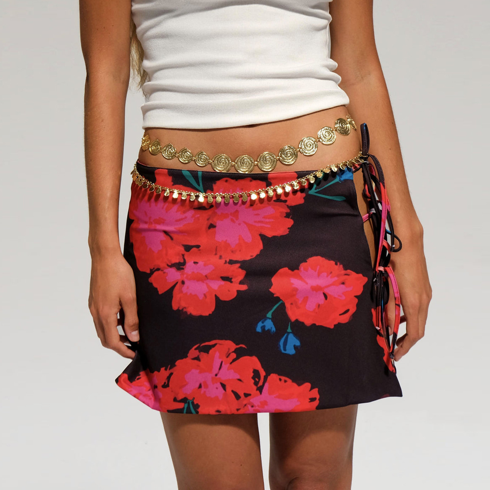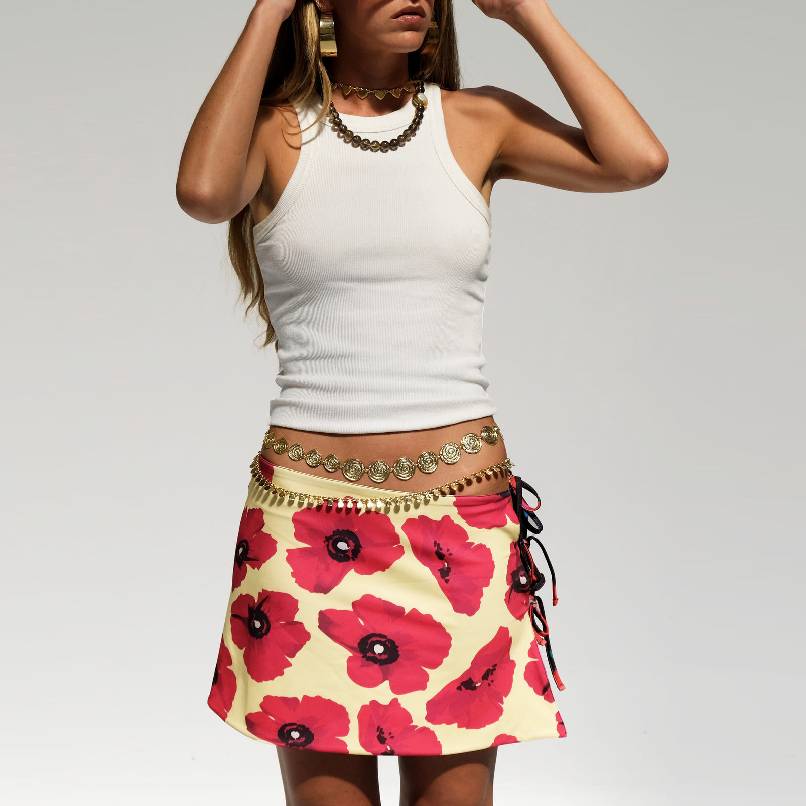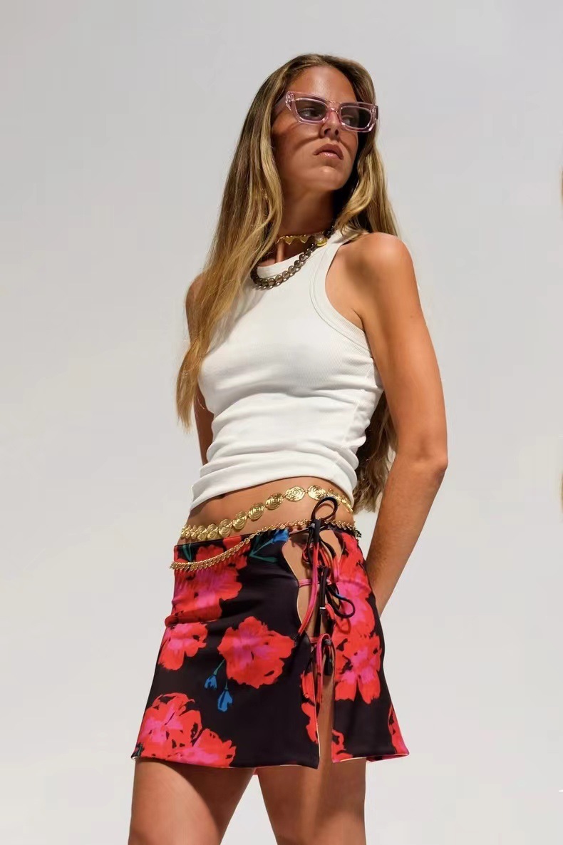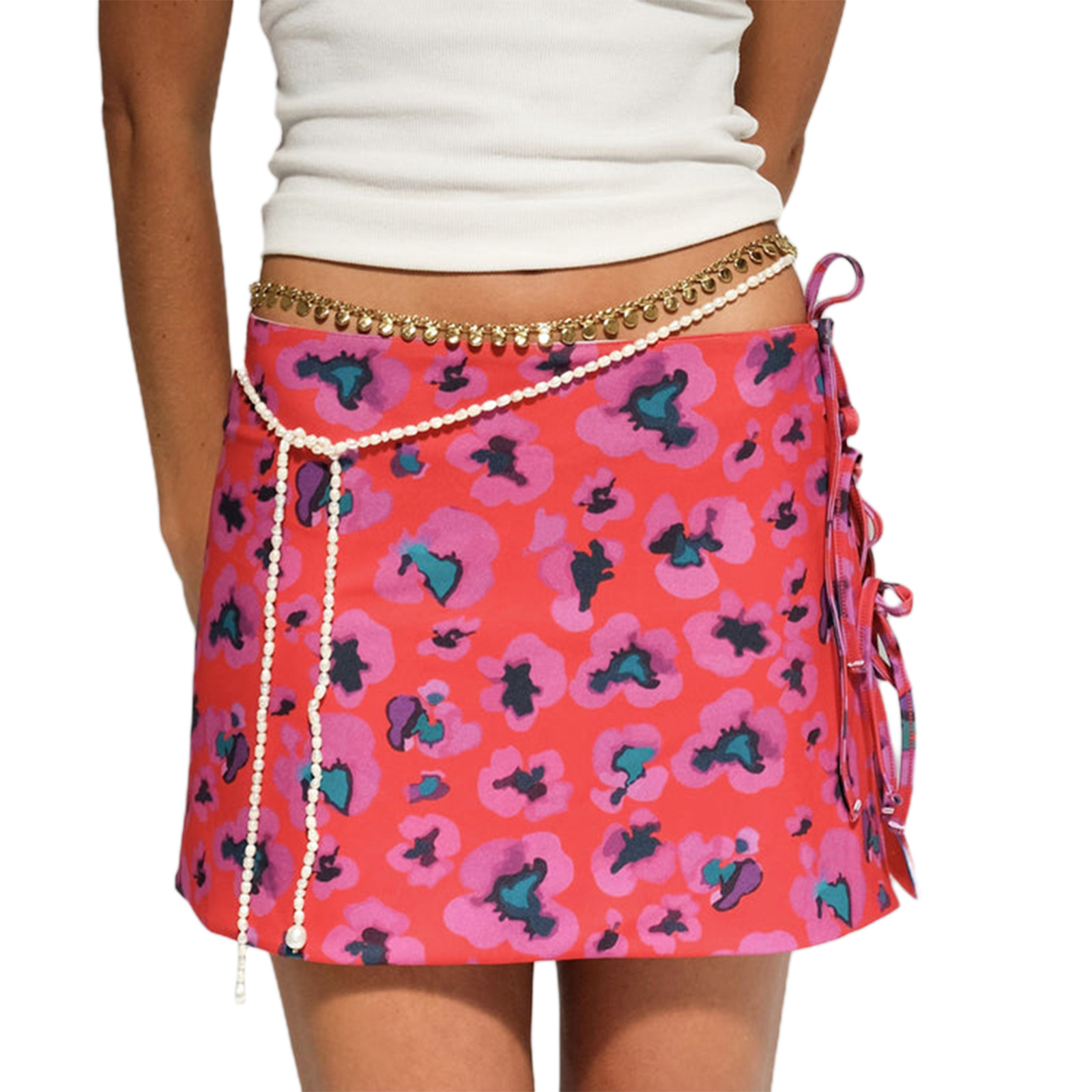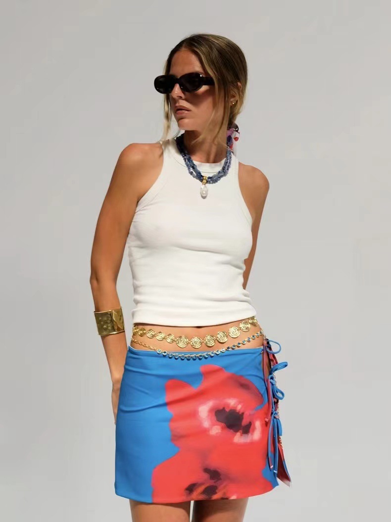 S32261 유럽과 미국의 국경 새로운 아마존 핫 여성의 섹시한 레이스 업 미니 스트랩 프린트 스커트