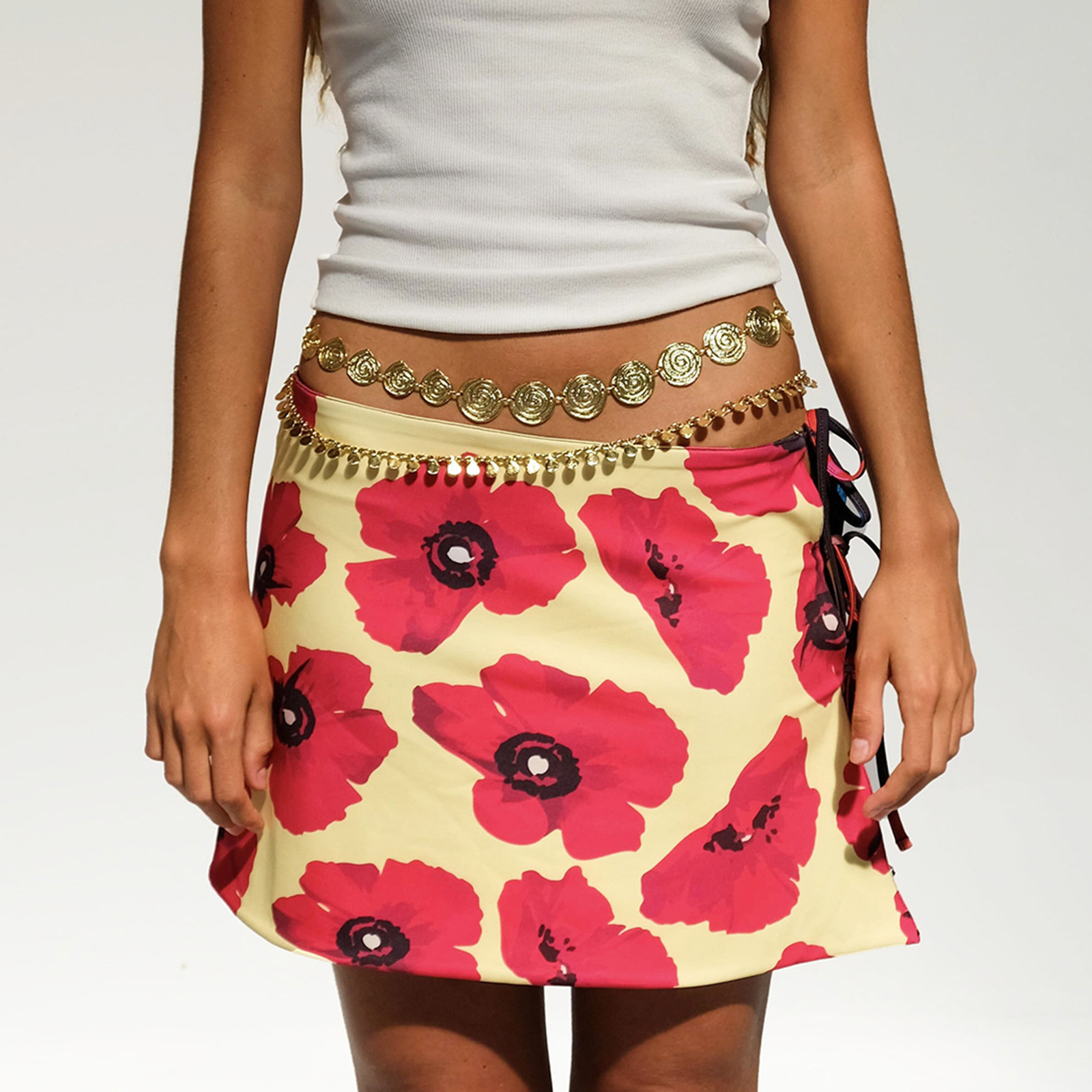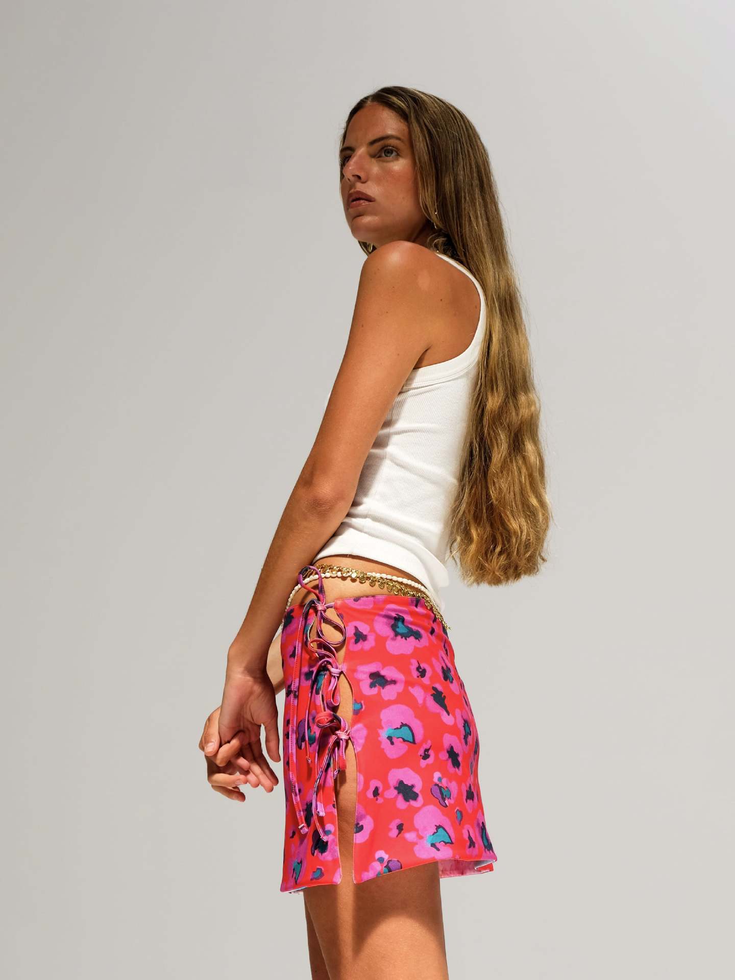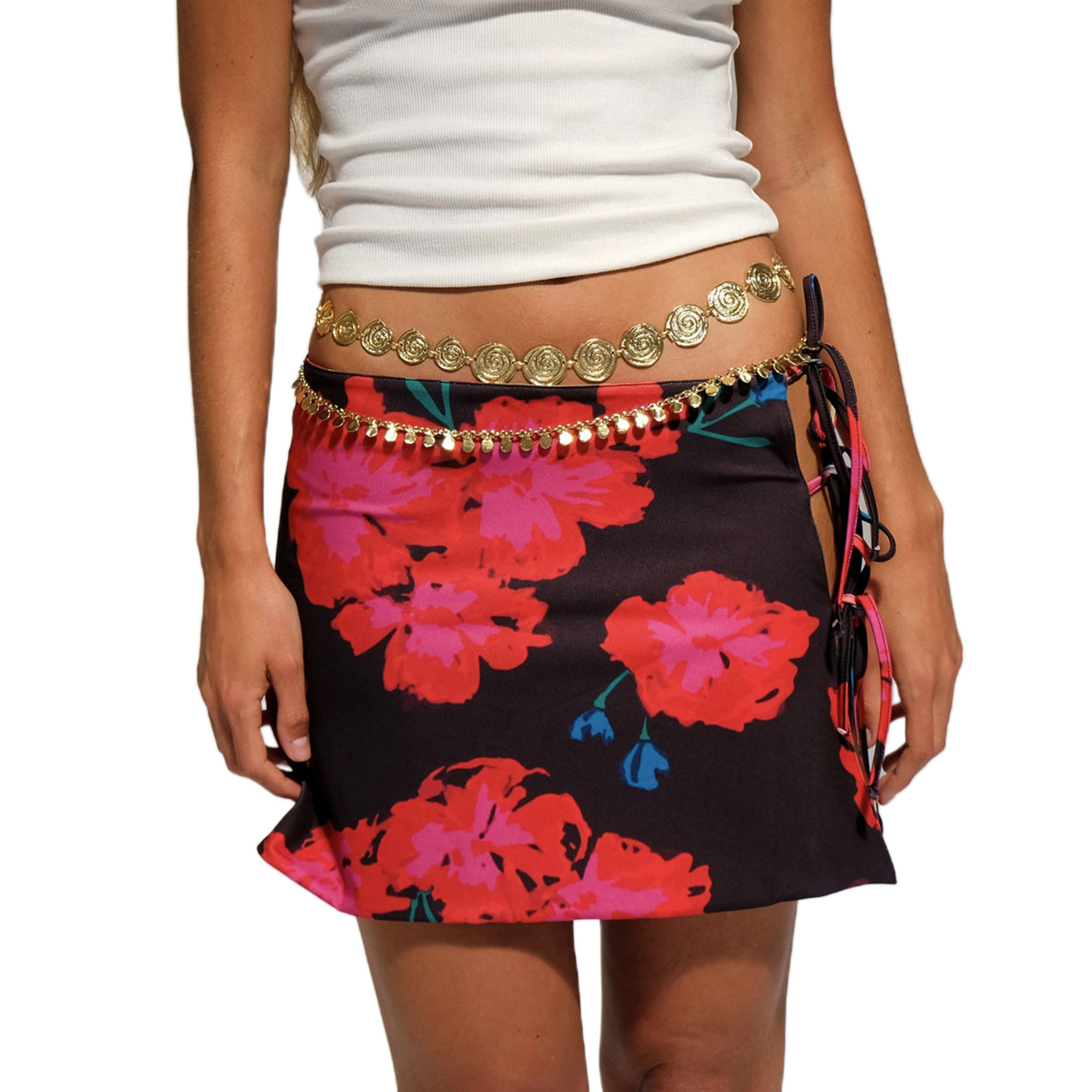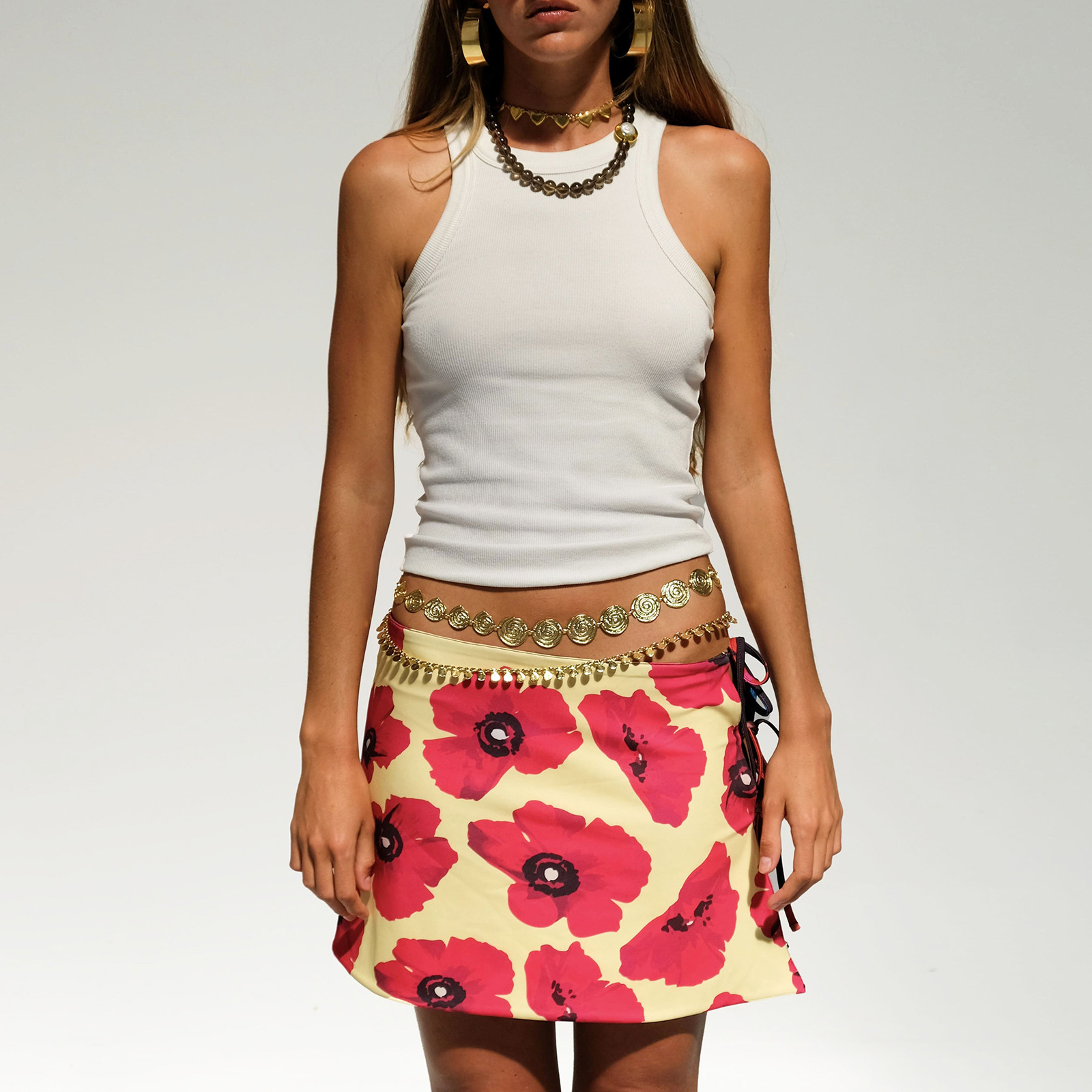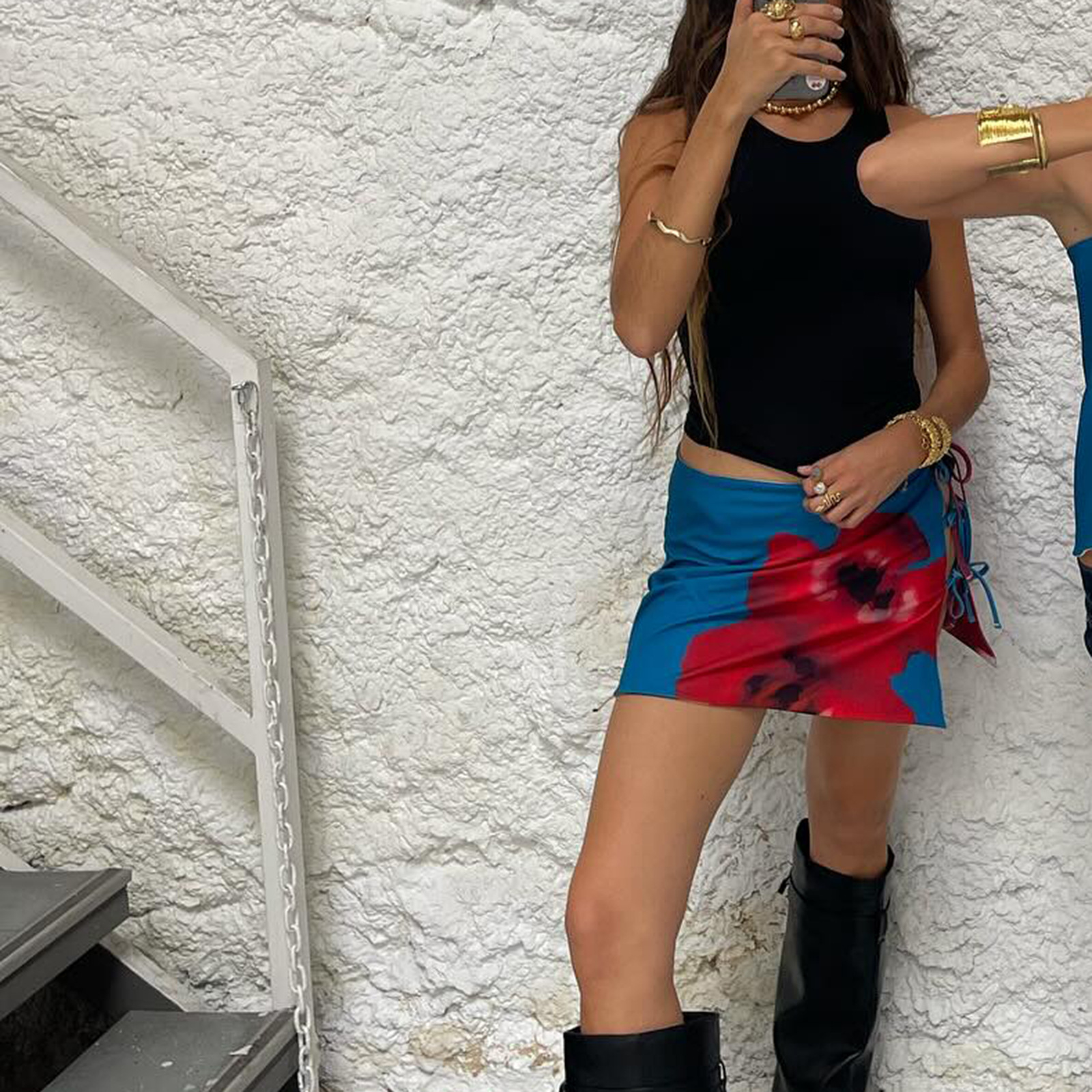 S32261 유럽과 미국의 국경 새로운 아마존 핫 여성의 섹시한 레이스 업 미니 스트랩 프린트 스커트
