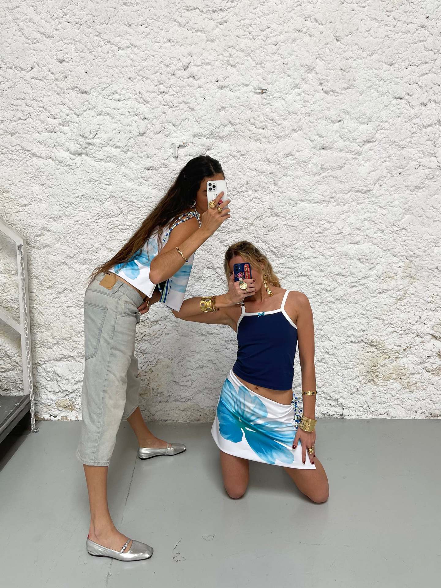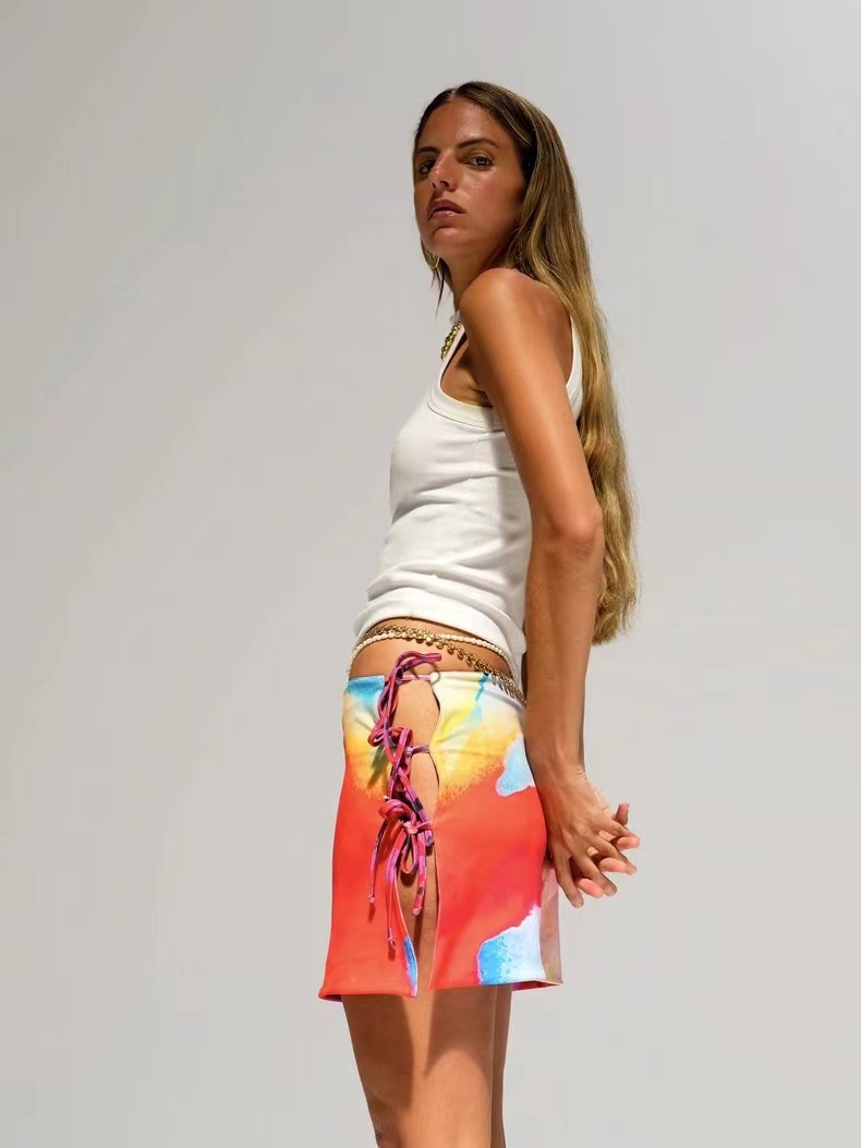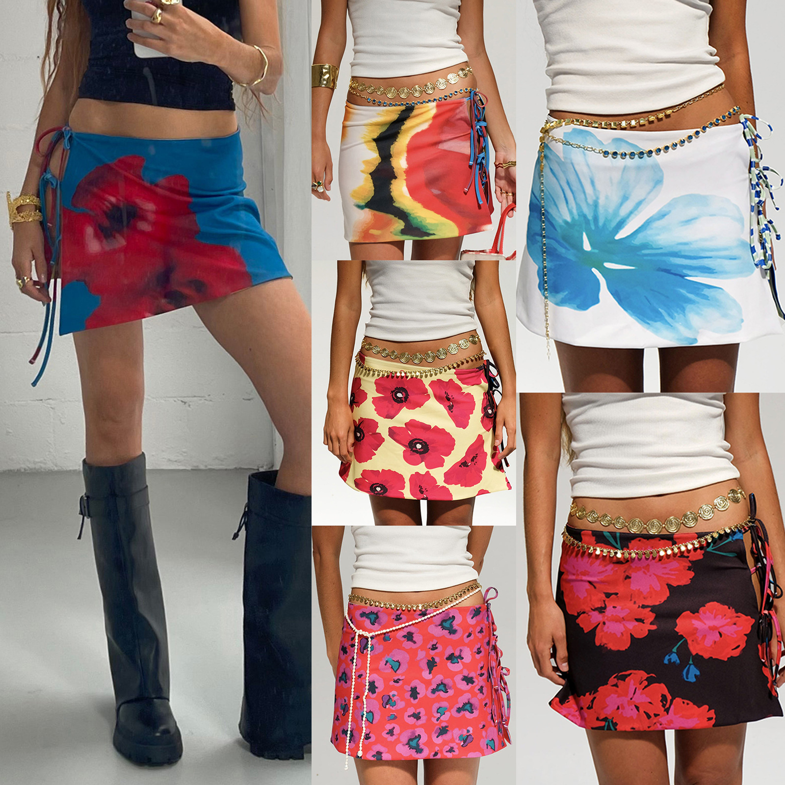 S32261 유럽과 미국의 국경 새로운 아마존 핫 여성의 섹시한 레이스 업 미니 스트랩 프린트 스커트스토어 가기