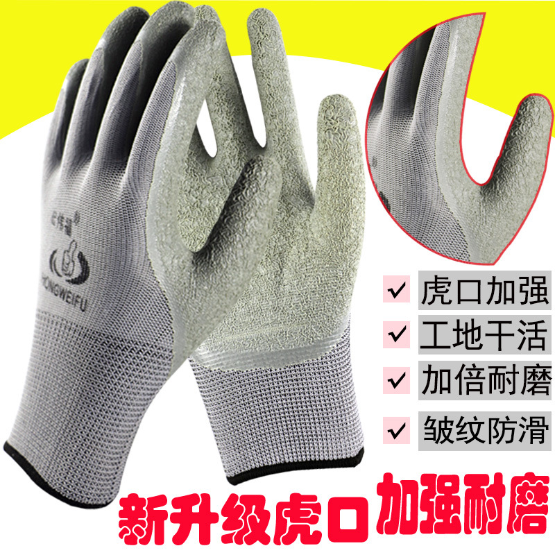 라텍스 주름 노동 보호 작업 장갑 내마모성 두꺼운 방수 통기성 미끄럼 방지 고무 건설 현장 보호 손스토어 가기