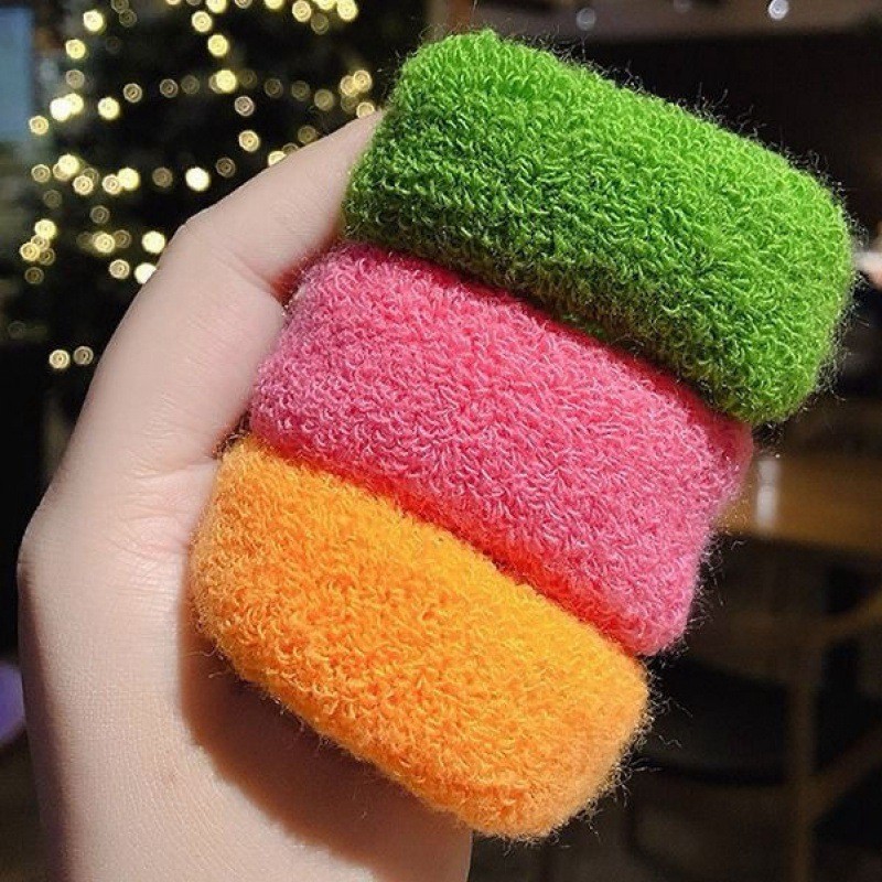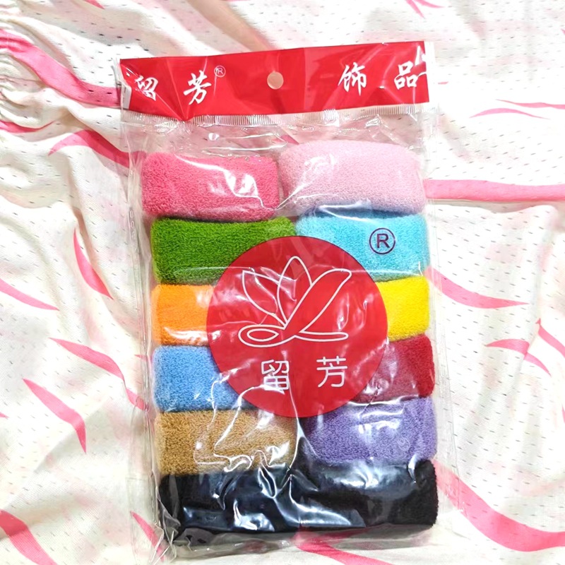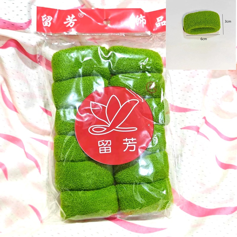 毛巾发圈是机器切割的,难免有一些短的线头,佩戴前先抖一下然后在佩戴就可以