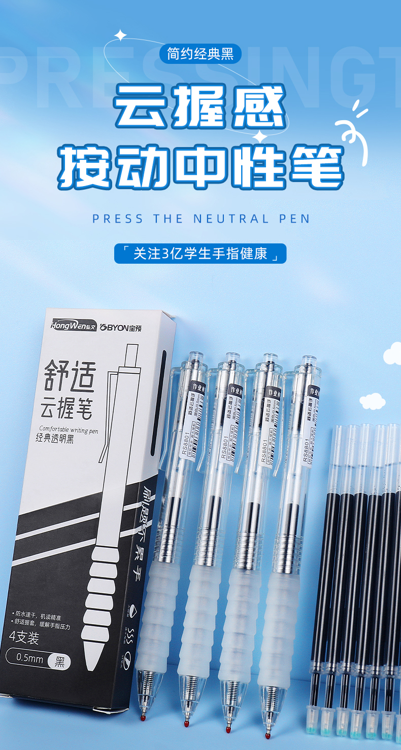 클라우드 그립 브러시 젤 펜 학생 특수 프레스 젤 펜 블랙 투명 프레스 펜 테스트 볼펜 레드스토어 가기
