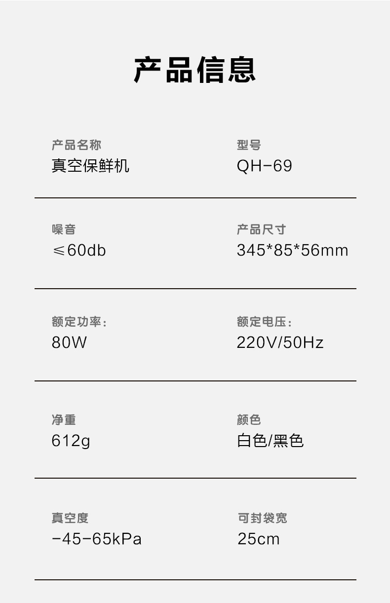 • 화이트 QH-69 기본 세트 (진공 포장 백 10개 증정)