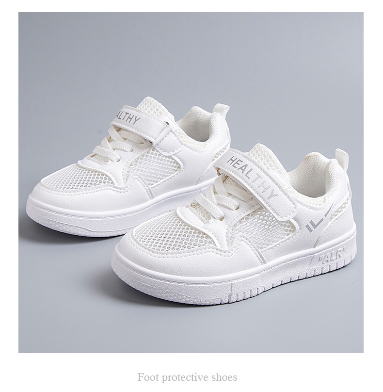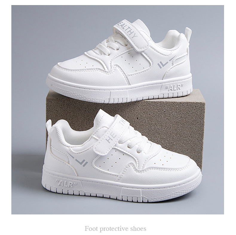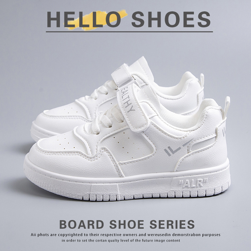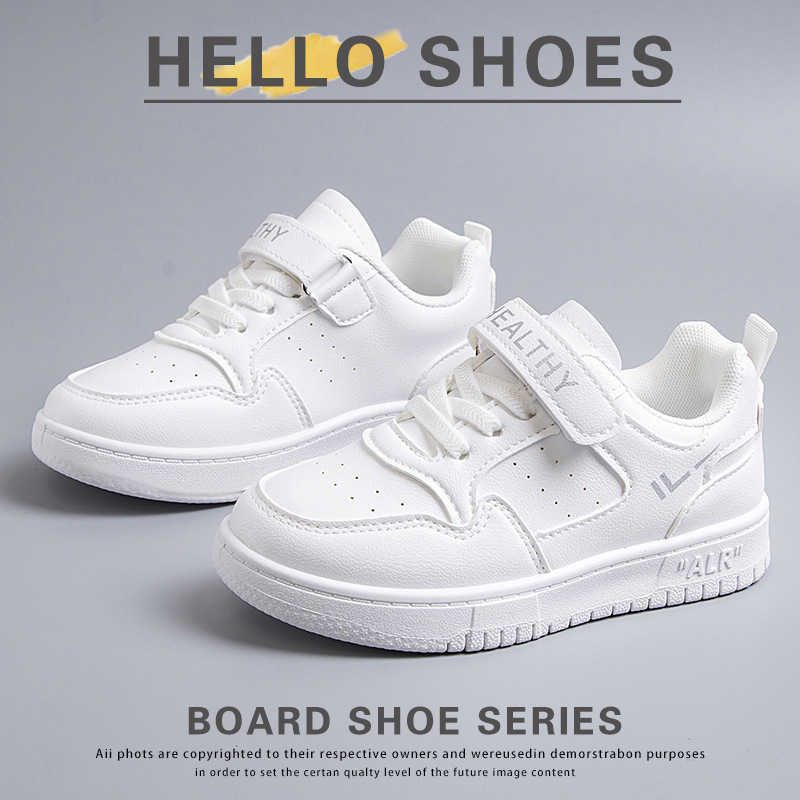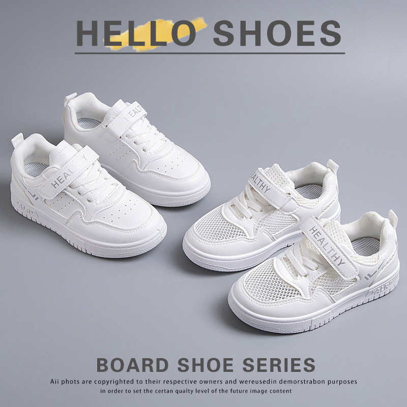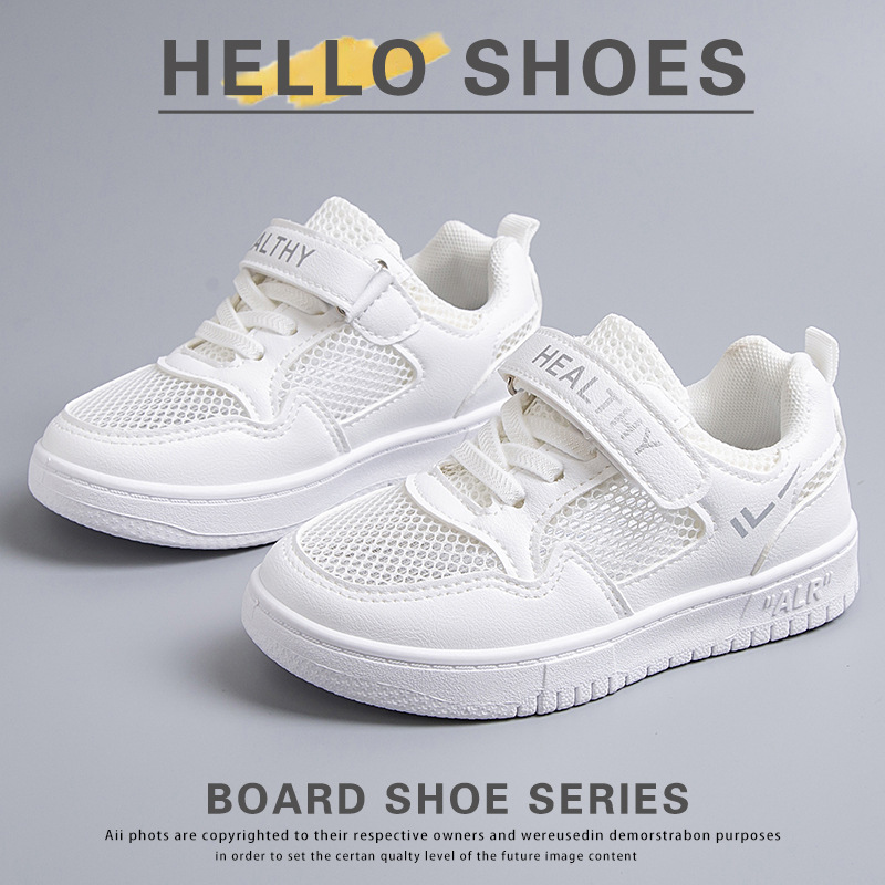 2024 새로운 학교 지정 흰색 신발 소년 소녀 어린이 메쉬 스케이트 신발 어린이 가죽 올 매치 캐주얼