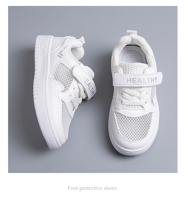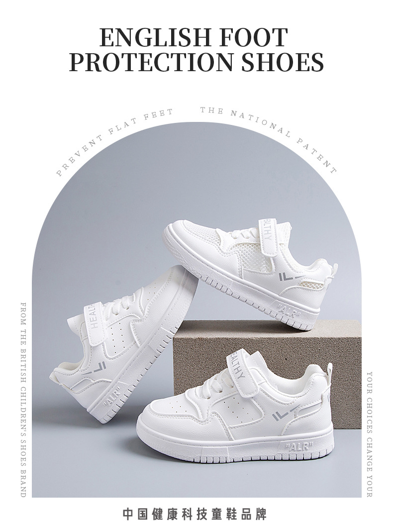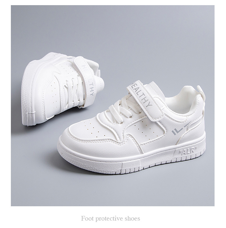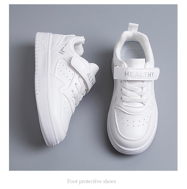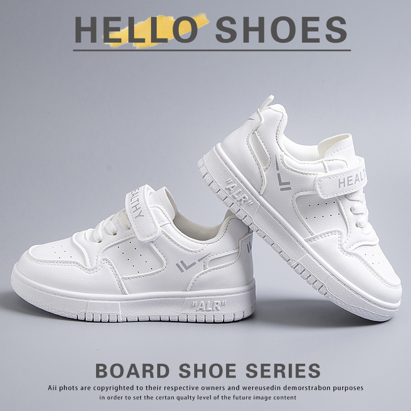 2024 새로운 학교 지정 흰색 신발 소년 소녀 어린이 메쉬 스케이트 신발 어린이 가죽 올 매치 캐주얼