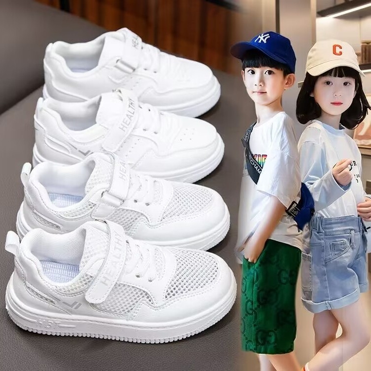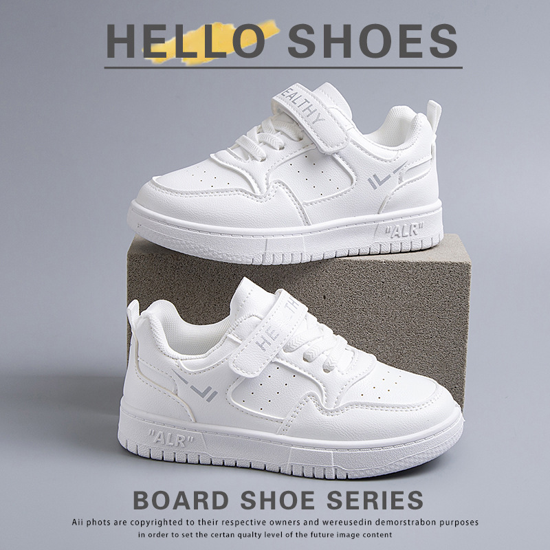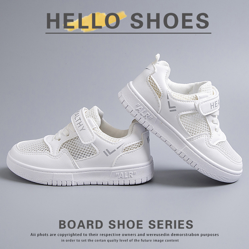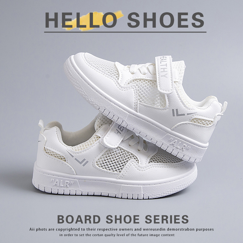 2024 새로운 학교 지정 흰색 신발 소년 소녀 어린이 메쉬 스케이트 신발 어린이 가죽 올 매치 캐주얼스토어 가기