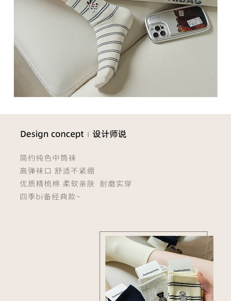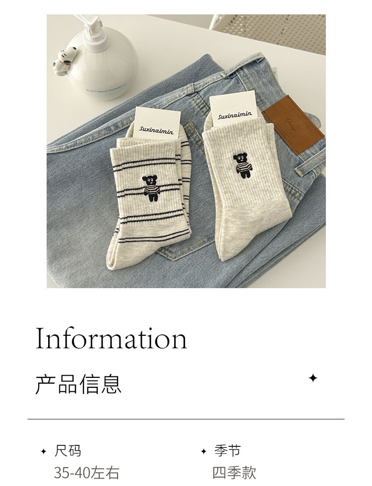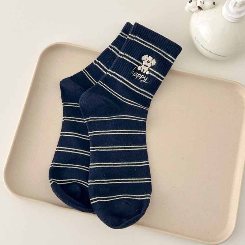 2024 한국 스타일 가을 귀여운 강아지 자수 트렌디 힐링 스트라이프 미드 사이즈 양말