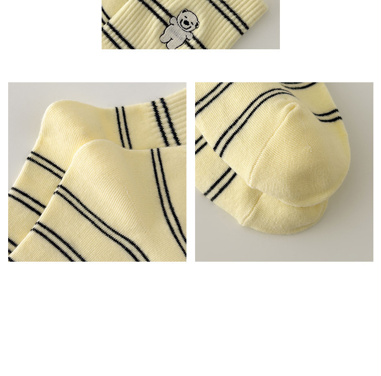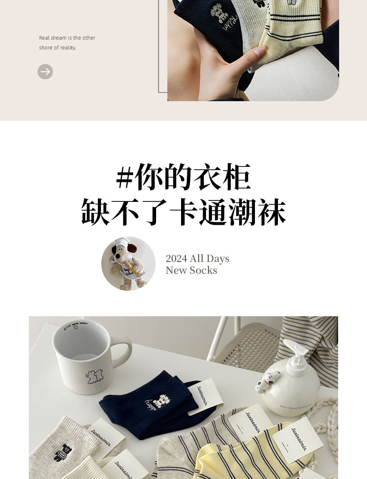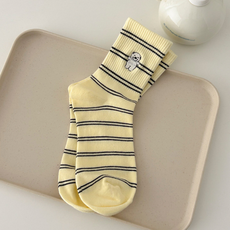 2024 한국 스타일 가을 귀여운 강아지 자수 트렌디 힐링 스트라이프 미드 사이즈 양말스토어 가기