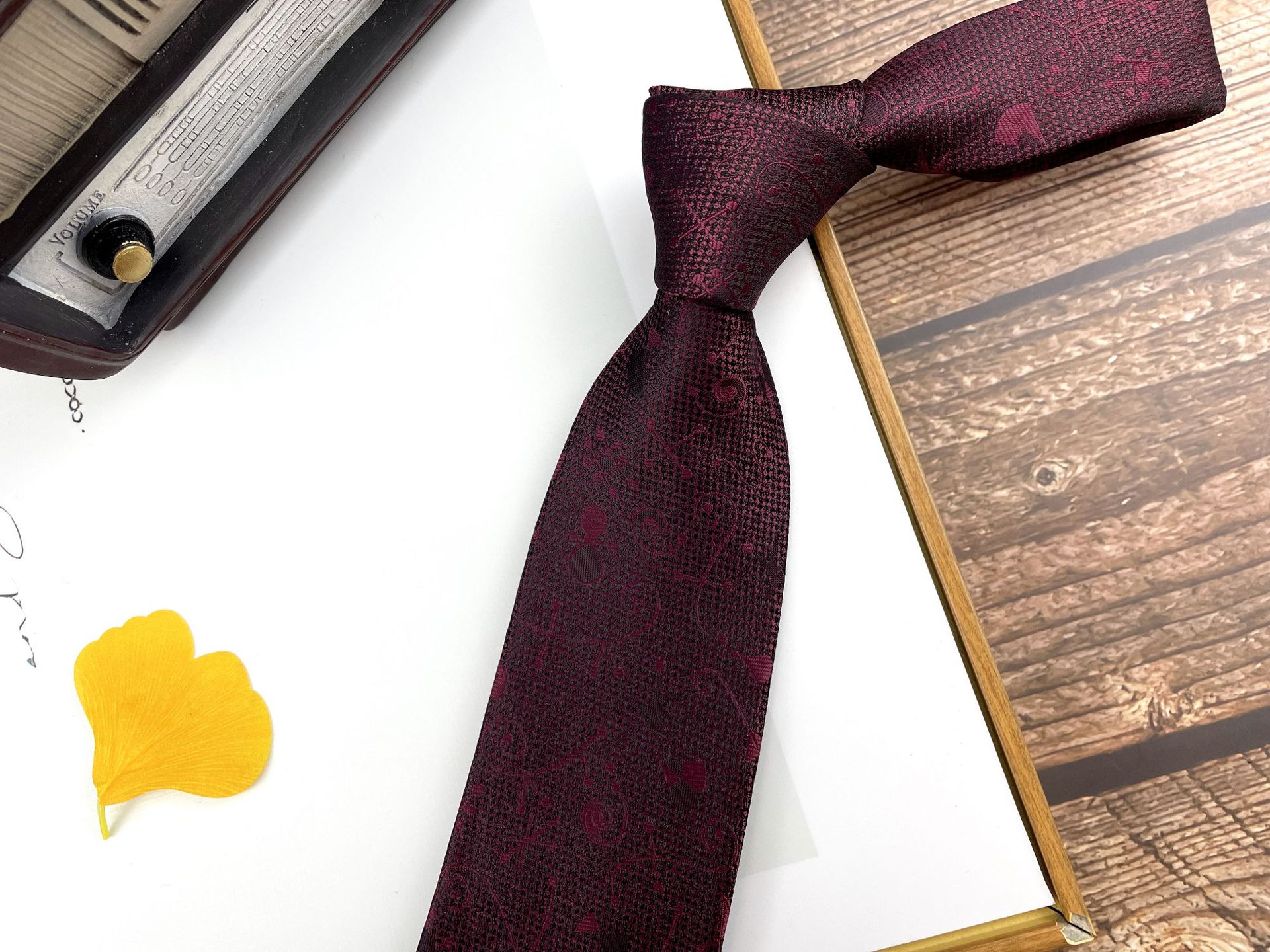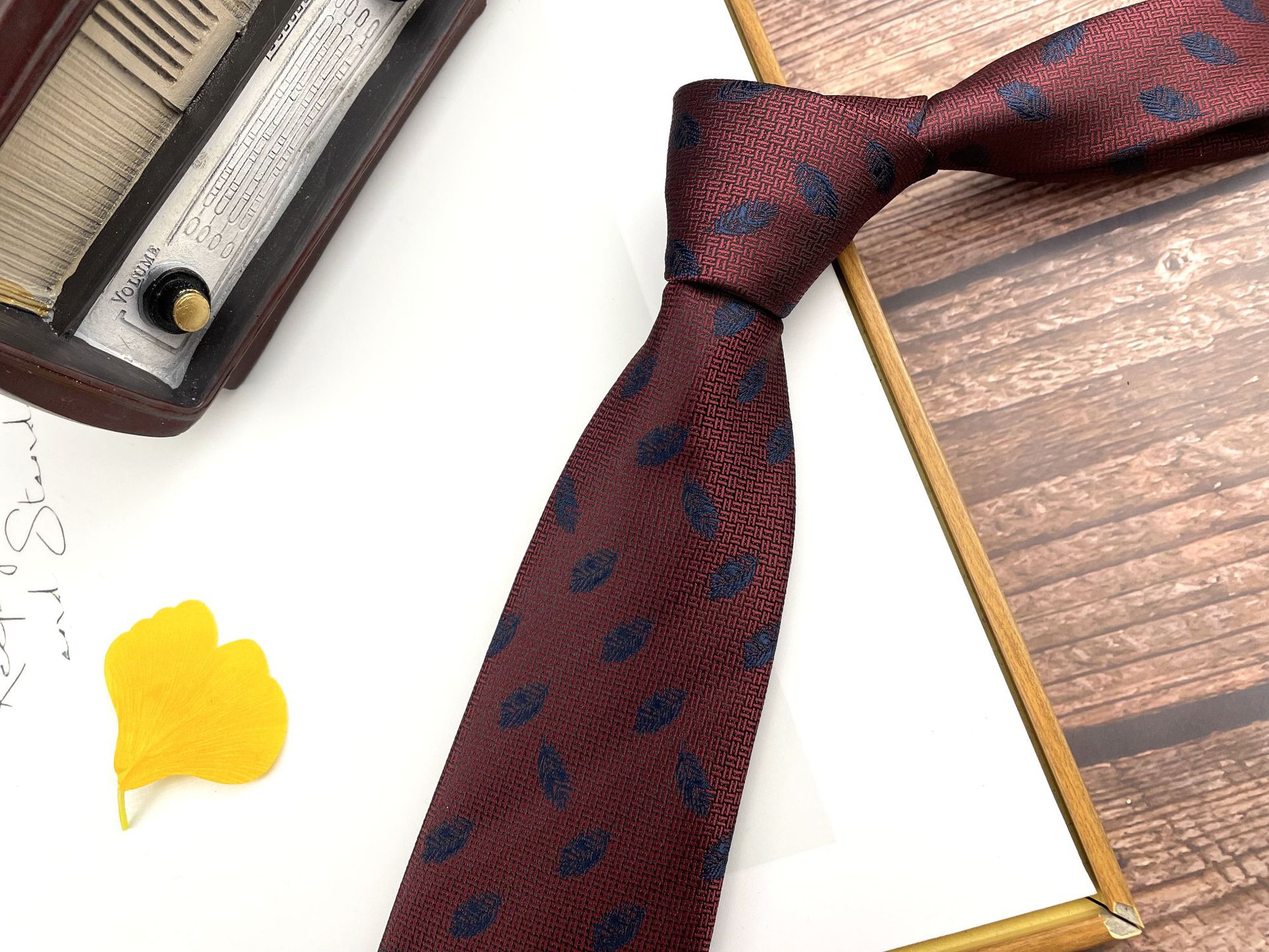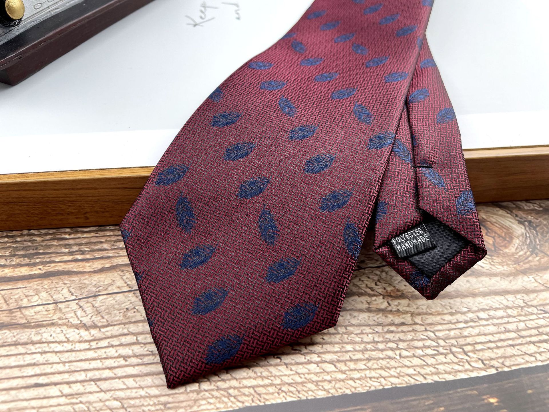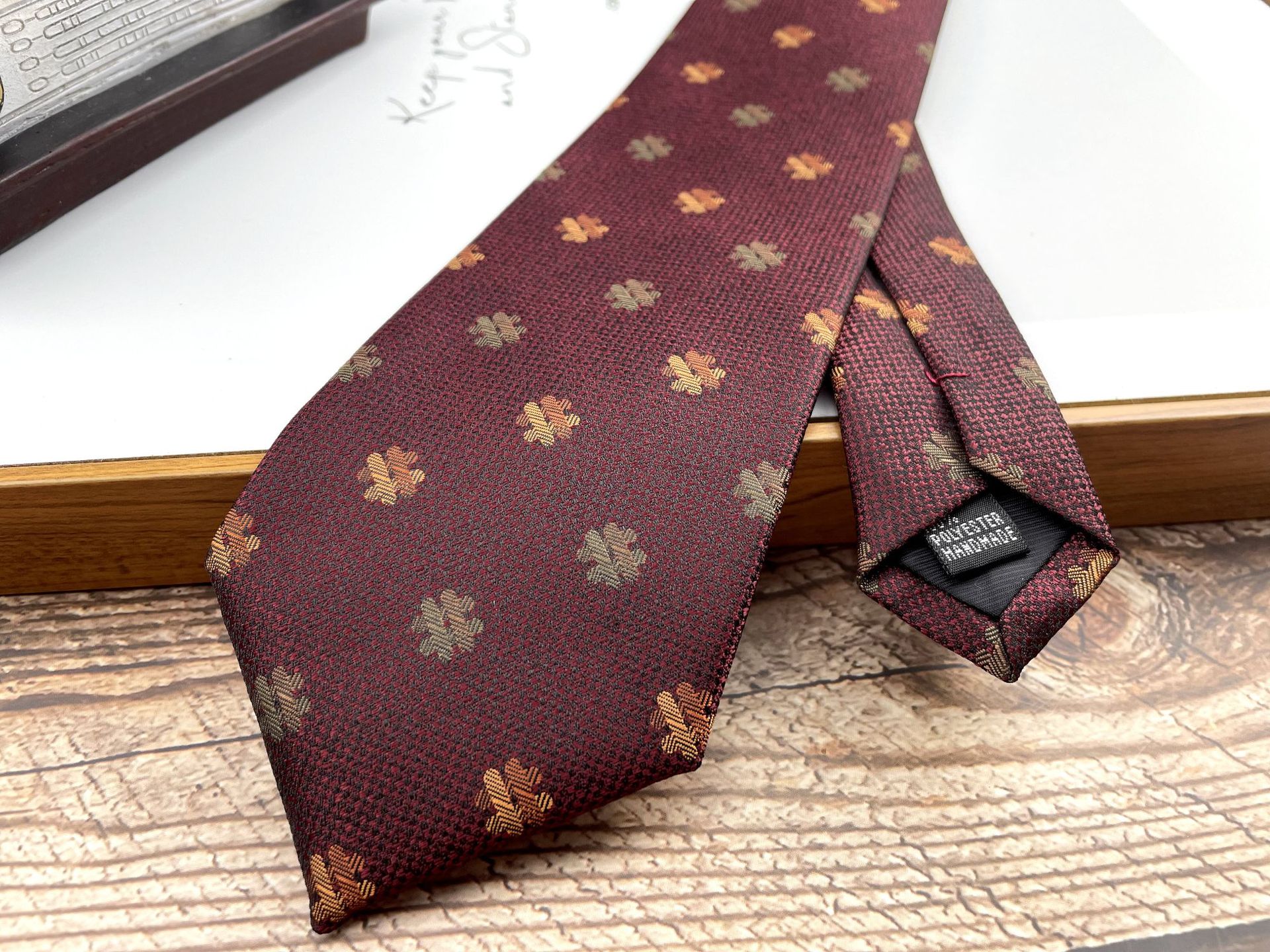 • 손으로 묶은 진한 붉은 잎 12개 넥타이