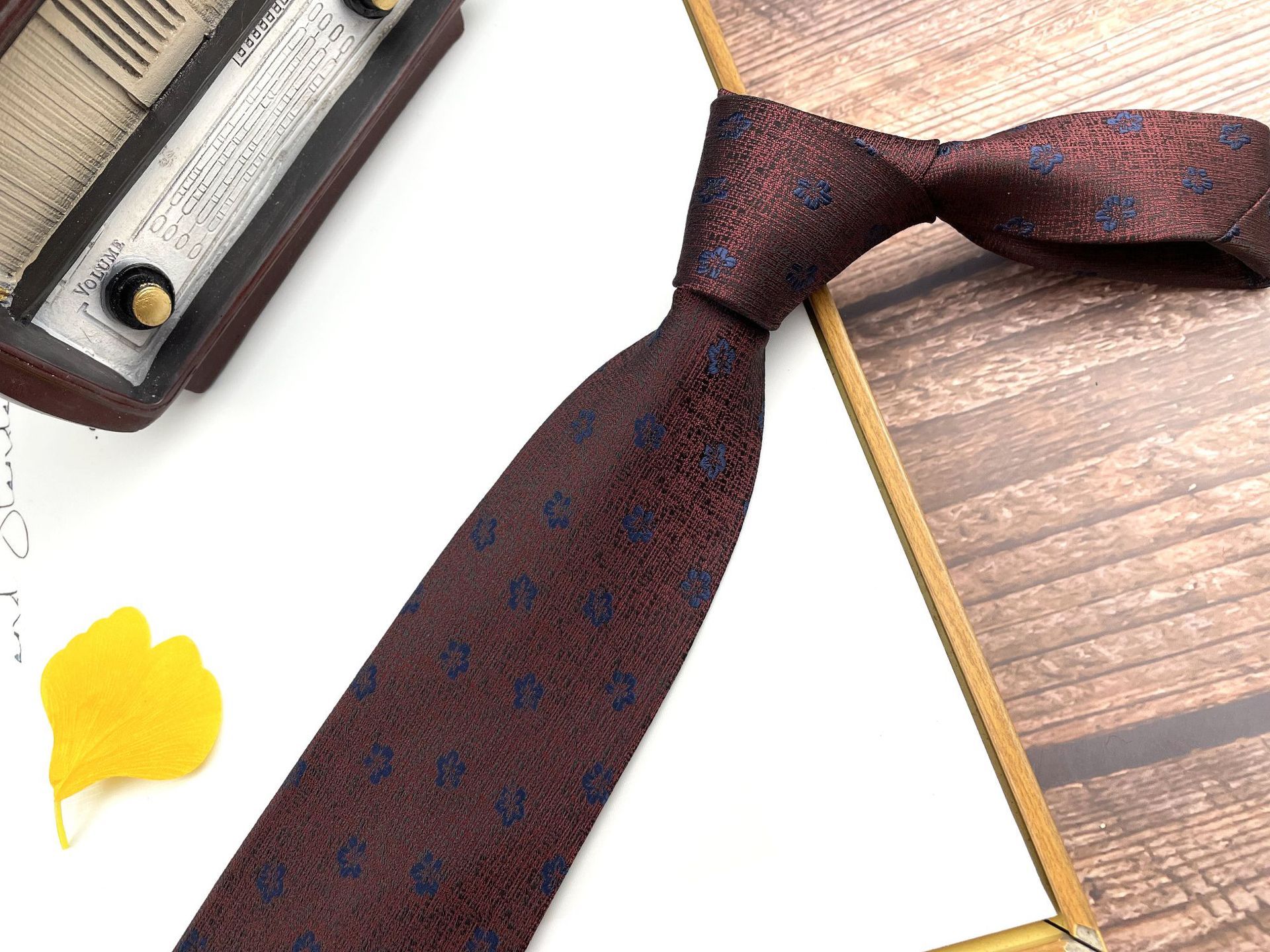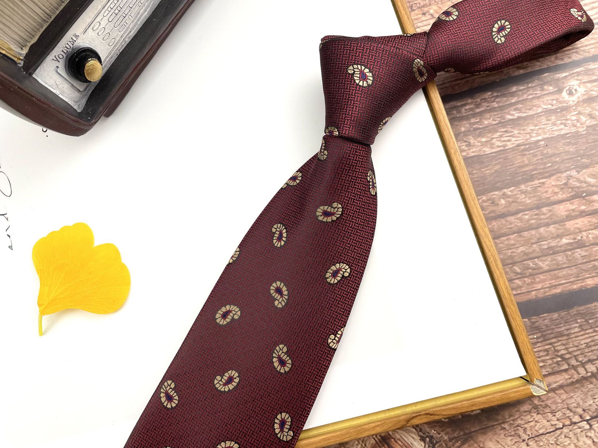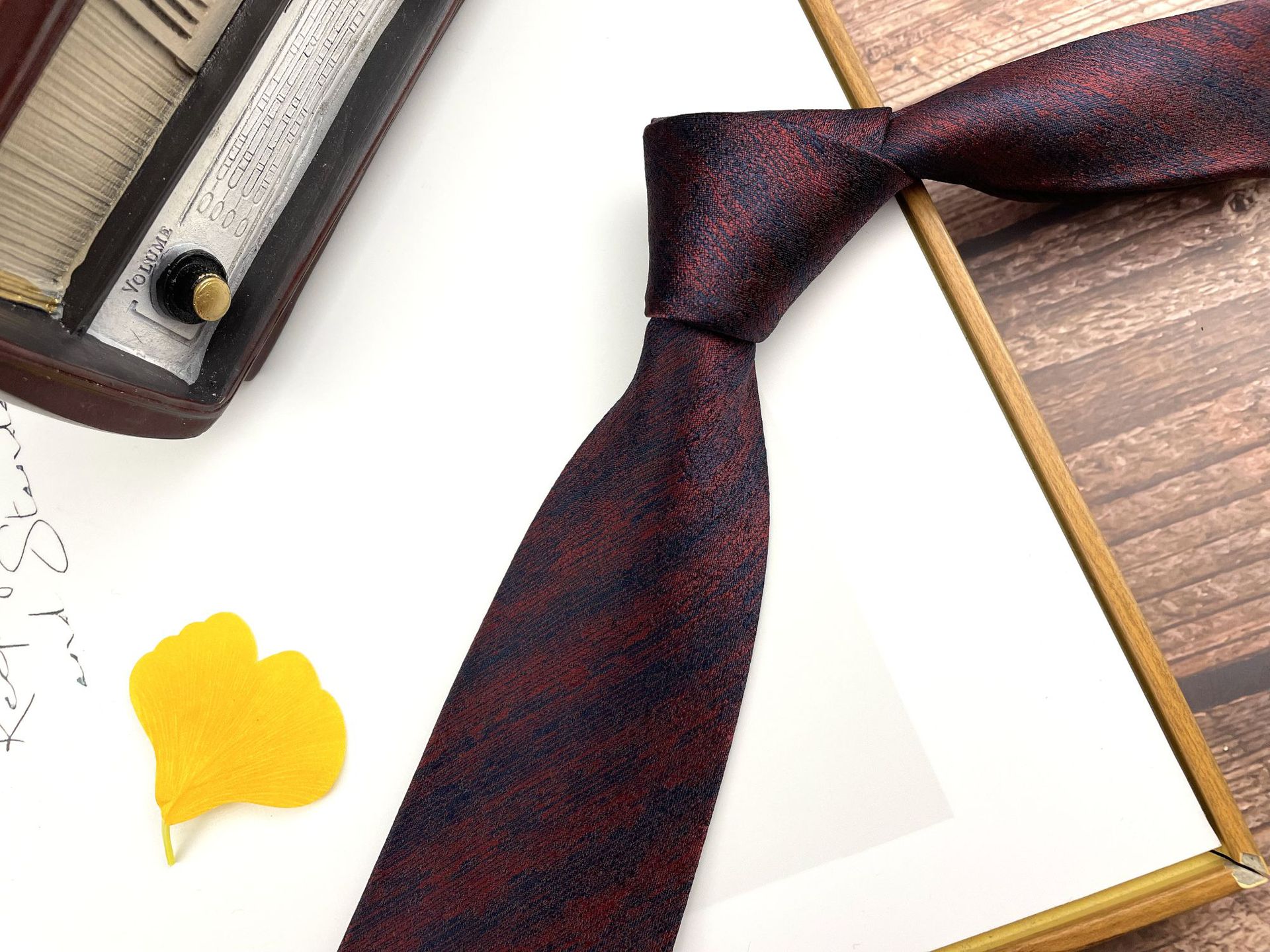 • 손으로 묶은 진한 붉은 잎 12개 넥타이