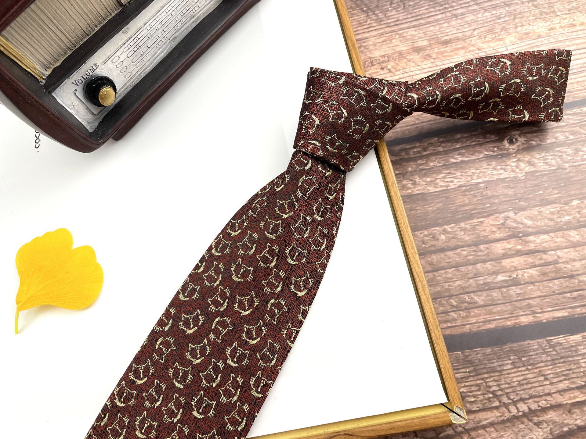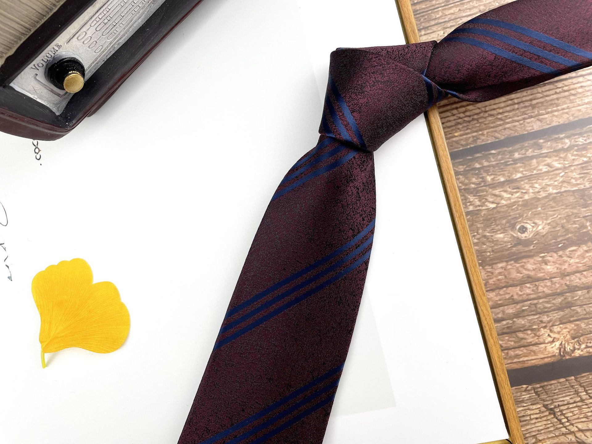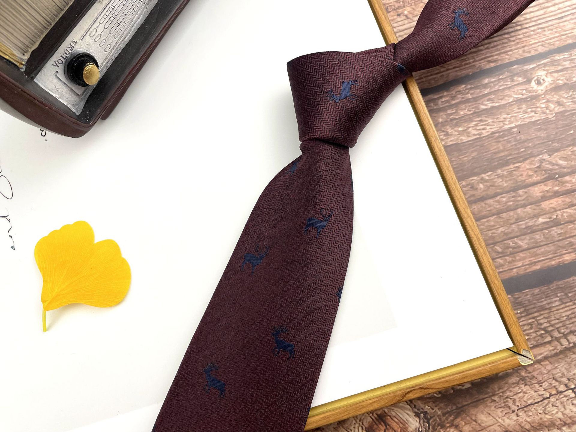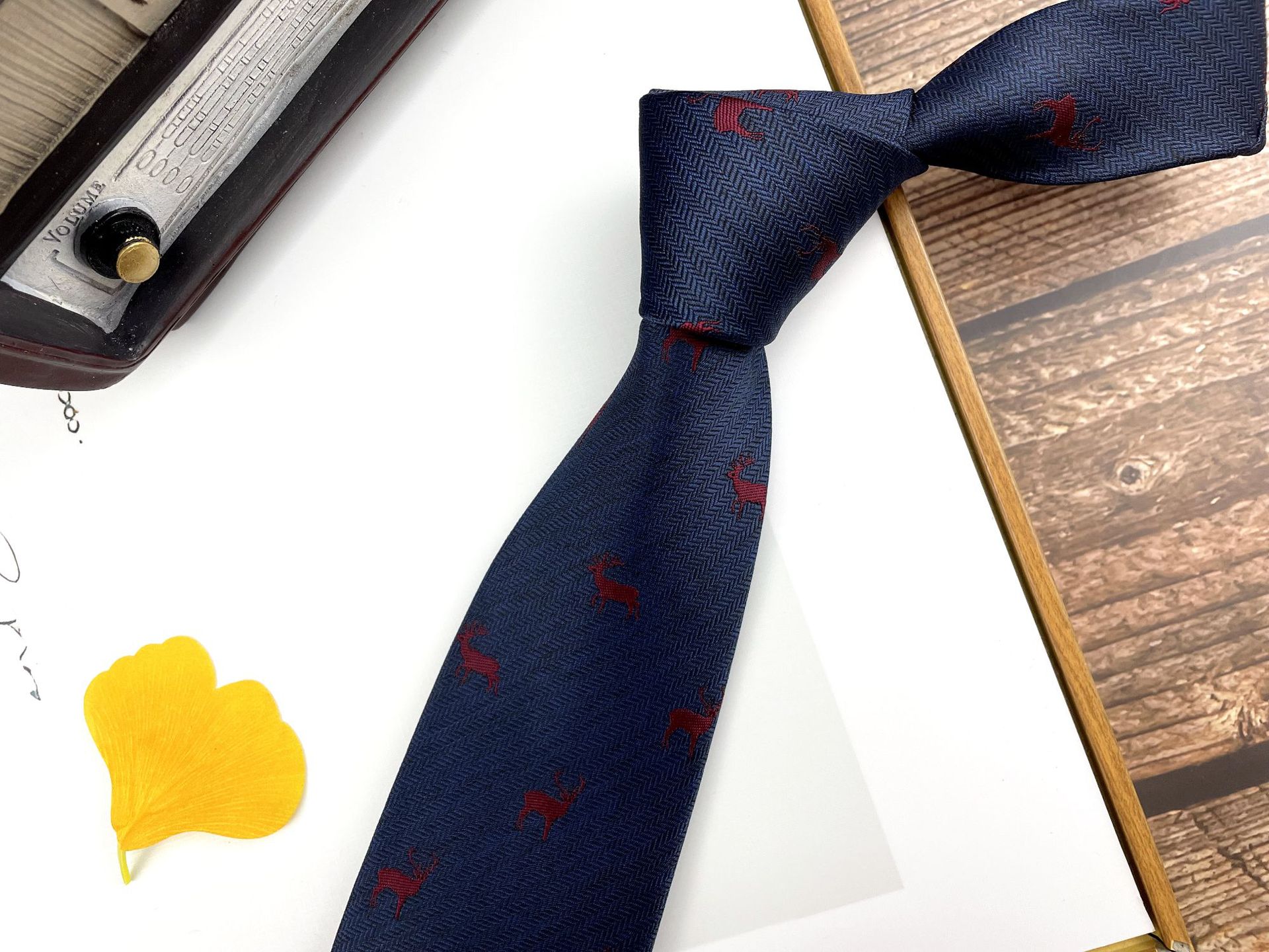 • 손으로 묶은 진한 붉은 잎 12개 넥타이