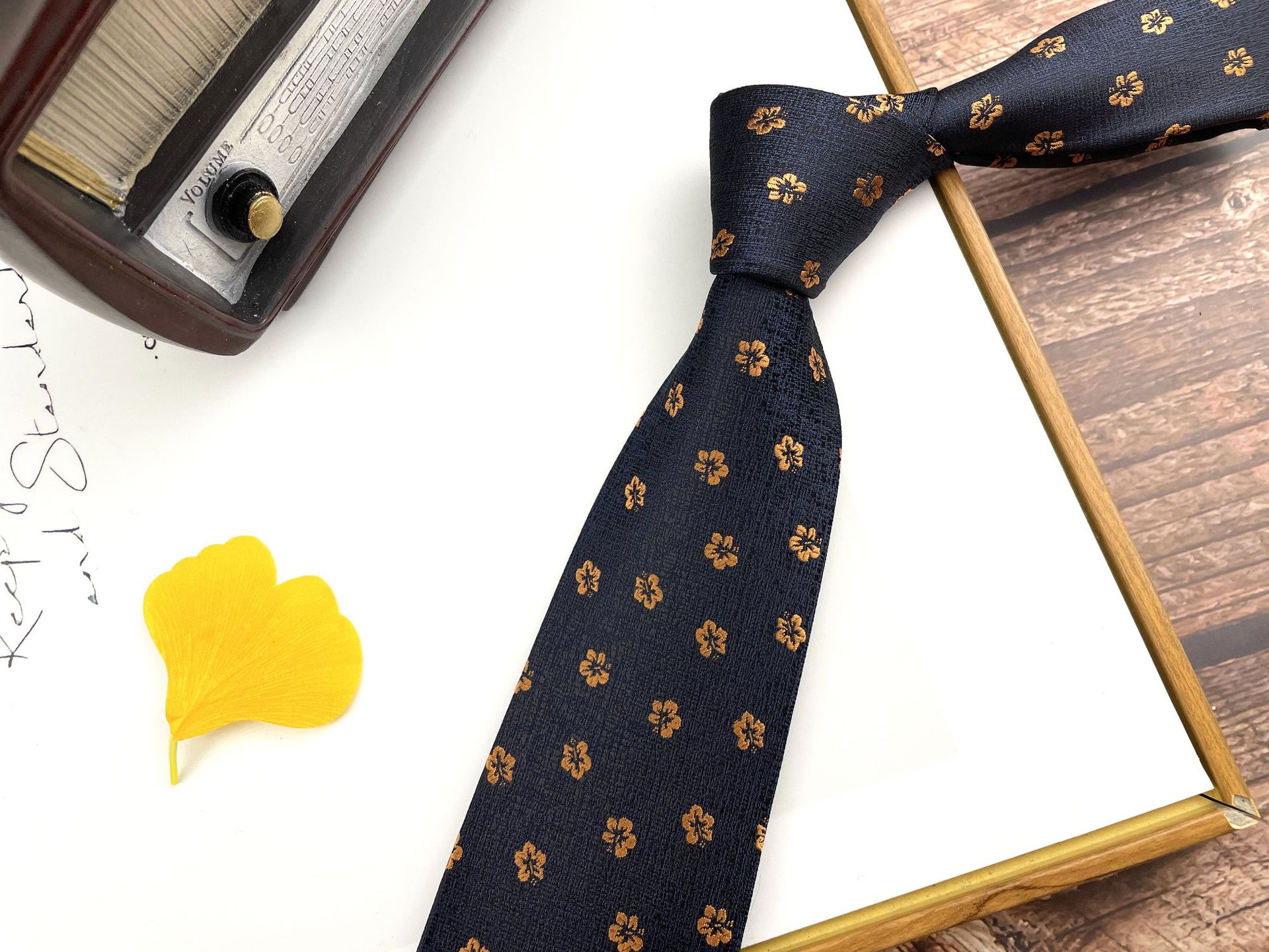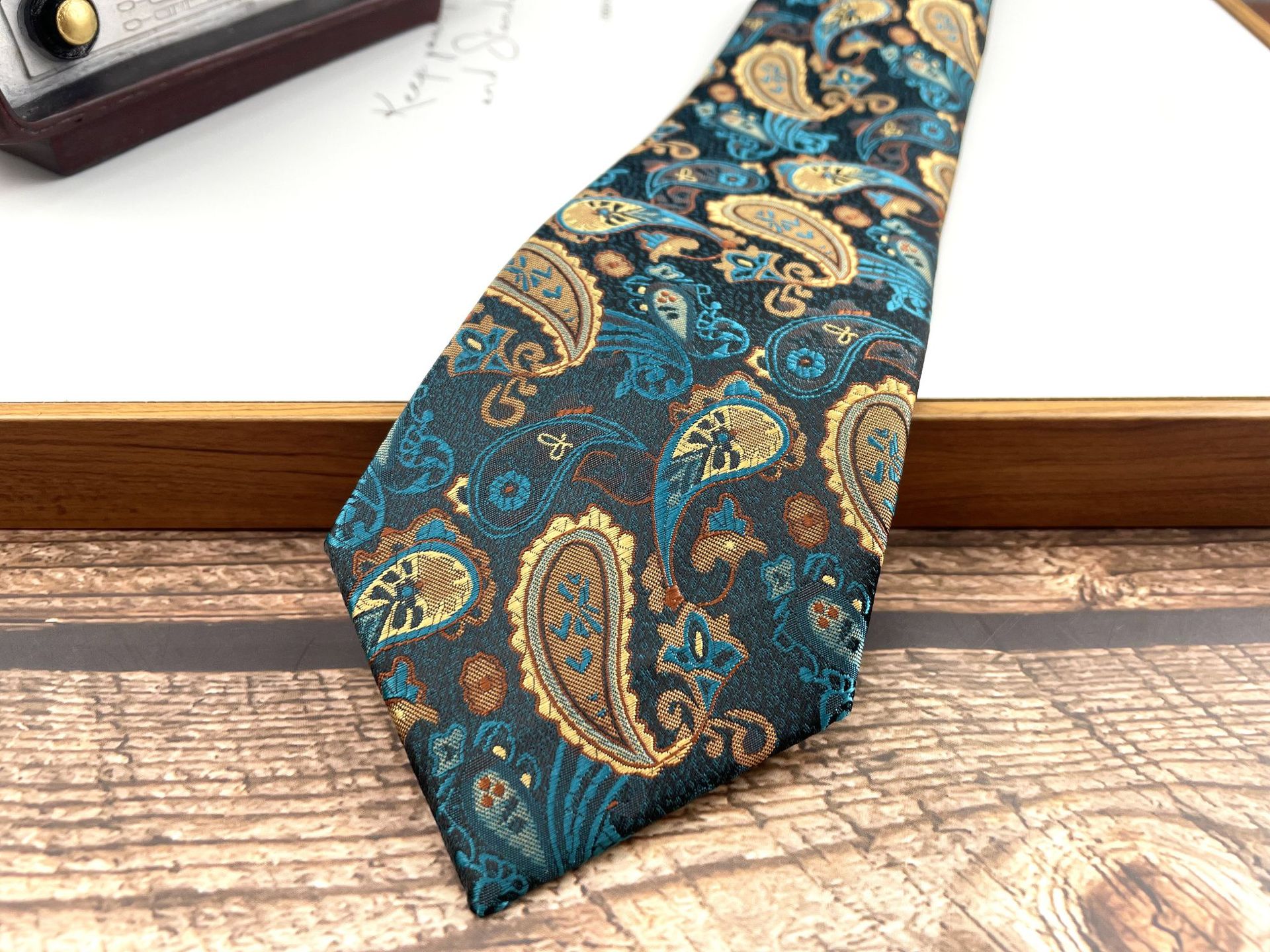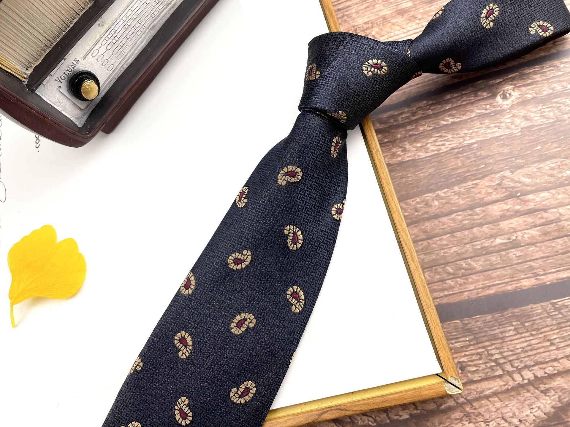 • M2 잉크 골드 대형 캐슈넛 넥타이 핸드 타이