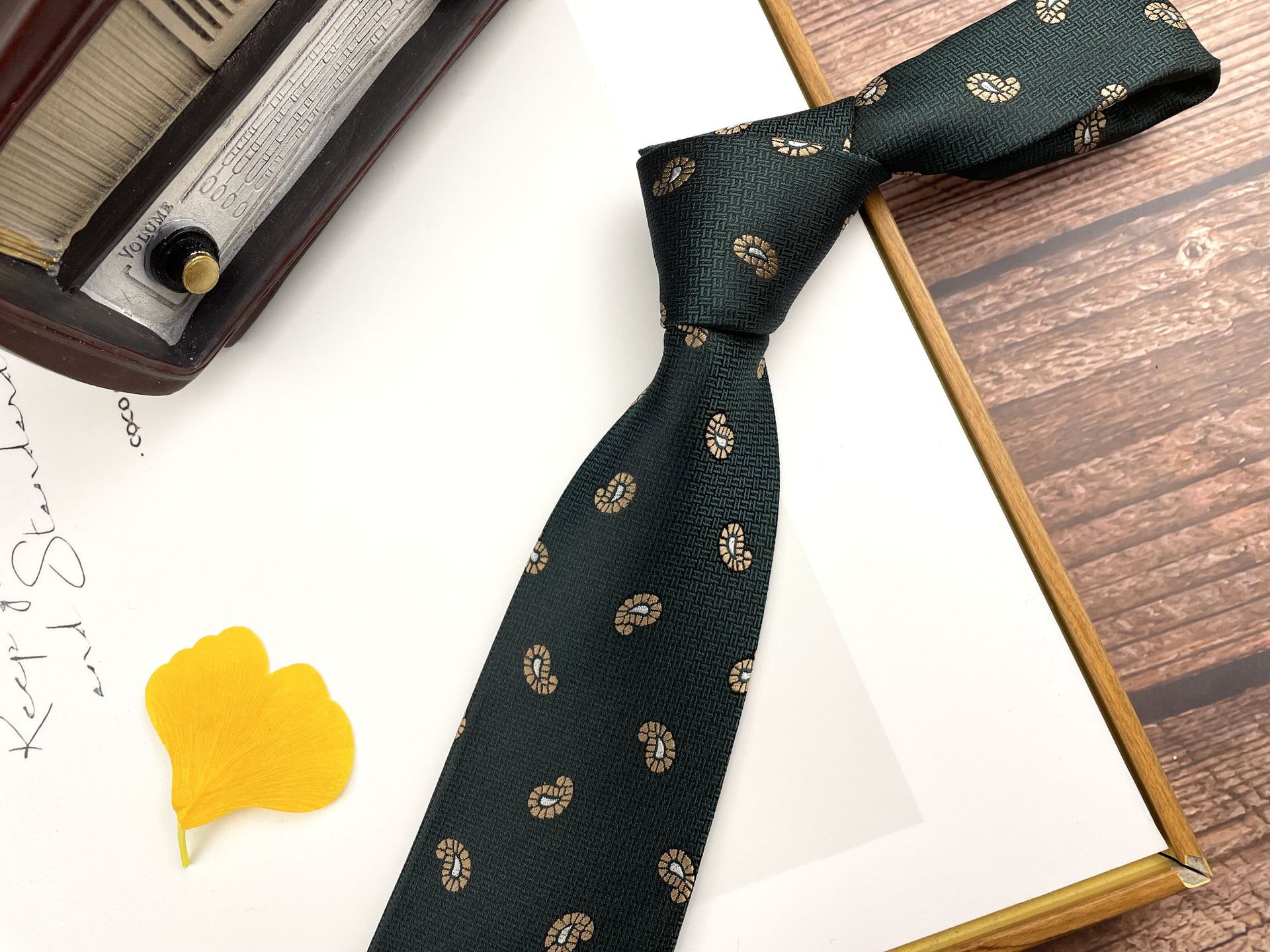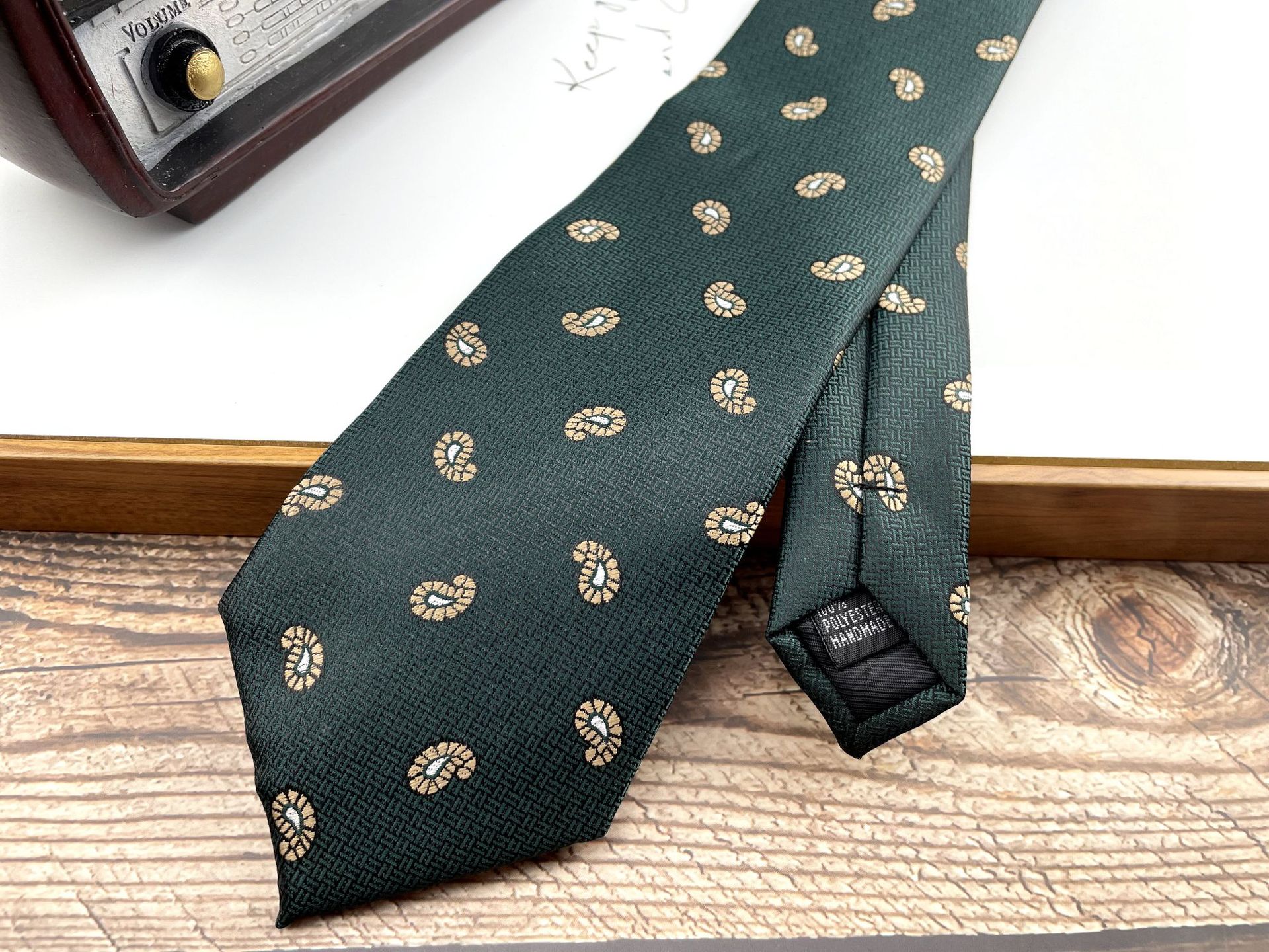 • 04 손으로 묶은 짙은 녹색 작은 캐슈넛 넥타이