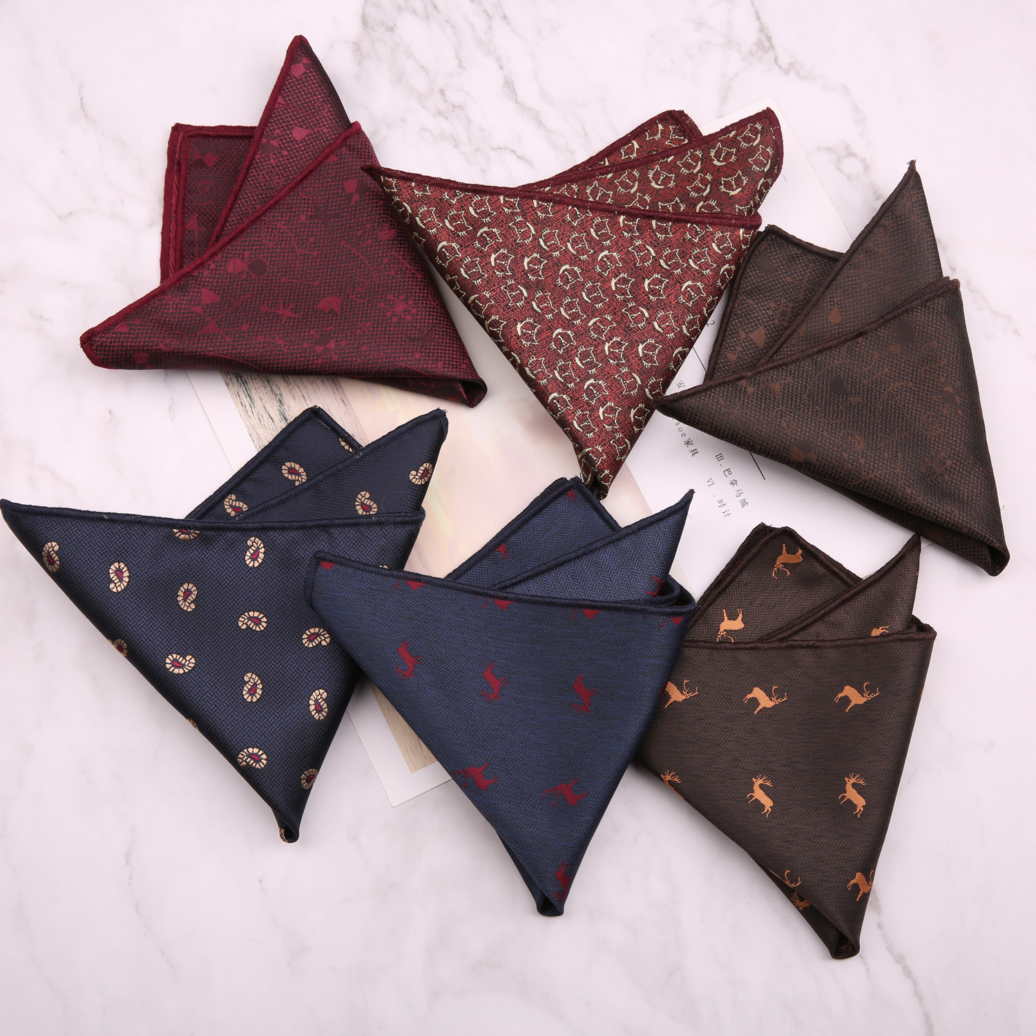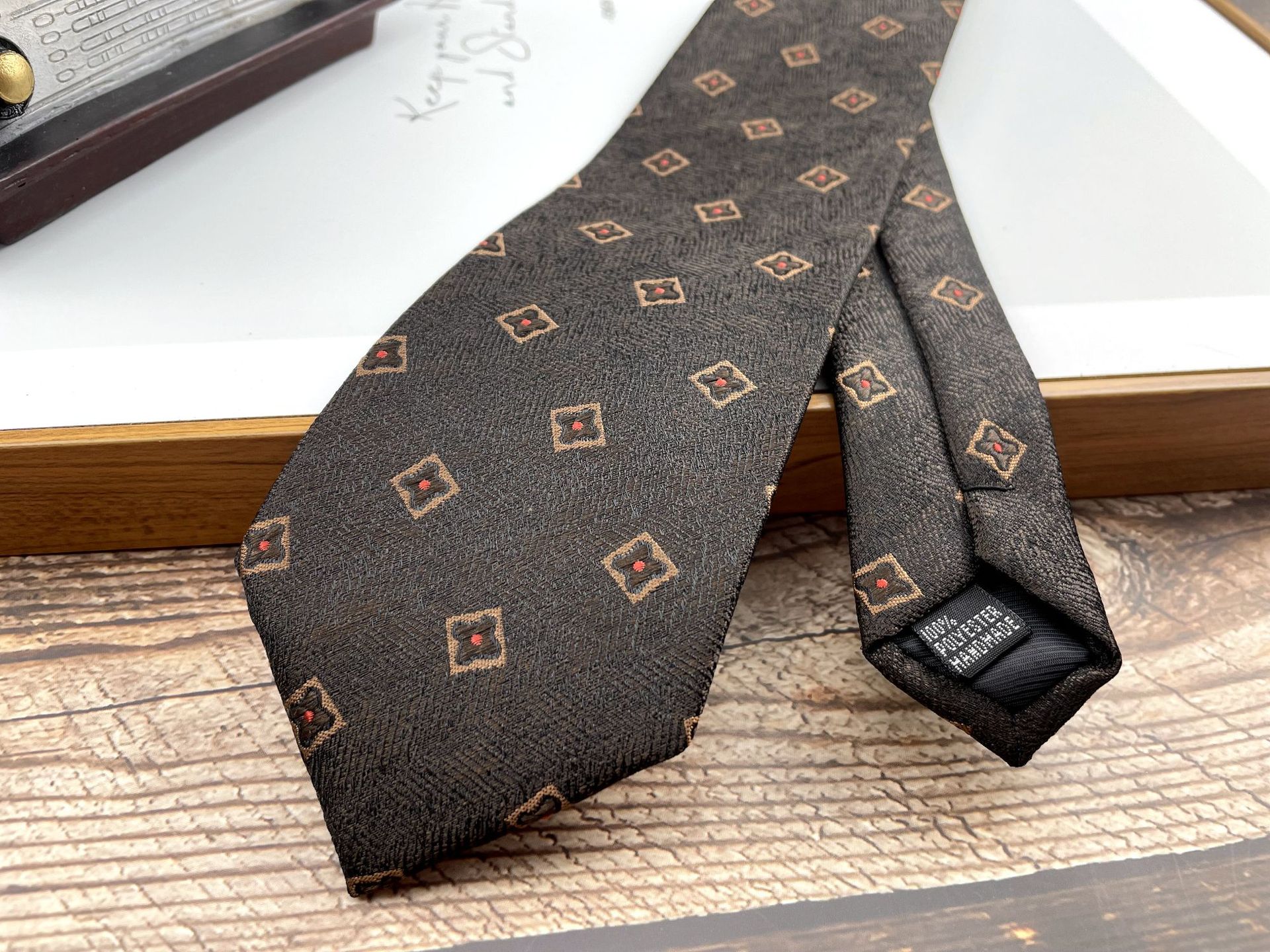 • 18 브라운 스몰 스퀘어 타이 핸드 타이