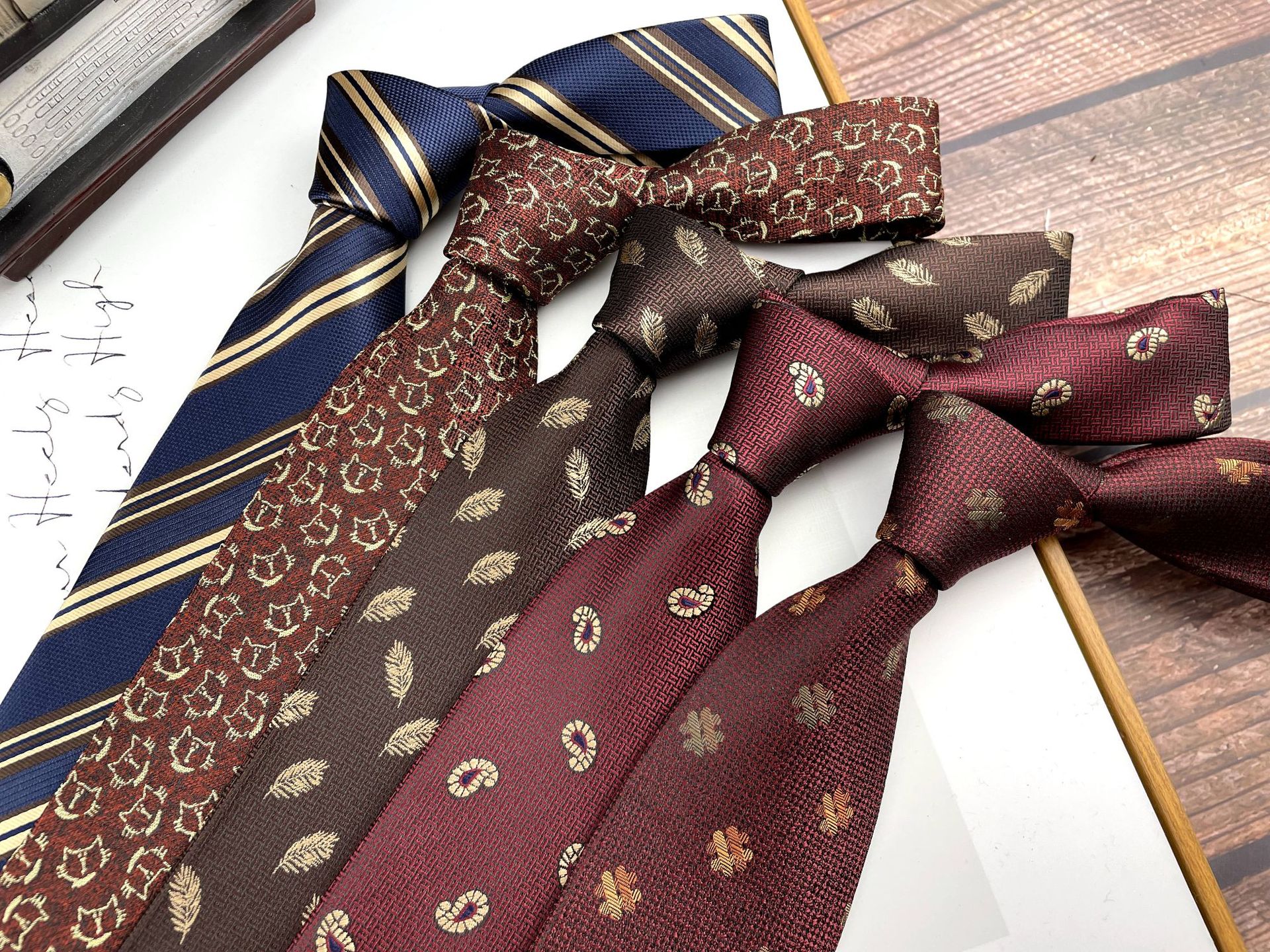 남성 레트로 타이 다크 레드 패턴 영국 8CM 센스 원피스 캐주얼 전문 비즈니스 스트라이프 웨딩 타이드스토어 가기