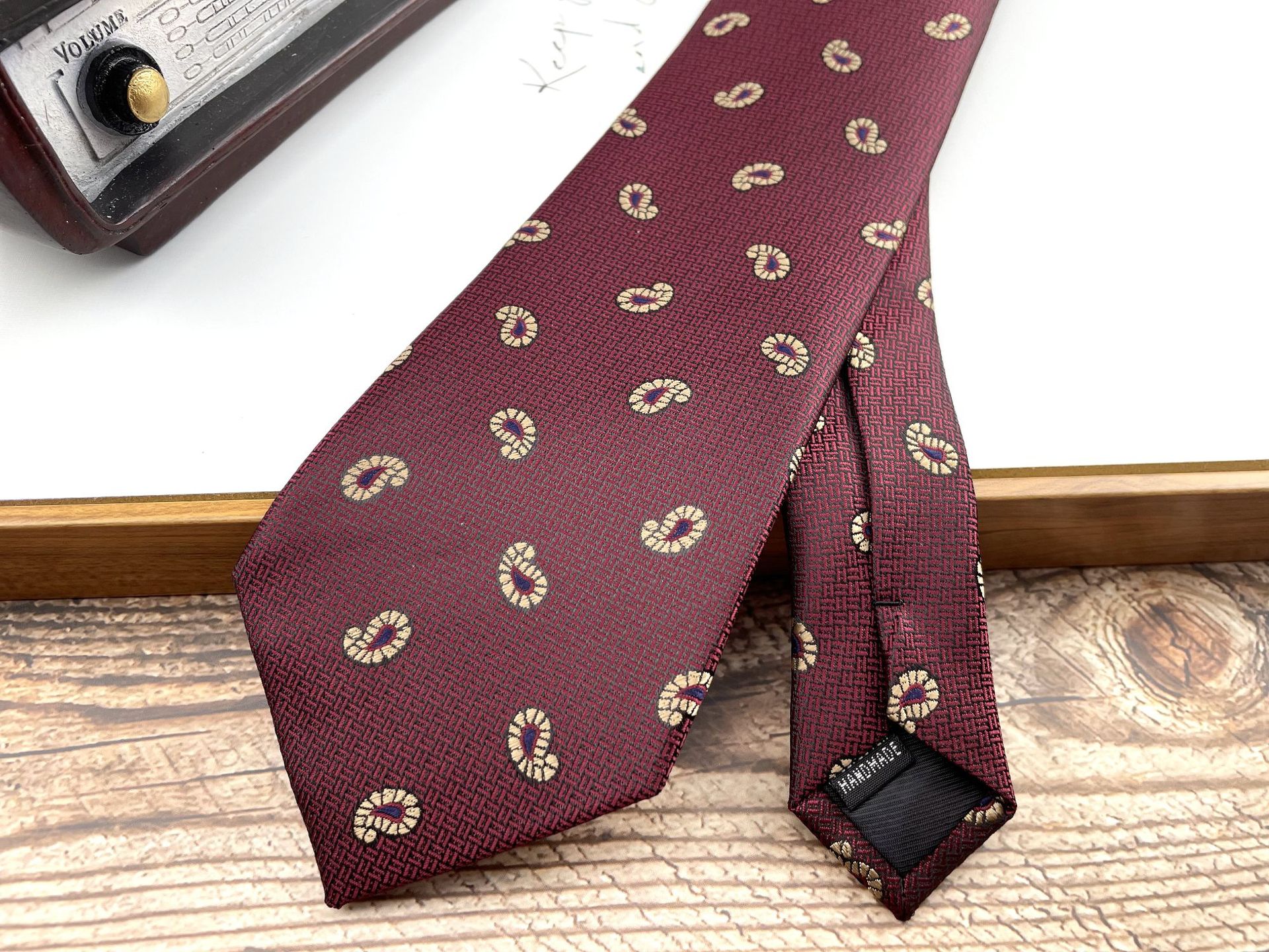 • 03 손으로 묶은 진한 빨간색 작은 캐슈넛 넥타이