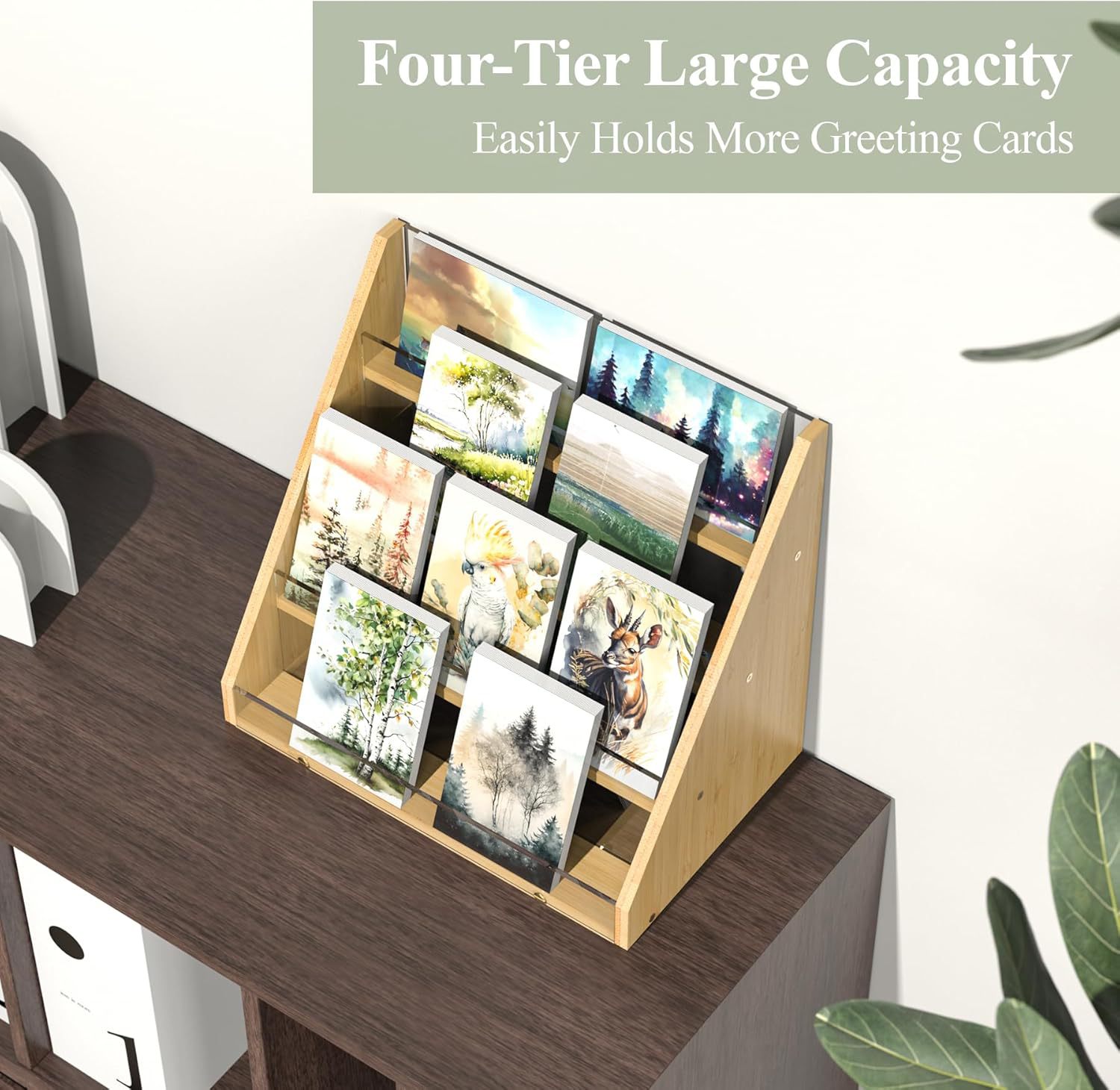 가정용 대나무 아크릴 인사말 카드 저장 랙 엽서 디스플레이 랙 웨딩 생일 저장 랙 다층 장식 랙