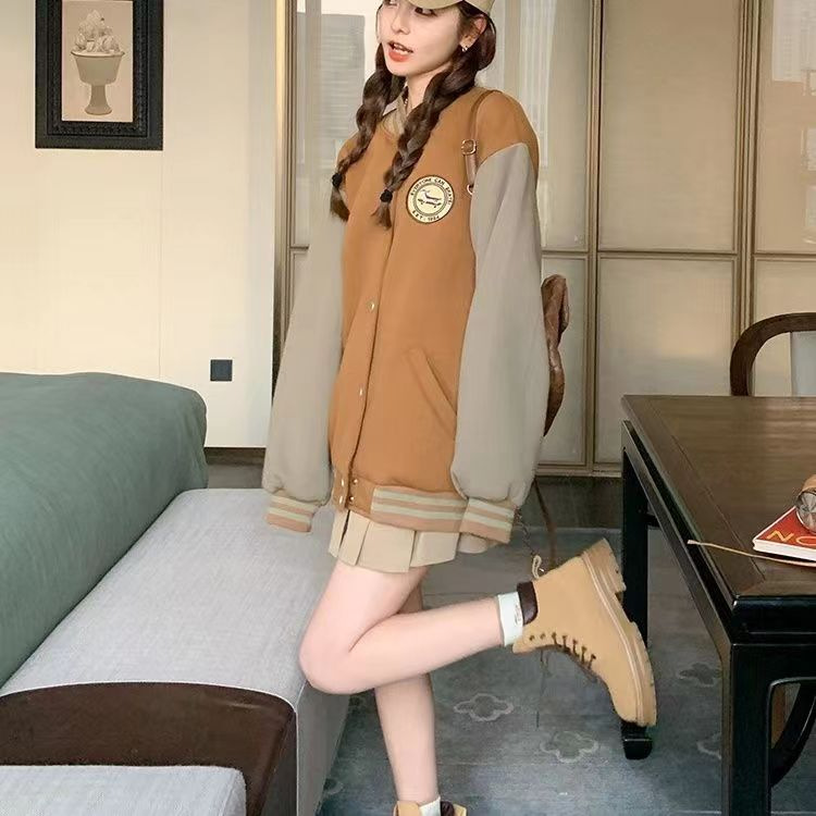 자수 기모 두꺼운 미국 빈티지 야구 세트 코트 여자 겨울 두꺼운 느슨한 커플 재킷스토어 가기