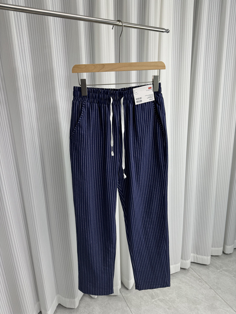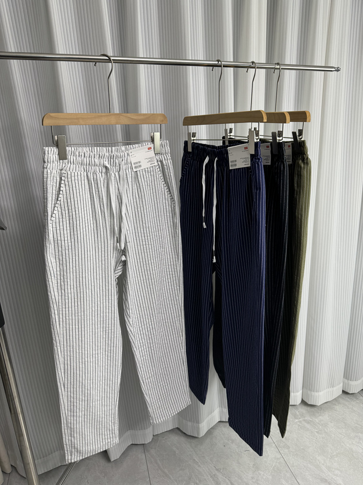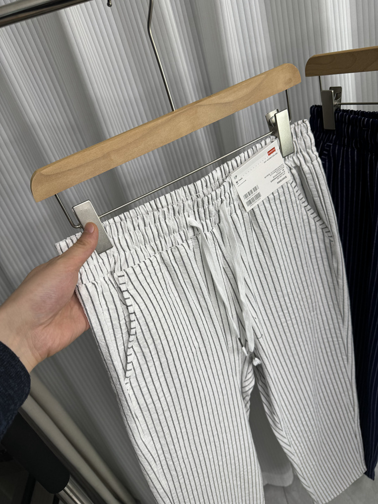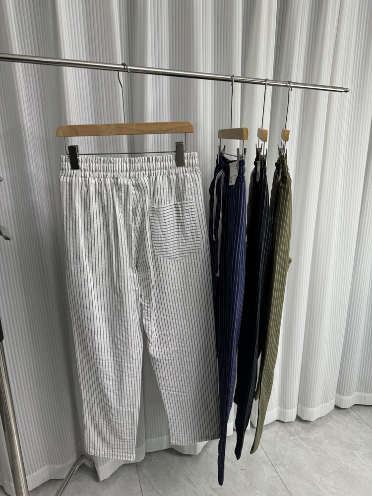 세로 줄무늬! Buersucker 질감 감각! 여름 남자의 상쾌한 통기성 탄성 허리 캐주얼 바지 작은 스트레이트 바지스토어 가기