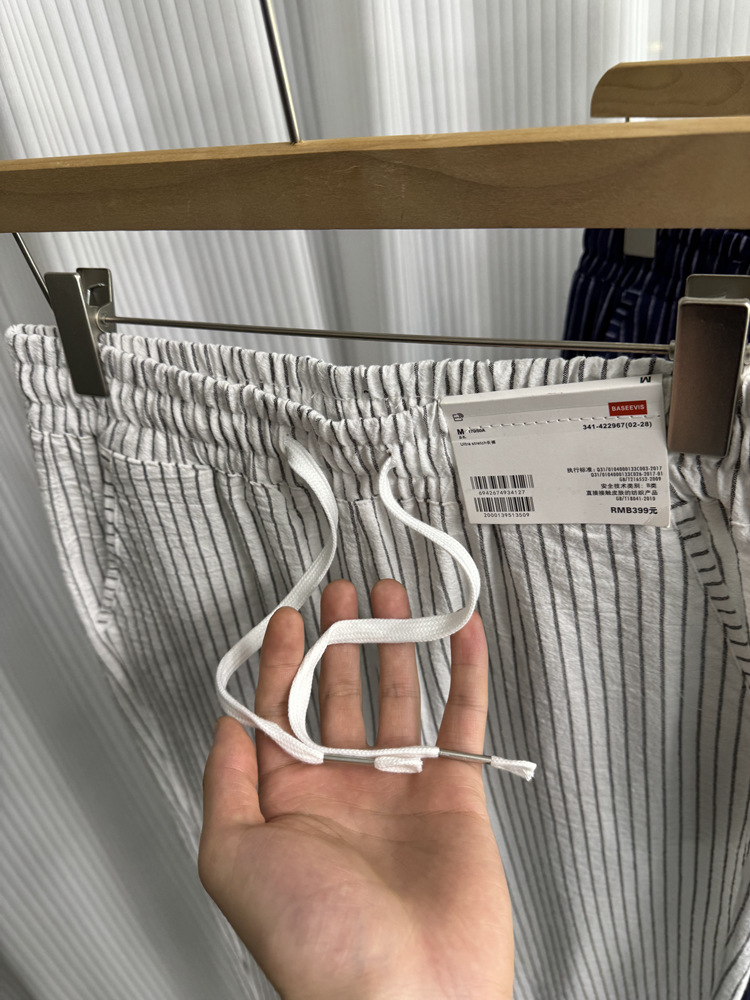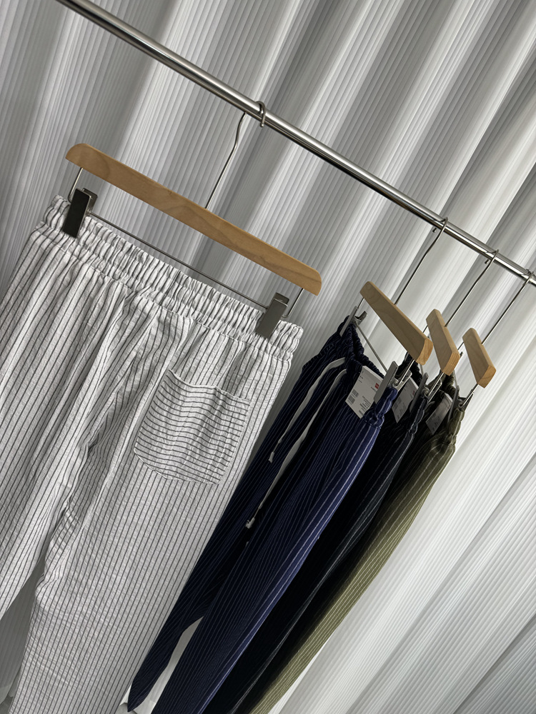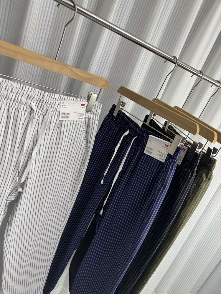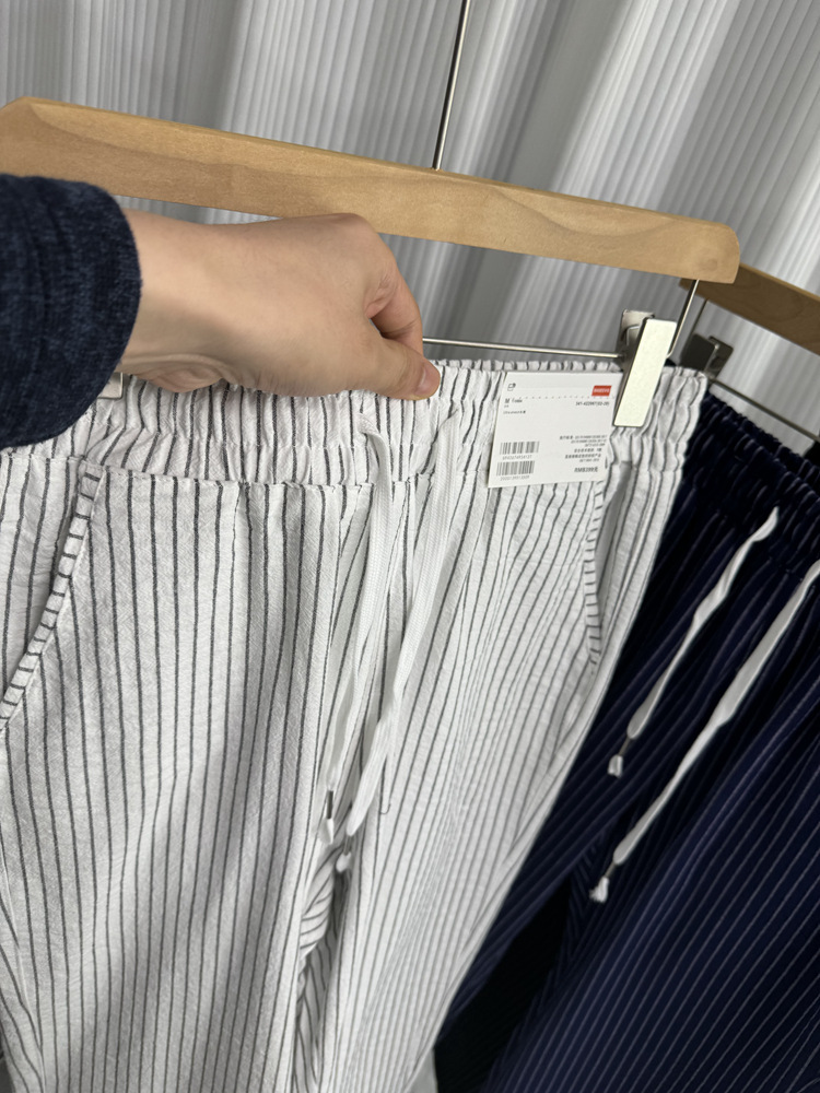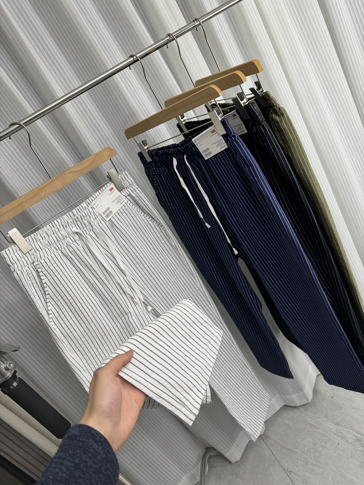 세로 줄무늬! Buersucker 질감 감각! 여름 남자의 상쾌한 통기성 탄성 허리 캐주얼 바지 작은 스트레이트 바지스토어 가기