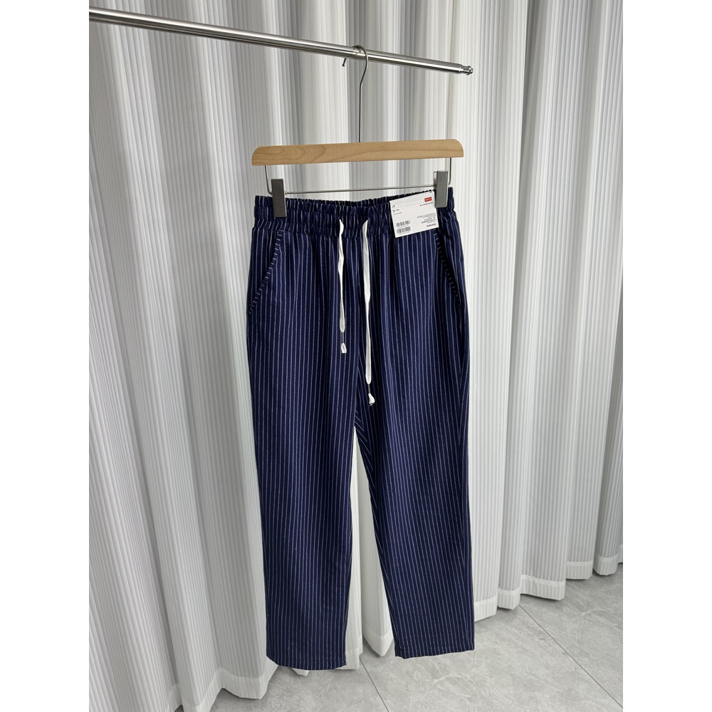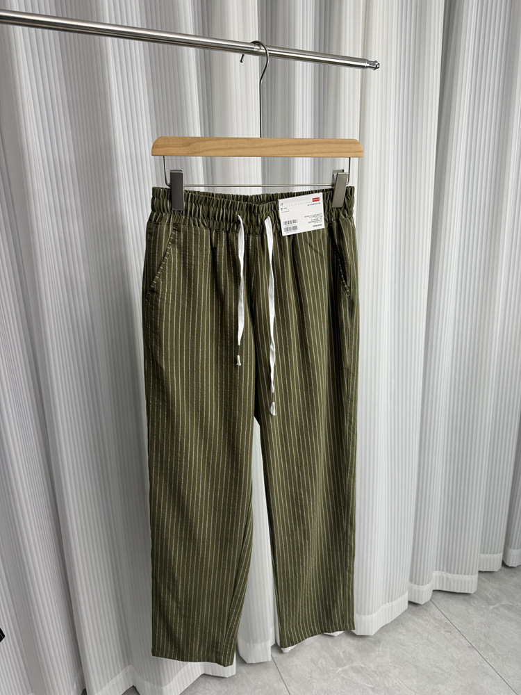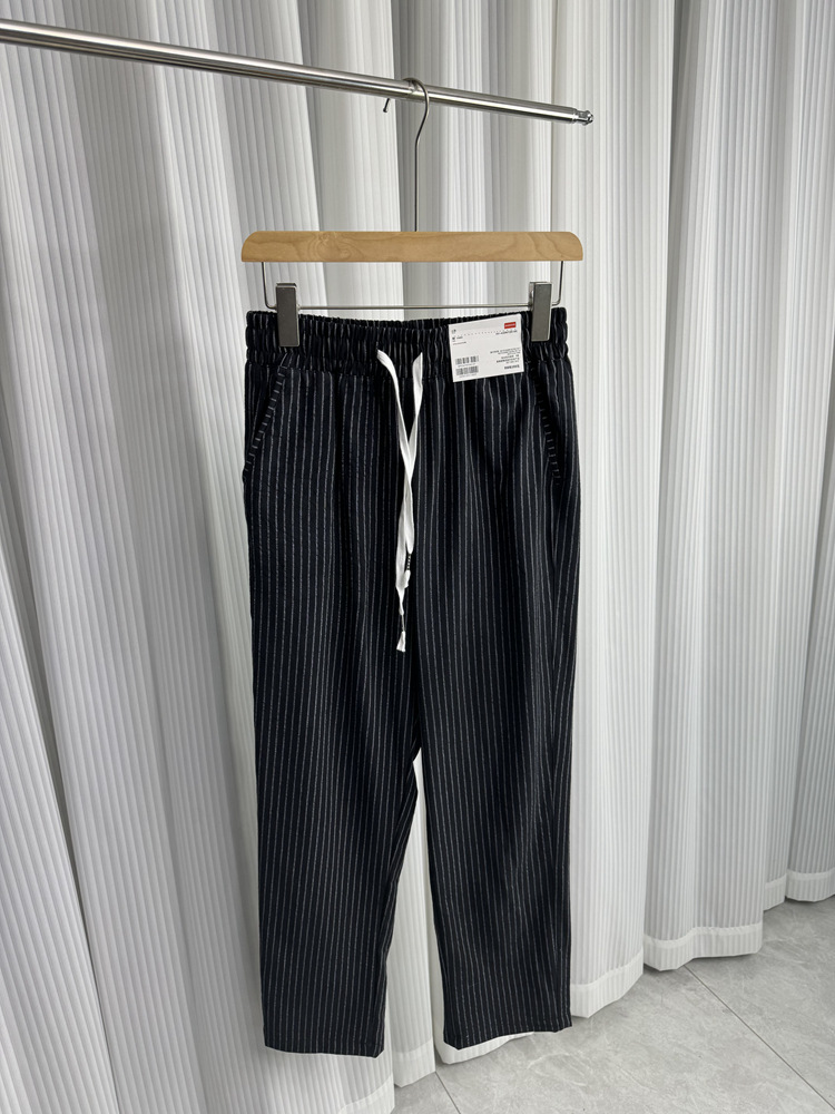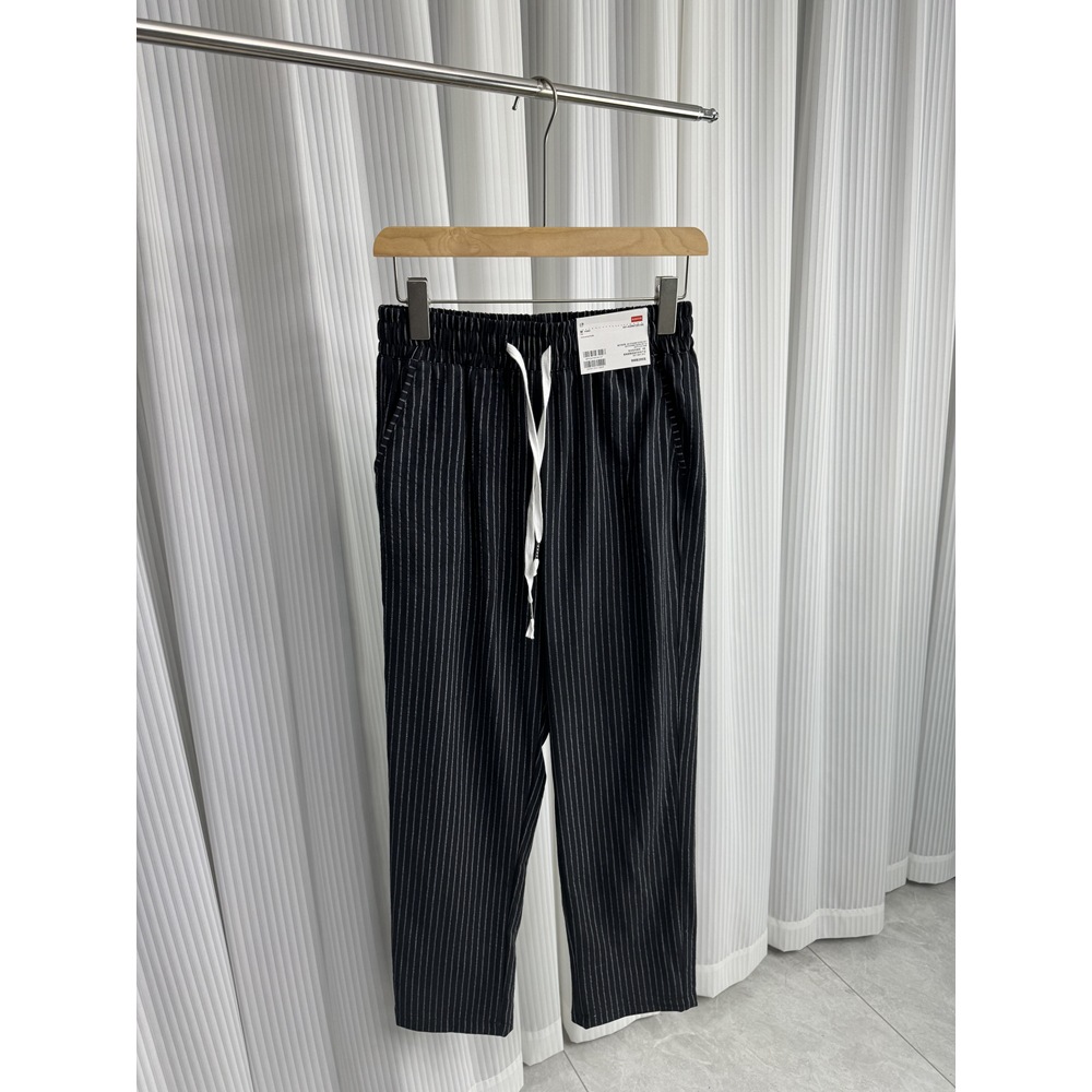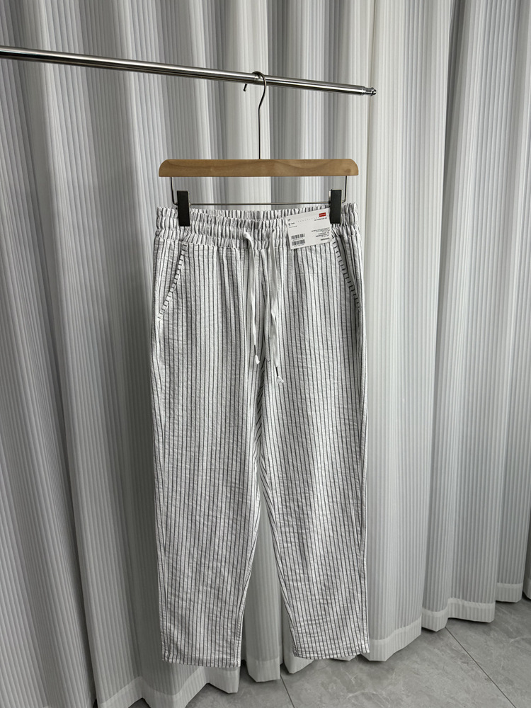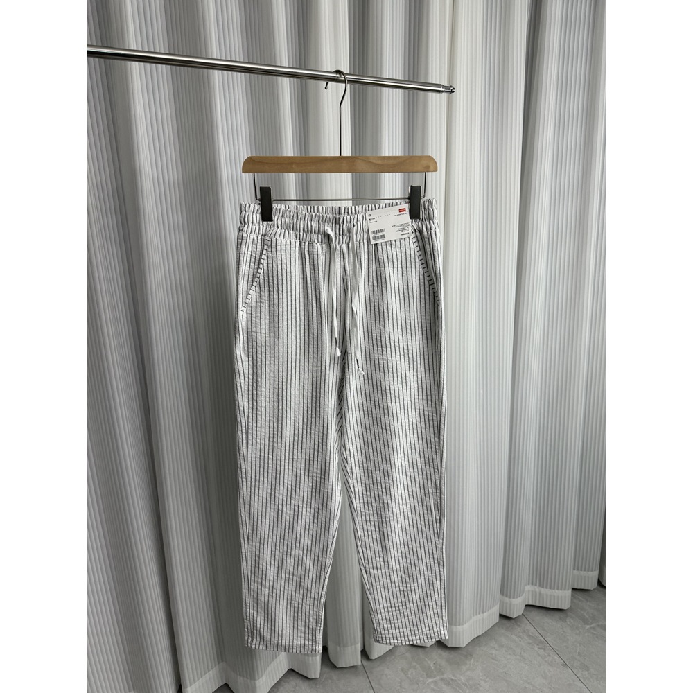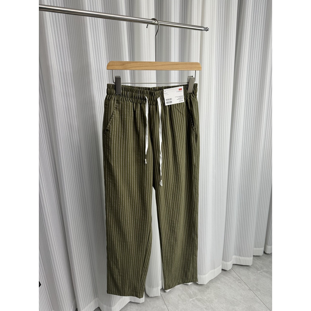 세로 줄무늬! Buersucker 질감 감각! 여름 남자의 상쾌한 통기성 탄성 허리 캐주얼 바지 작은 스트레이트 바지