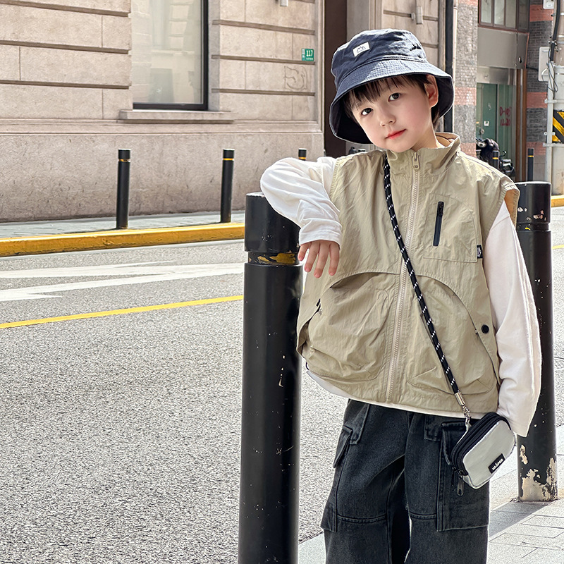 Aimo Beibei 아동용상의 2025 가을 소년 잘 생긴 작업복 조끼 소형, 중형 및 대형 어린이 산 스타일 민소매 자켓 유행스토어 가기