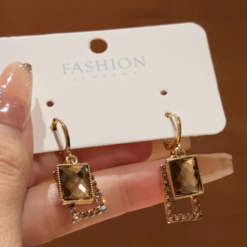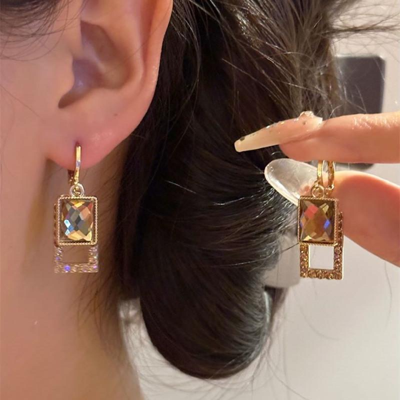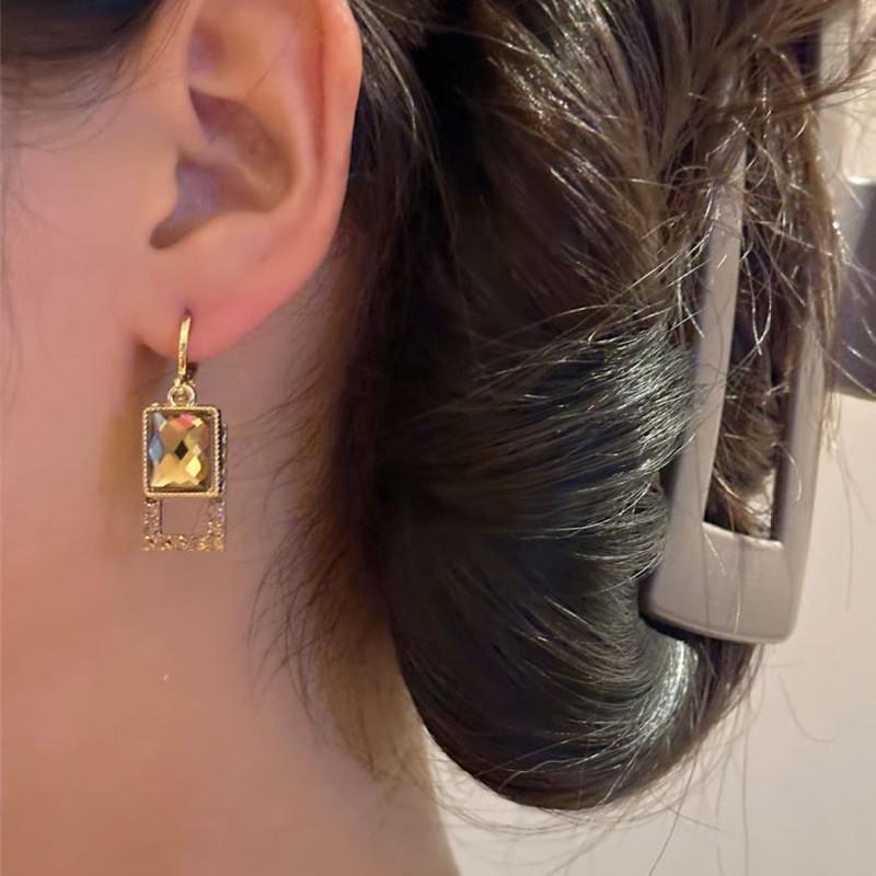 합금 수지 귀걸이 Maillard 다이아몬드 귀걸이 기질 빛 럭셔리 하이 엔드 센스 귀 버클 패션 직사각형 귀걸이스토어 가기