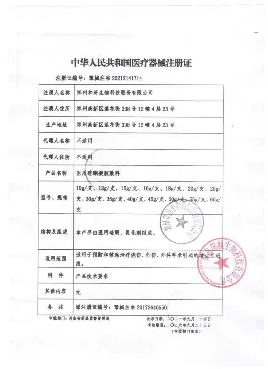 화상으로 인한 비대성 흉터를위한 Heinojin Shurike 의료 실리콘 젤 드레싱