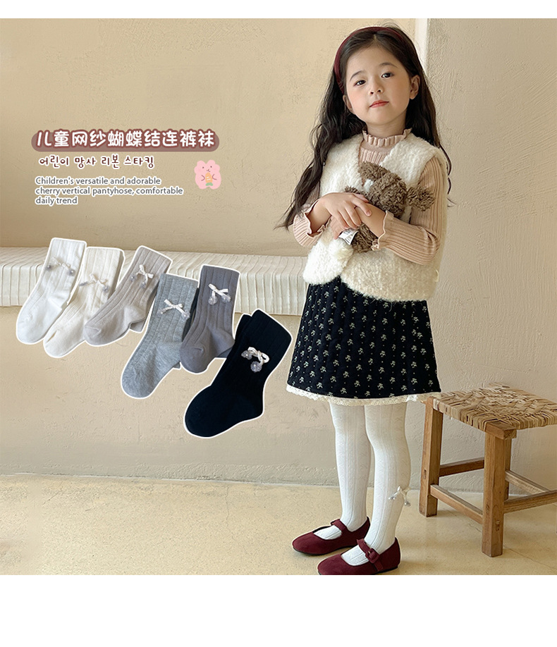 24 새로운 봄과 가을 작은 활 어린이 팬티 스타킹 소녀 레깅스 공주 귀여운 아기 양말 도매